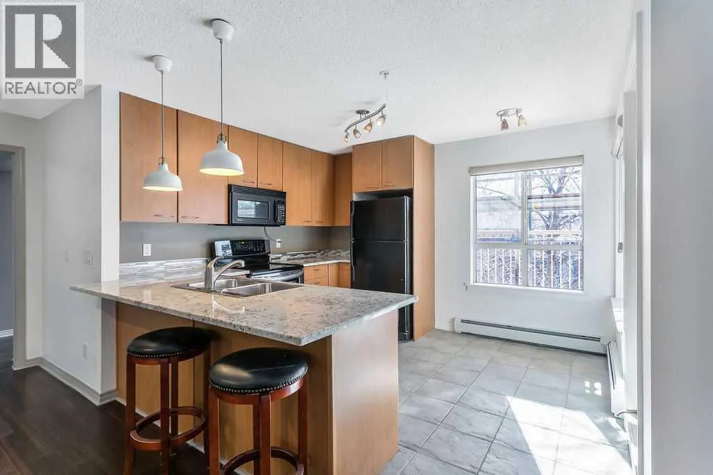 This is honestly one of the best opportunities in a long time to get a big 2-bedroom plus den condo thatâs almost 1,000 square feet, has tons of natural light, two balconies, a den, and granite counters. Plus, it faces south, so there is a ton of natural light. This corner unit is right beside Mount Royal University, which makes it great for first-time buyers, downsizes or investors. Inside, youâll find a functional, open layout with a big kitchen, a cozy gas fireplace, and in-suite laundry. The main bedroom has two closets, its own bathroom, and its own balcony. The second bedroom and bathroom work perfectly for a roommate, guests, or family.You also get underground parking, a storage locker, and access to the buildingâs gym and courtyard. Shops, cafés, transit, and green spaces are all just steps away.Itâs move-in ready, super convenient, and offers amazing value in this area. Donât miss this one! (id:27476)