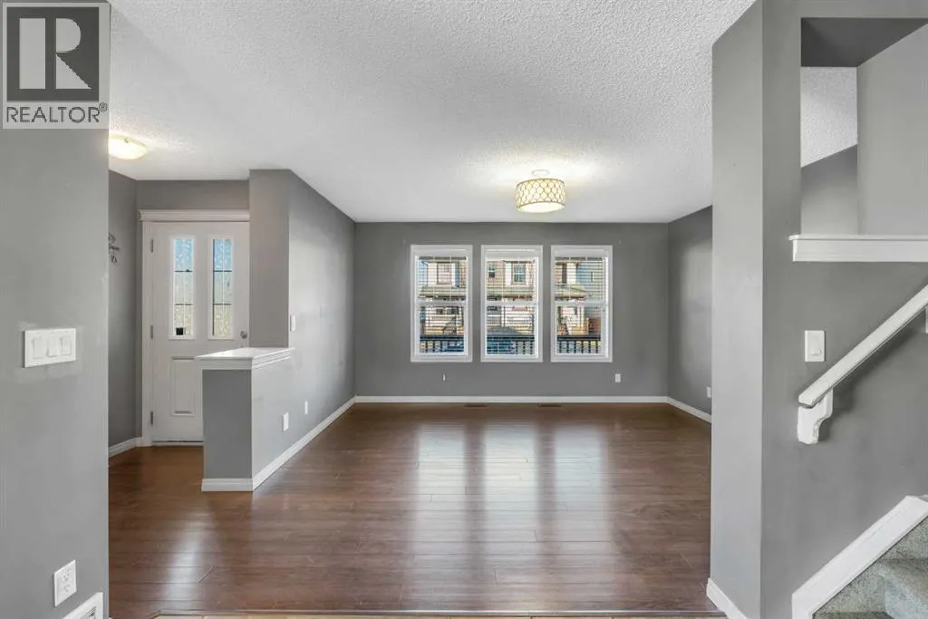 Step into a well-maintained and thoughtfully upgraded home in Skyview Ranch. The main floor features an open layout with premium laminate flooring, and quartz countertops. The kitchen is designed for daily use with a large island and upgraded appliances including a gas range, fridge, dishwasher, and microwave hood fan. A practical back mudroom keeps the main living area organized. Roof and siding were replaced in 2024 for added peace of mind.The upper level offers three spacious bedrooms and two full bathrooms. The primary bedroom includes a walk-in closet and a 4-piece ensuite. Convenient upper-level laundry completes the second floor.The developed basement provides additional living space with a wet bar, den, full bathroom, bedroom, and recreation area. Basement development was completed without permits.Enjoy a west-facing, fully fenced and landscaped backyard with a large deck, BBQ gas line, and a two-car detached garage. Additional features include air conditioning and a WIFI thermostat.Excellent location for families and investors: 1-minute drive to the playground, 2 minutes to Prairie Sky School, 3 minutes to Apostles of Jesus School, 5 minutes to Chalo Freshco, and 5 minutes to Sanjha Punjab/Chai Bar.A rare combination of upgrades, space, and location. Book your private showing today. (id:27476)