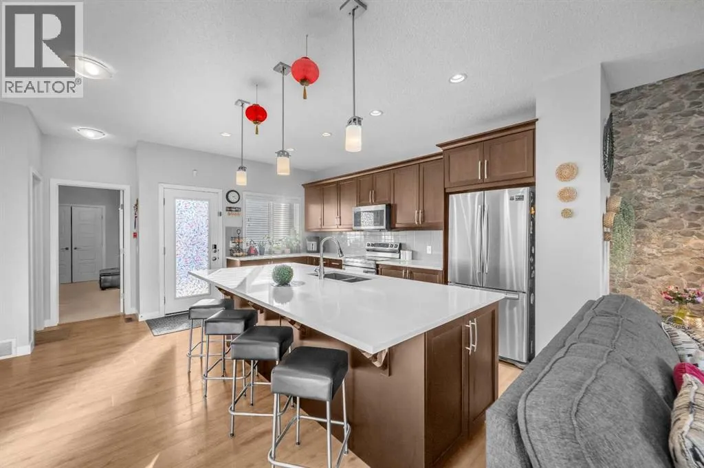 6 BEDROOMS | 4 BATHROOMS | 2,192 SQFT | QUARTZ COUNTERS | ILLEGAL BASEMENT SUITE | DOUBLE GARAGE | PRIME CORNERSTONE LOCATION This stunning six-bedroom, four-bathroom home offers an impressive 2,192 square feet of thoughtfully designed living space that's perfect for families seeking comfort and functionality. The main floor features a luxurious primary bedroom complete with a four-piece bathroom, ensuring convenient single-level living for busy homeowners.The heart of the home showcases a spacious kitchen adorned with elegant quartz countertops, creating an ideal environment for culinary adventures and family gatherings. Step outside to discover a welcoming deck that extends your living space into the backyard, perfect for morning coffee or evening relaxation.Upstairs, you'll find a generously sized primary room featuring a five-piece ensuite bathroom, providing a private retreat after long days. The illegal basement suite adds tremendous value with two spacious bedrooms and a versatile den area, plus a separate entrance that offers flexibility for extended family or potential rental income.The attached garage provides convenient year-round vehicle protection and additional storage space. Location couldn't be more convenient, with Cornerstone Circle Northeast Garden just a short stroll away, offering green space for outdoor activities. Daily necessities are easily accessible with Chalo! FreshCo Cornerstone nearby for grocery shopping. This property combines practical living with modern amenities in a family-friendly neighborhood. The thoughtful layout maximizes space while maintaining comfort throughout. Whether you're entertaining guests, working from the den, or enjoying quie t moments on the deck, this home adapts to your lifestyle seamlessly. The combination of main floor convenience, upstairs privacy, and basement flexibility creates endless possibilities for modern family living. (id:27476)