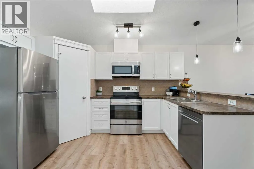 Lake Living Awaits in Auburn Bay! Fall in love with this bright and stylish lake-access bungalow featuring vaulted ceilings, large windows, and a fresh, modern feel. Recently updated with new flooring (Oct 2025), brand new kitchen appliances (fridge, stove, microwave hood fan â Oct 2025), and freshly painted, inviting, and ready to enjoy. The open concept layout is perfect for entertaining with seamless flow between the kitchen, dining, and living area, ideal for gathering with friends and family. You've got two bedrooms on the main level or use one as an office if you work from home. Downstairs you will find a finished basement offering offers a spacious family room with a wet bar, two additional bedrooms, a storage room and a 4-piece bathroom. The fenced backyard offers a spacious deck for gatherings or relaxing in the sun, plus plenty of room to build your dream garage. Enjoy Auburn Bayâs four season lake lifestyle: swim, paddleboard in the summer, skate and join community events in winter. Close to the South Health Campus, movie theatre, shops, top restaurants, and the off leash dog park. This is the one youâve been waiting forâfresh, move-in ready, and full of charm. Welcome home to Auburn Bay! (id:27476)
