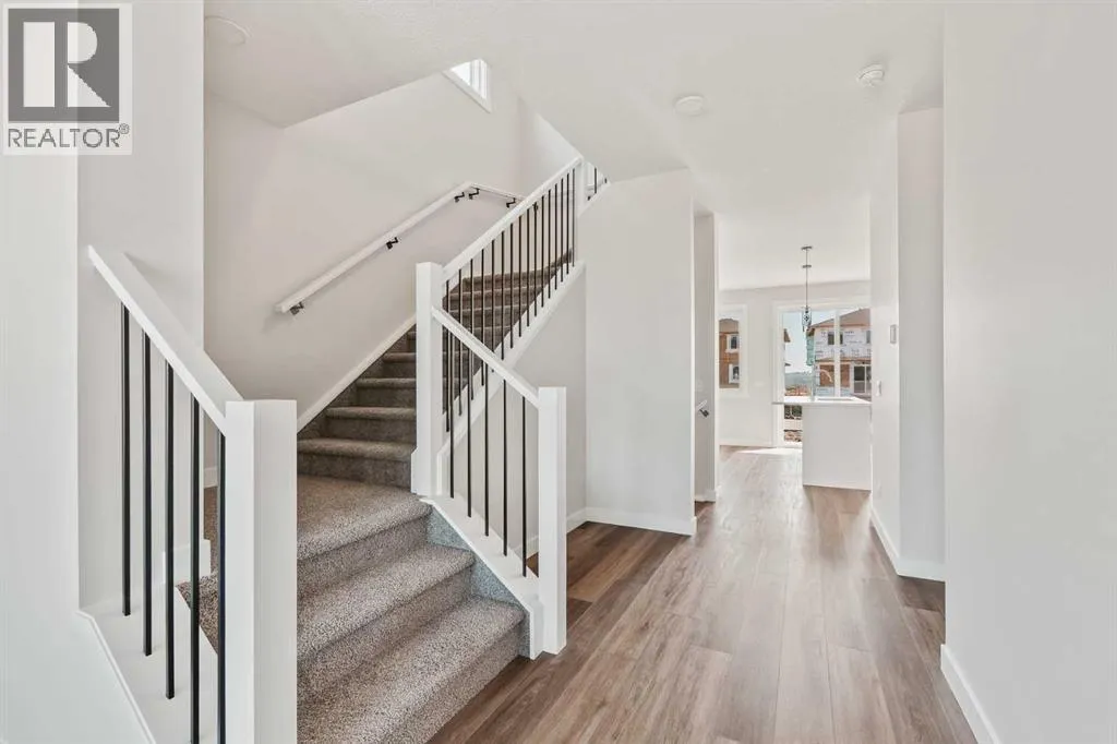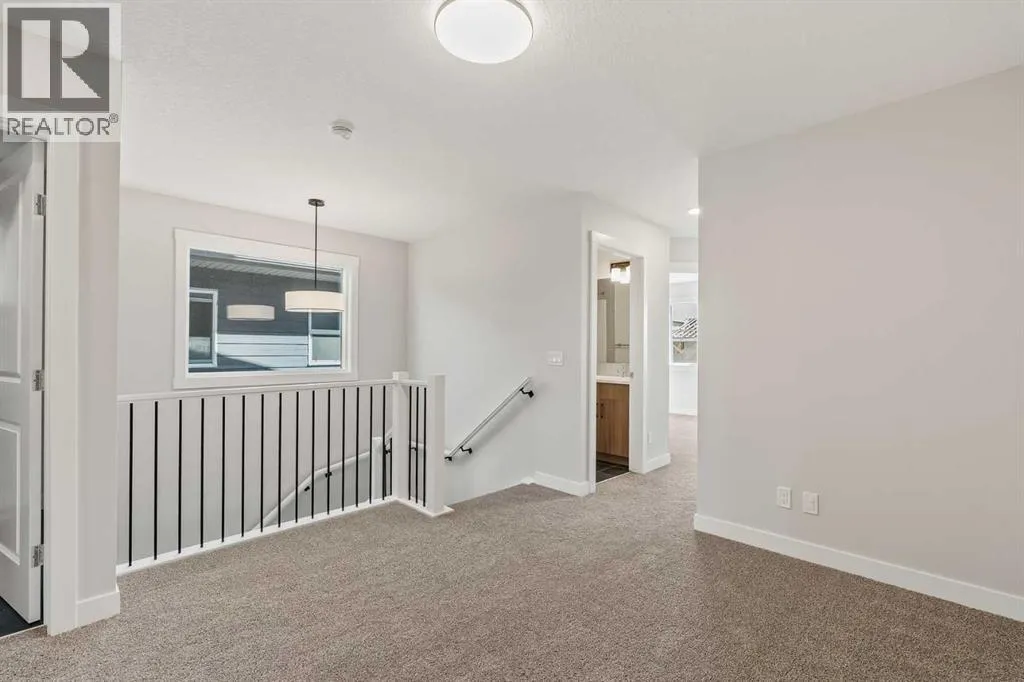 Welcome to this beautiful brand-new home located in the highly desirable community of Seton Ridge. Built by Brookfield Residential, the Wicklow model offers nearly 2,300 sq. ft. of thoughtfully designed living space across three fully developed levels, featuring 4 bedrooms, 3.5 bathrooms, and two spacious living areas, ideal for todayâs modern family. The main floor showcases an open-concept layout with 9-foot ceilings and large north-facing windows that fill the space with natural light and offer views of a green space and future school site across the street. The chef-inspired kitchen is a true highlight, complete with full-height cabinetry, a large central island, pantry, and a premium stainless steel appliance package, including a gas range, built-in microwave, and chimney-style hood fan. The kitchen flows seamlessly into the dining area, where sliding patio doors lead to the backyard, perfect for easy indoor-outdoor living. Upstairs, a central bonus room provides separation between the primary suite and two additional bedrooms, offering added privacy and flexibility. The primary bedroom features a walk-in closet and a 4-piece ensuite with dual sinks and a walk-in shower. A full bathroom and convenient upper-level laundry complete the floor. The fully developed basement adds even more functional space with a large recreation room, a fourth bedroom, and a full bathroom, perfect for guests, older children, or a home office. The backyard provides plenty of space for future development, including the option to add a double detached garage, while still offering room for outdoor living or gardening. This home comes complete with a builder warranty and Alberta New Home Warranty, giving you peace of mind as you move in. (id:27476)