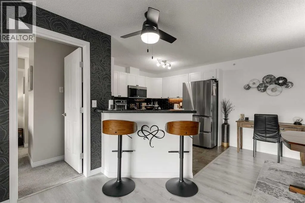 Discover the perfect blend of comfort, style, and community in this beautifully renovated 45+, 2 bedroom, 2 bathroom top floor condo located in the sought after adult only building in Chaparral Pointe. Situated on the top level, this home offers the ultimate in peace and quiet, enhancing the already tranquil atmosphere of this exceptionally maintained building.Step inside to a fully refreshed, modern interior featuring over $20,000 in recent upgrades. Newer light fixtures, designer wallpaper, paint, plush carpet, and beautifully updated bathroom vanities create a warm and inviting ambiance. The kitchen is a standout with sleek quartz countertops and brand newer appliances, including an LG fridge and stove paired with a high end Asko dishwasher. The open concept layout flows effortlessly into the living and dining areas, making this home perfectly move in ready.The spacious primary bedroom offers a walk-through closet leading to a private ensuite, while the second bedroom and full bathroom provide flexibility for guests or a dedicated workspace. Convenience continues with a titled underground parking stall, keeping your vehicle warm and secure year round, as well as access to bike storage.Life in this building comes with an outstanding range of amenities designed for connection, creativity, and relaxation. Residents enjoy a woodworking room, a cozy library, inviting seating nooks, large gathering areas, an exercise room, a communal kitchen, monthly games nights, and a full schedule of planned activities. As part of Lake Chaparral, youâll also enjoy full lake access, offering year round recreation including swimming, skating, fishing, and more.Located in the heart of beautiful Lake Chaparral, this top floor condo offers not just a home, but a lifestyle, one that blends modern comfort with exceptional amenities, lake privileges, and a vibrant adult only community. Move in and start enjoying everything this special building and neighbourhood have to offer. Book your showing now! This is a rare find! (id:27476)