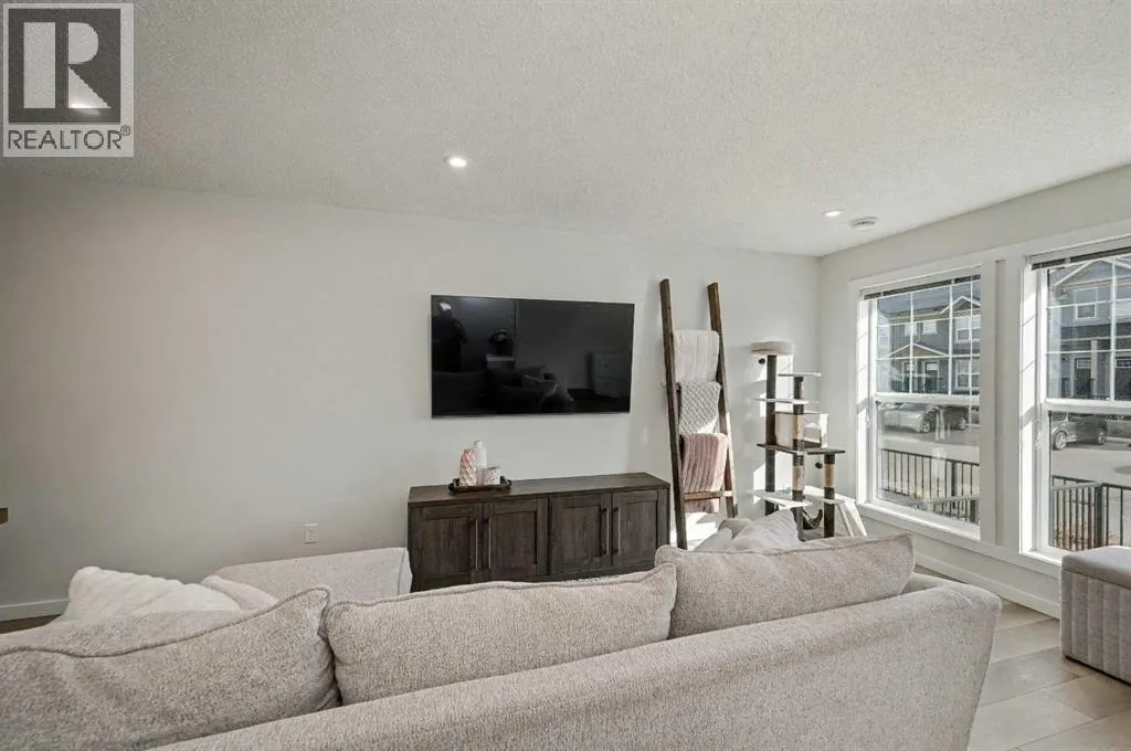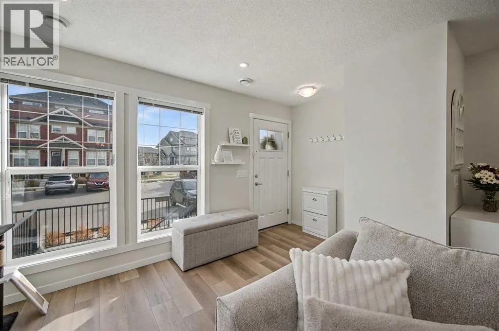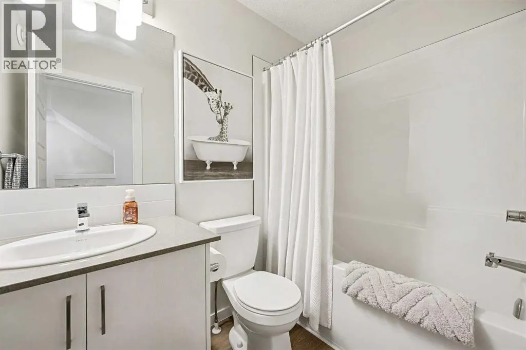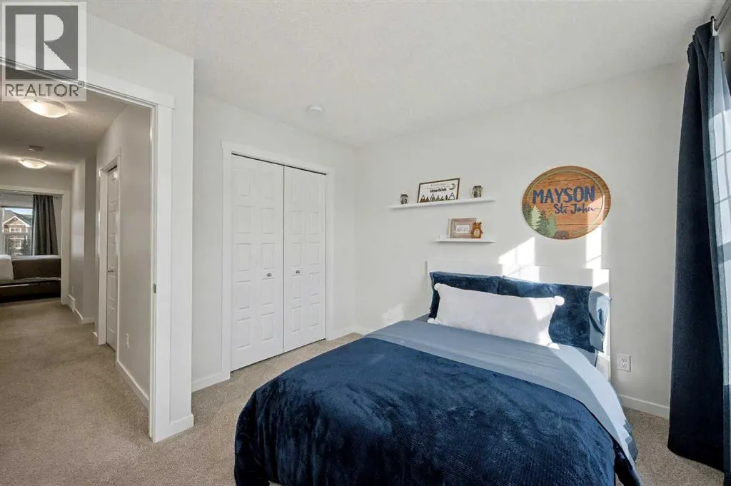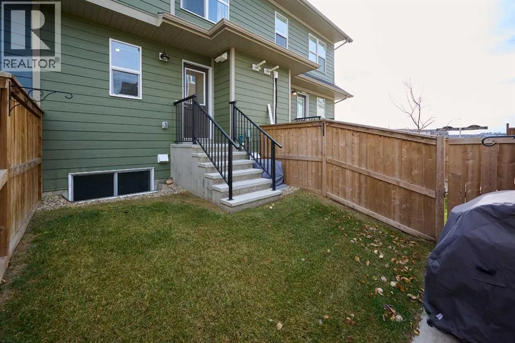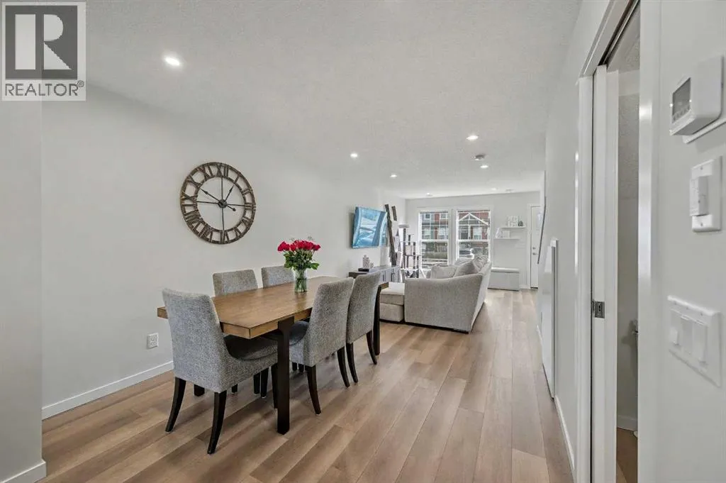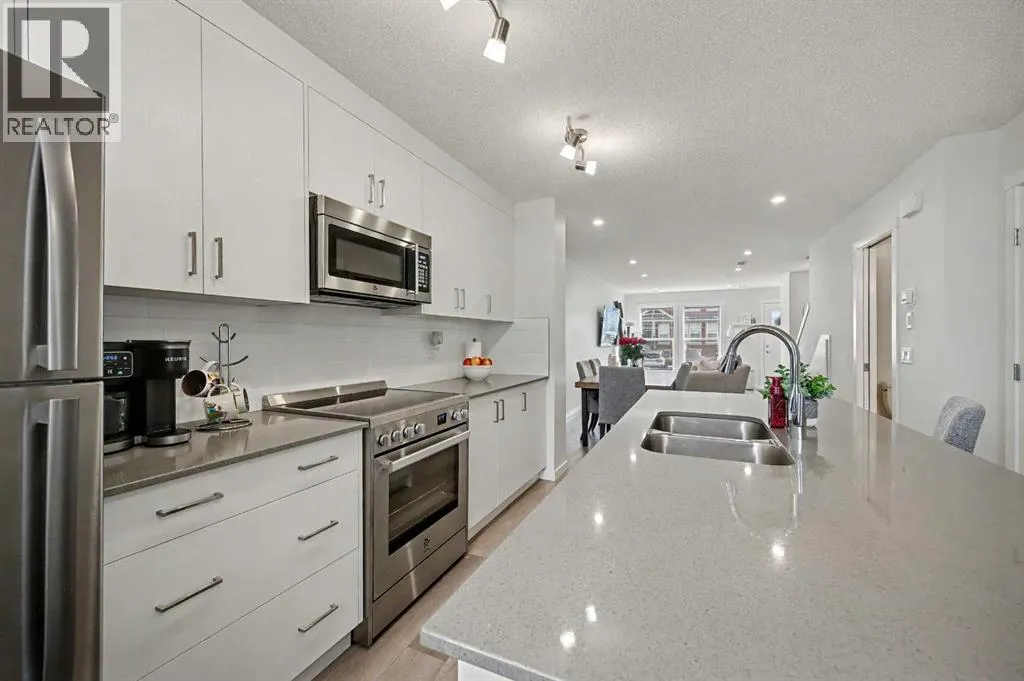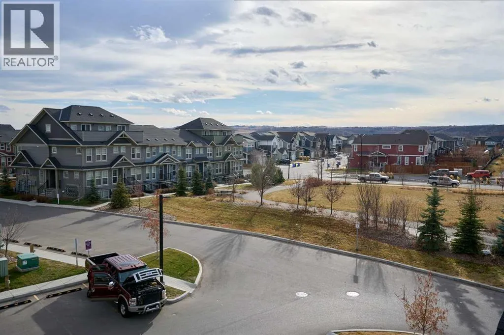 Welcome home! Discover this beautiful three-storey, 1,544 sq ft executive townhome located in the lower part of Cranston, within the sought-after Riverstone community. The site is perfectly positioned backing onto a large green space and very close to Fish Creek Park and the Bow River, this townhome offers a tranquil and scenic setting. The spacious main floor welcomes you with a large living room, an inviting dining area, and a massive kitchen counter island complete with a breakfast bar, while a convenient two-piece powder room is located just off the dining and living rooms. Enjoy the sunny west-exposed backyard, ideal for your puppy, family BBQs, and soaking up some extra sunshine. Upstairs, the second level offers two generous bedroomsâthe primary easily accommodates a king-size suite and features a three-piece ensuite bath, and the second bedroom boasts east-facing windows, bathing the room in morning sunlight to help young ones rise early. The third level presents a versatile bonus space: use it as a music room, workout area, home office, guest quarters, or a quiet family room retreat, and step out onto the east-facing balcony for peaceful early-morning views. Throughout, neutral decor is complemented by quartz countertops, a breakfast bar, stainless steel appliances, central air conditioning for warmer days, and vinyl and carpet flooring; the entire home shows like new, with great windows offering abundant daylight. Your designated parking stall is just steps away from the front door. The Century Hall recreation facility nearby offers fantastic amenities including winter hockey and skating, a summer splash park, tennis courts, a summer skate park, meeting rooms, rental options, and a gymnasium. Additional neighborhood conveniences include access to schools, shopping, major traffic routes, and bike pathways, all with very affordable townhome feesâmaking this property a fantastic opportunity to join one of the best communities that southeast Calgary has to off er. (id:27476)