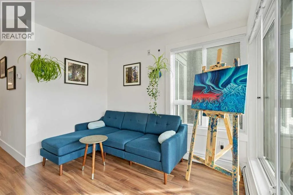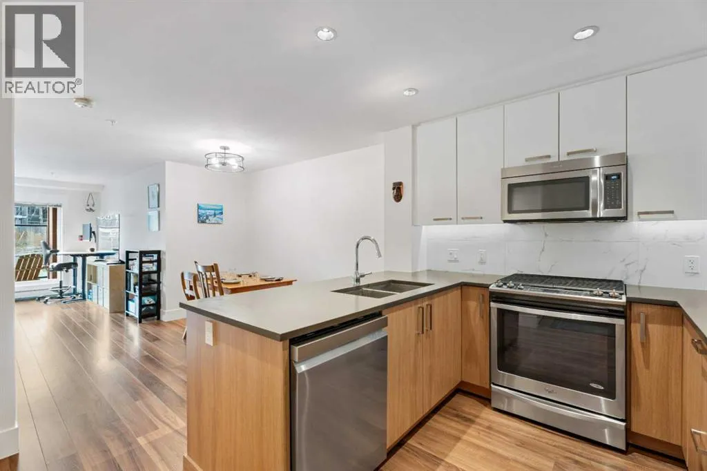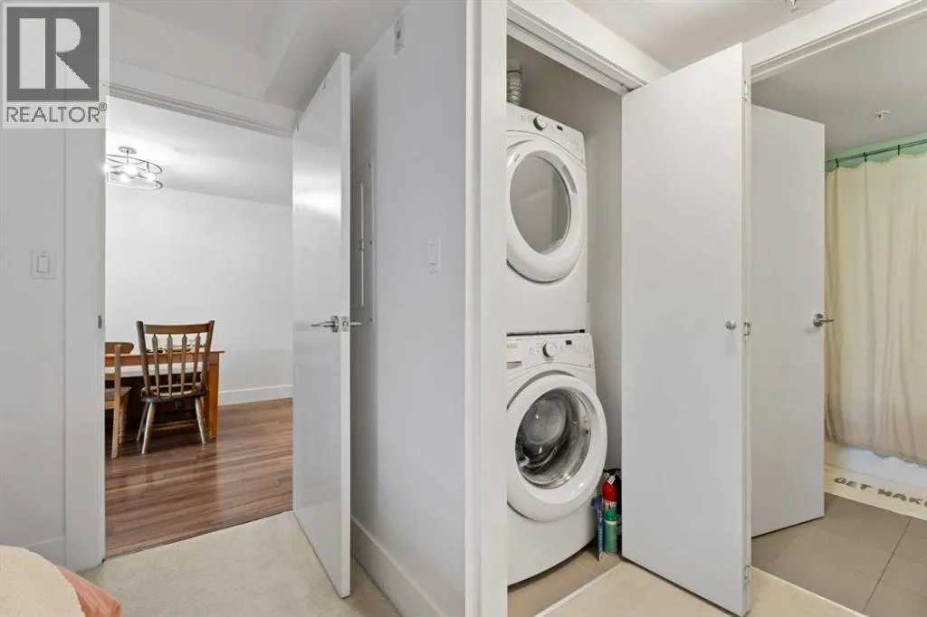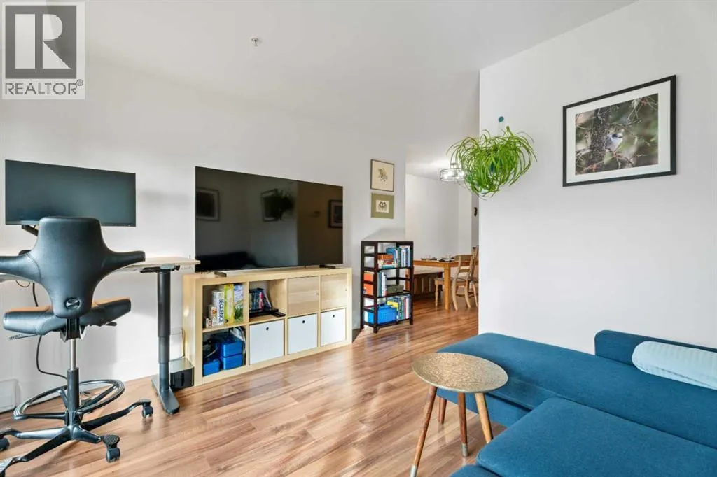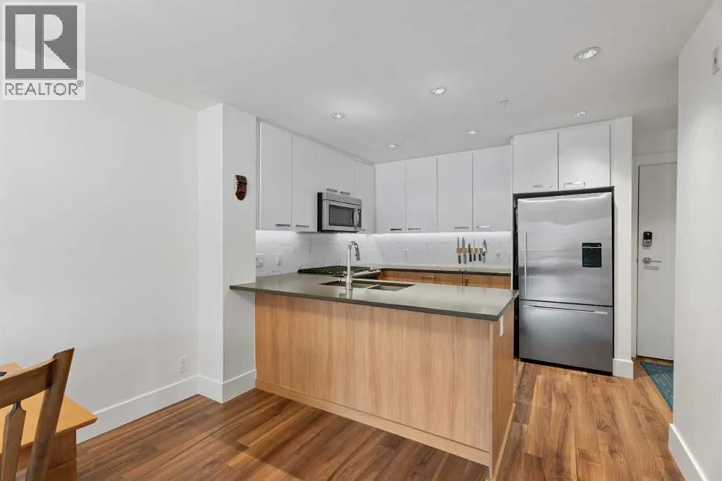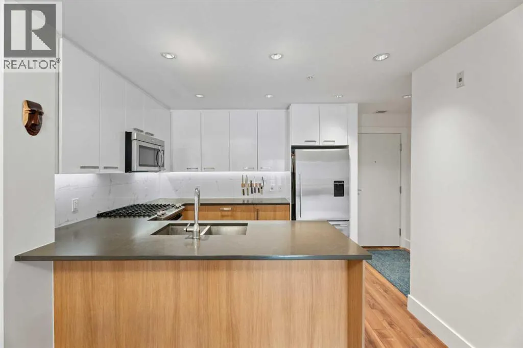 Welcome to this beautiful building located in the highly desirable community of Bridgeland. This west facing one-bedroom, one-bathroom unit offers exceptional convenience with close proximity to Bridgelandâs vibrant shops, Bow River pathways, and the downtown core. Upon entering, youâll immediately notice the spacious layout and a kitchen that is large with tons of storage. It features upgraded stainless steel appliances, including a gas range, making it perfect for cooking enthusiasts. The larger dining area flows seamlessly into the bright living room, creating an open and inviting atmosphere flowing natural light from front to back. One of the standout features of this home is the exceptionally large and secure patio, one of the biggest in the building, offering partial city views and ample space for entertaining or relaxing outdoors. The generously sized bedroom provides enough room for am additional cozy sitting area or dedicated office space. The bathroom includes a convenient ensuite-style door, allowing access from both the bedroom and main living area for added comfort and functionality. Additional features include in-suite laundry, titled underground parking, and a private storage locker. The building itself offers fantastic amenities such as a resident gym, bike storage, and secure entry throughout. This is an opportunity you donât want to miss. Perfect for first-time home buyers, commuters, and investors, this unit is ideally situated for professionals seeking modern living in one of Calgaryâs most attractive neighborhoods. (id:27476)