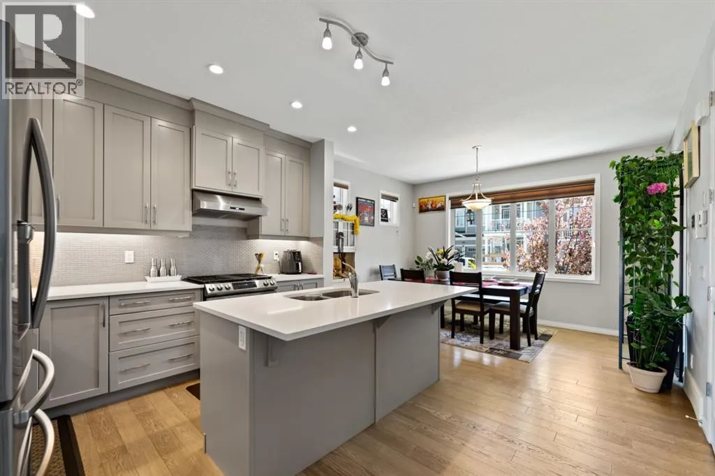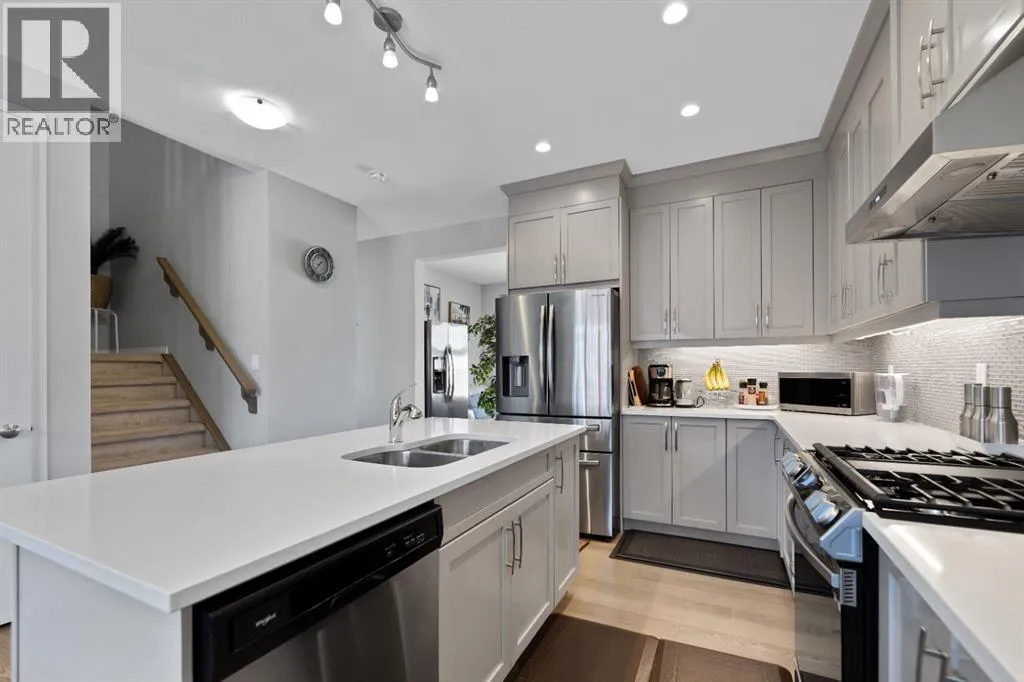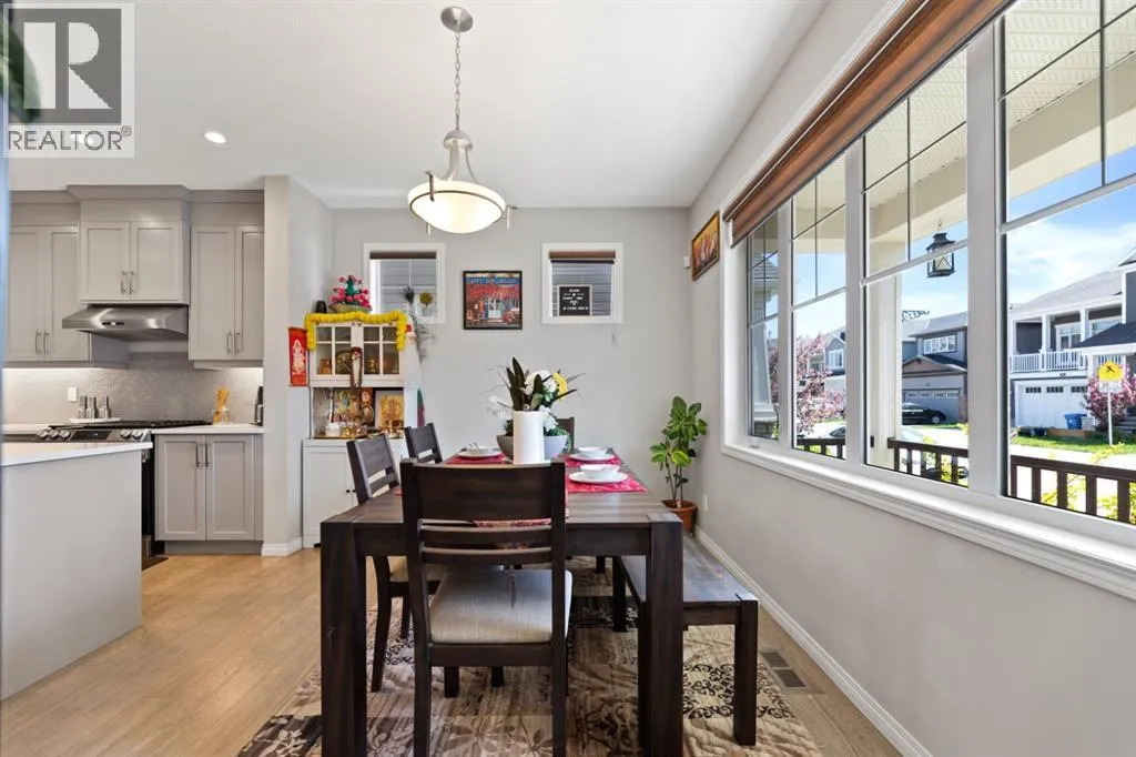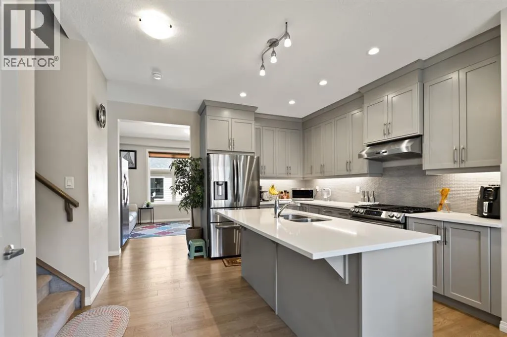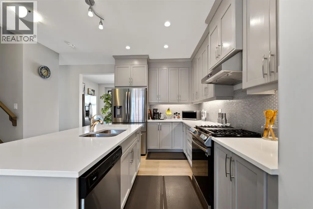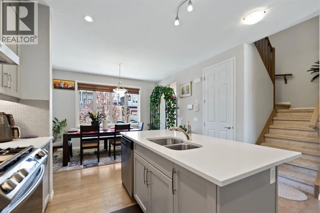 EXCEPTIONALLY CLEAN, VERY WELL MAINTAINED AND REASONABLY PRICED. Amazing value in this beautifully designed 2 ½ storey, 4-bedroom and 3.5 bathroom contemporary home in the vibrant community of Cityscape. This property offers a lot of features that enhance both style and functionality such as open concept, 9' ceiling on the main floor and basement and front porch to enjoy morning tea. As you step inside, you are greeted by a thoughtfully designed open-concept layout that seamlessly connects the dining room, kitchen and living room. The spacious great room is adorned with large windows that allows natural light and featuring a gas fireplace for cozy, relaxing evenings. Main floor kitchen is a chef's dream. Ceiling height kitchen cabinets with tons of space, beautiful backsplash and enough counter space for all your needs. A big central island and the dining area offers ample space for family gatherings. Lot of recent upgrades includes new roof, siding and gutters November 2024, central AC February 2023, under kitchen cabinet lights, new Samsung refrigerator April 2022, Samsung Gas Range and high efficiency hood fan 2024. On the second floor, you will find two generously sized bedrooms with shareable 4 pc bathroom. Upper floor completes with a primary bedroom, 4-piece ensuite bathroom with ceiling height tiles and a spacious walk-in closet. Basement is tastefully developed with 9' ceiling. IT can easily be converted into a legal or illegal suite with side entrance and by putting a new stove. Side entrance can be made either on the front or the right side (A/C side) of the property. Basement includes a large family room, professionally designed kitchen with a provision for electric stove, laundry and a good sized bedroom. Low maintenance backyard, double detached garage and deck for your summer bar b q is a treat. Seller has kept everything up to date as far as Furnance cleaning and the maintenance of the house. This home is situated in a community where you can access all the amenities at walking distance making it an excellent investment opportunity. Donât miss your chance to own this remarkable property! Click on the media link to view each room individually, then schedule a viewing to experience all that this home has to offer! (id:27476)