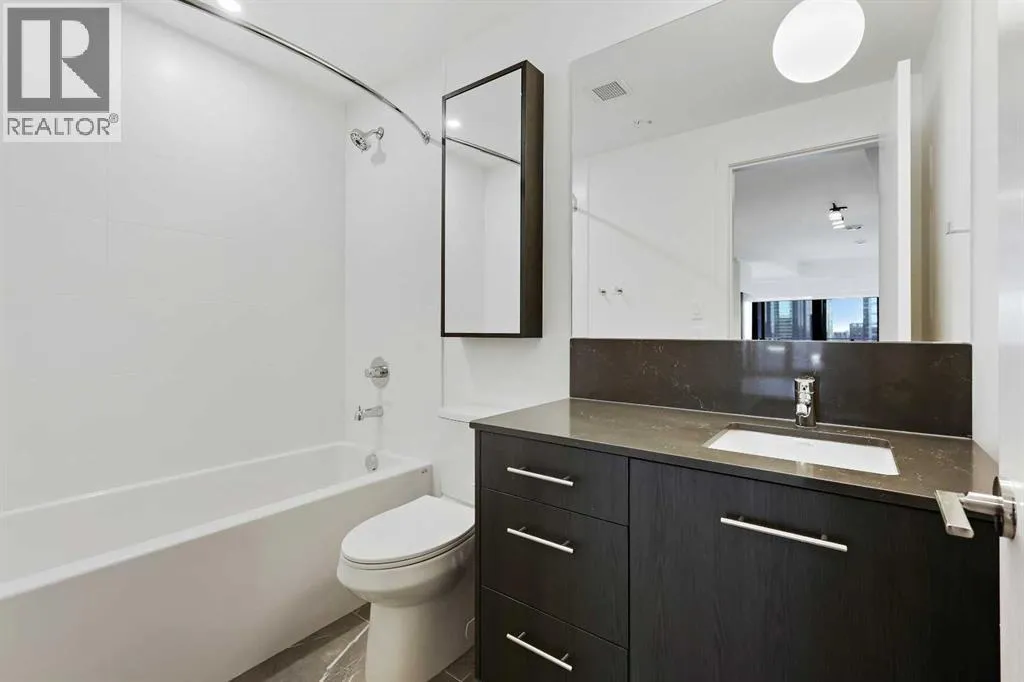 Welcome to unit 1103 at First & Park, an elegant new address in Calgaryâs sought-after Eau Claire community. This one bedroom, one bathroom home combines modern design with everyday convenience. The open-concept layout features a sleek kitchen with contemporary cabinetry, quartz countertops, and premium appliances, flowing seamlessly into the bright living space and east facing balcony with. beautiful views! This unit has a full bath, and in-suite laundry offer comfort and functionality. Enjoy a titled parking stall, along with building amenities including an upscale gym & yoga studio (patio just outside which also features gas bbq hookups), party lounge, modern co-working space and concierge. Just steps from the Bow River pathways, Princeâs Island Park, dining, and downtown, this is the perfect balance of style and location. Whether youâre a first-time buyer, investor, or looking for a stylish downtown retreat, this home at First & Park is the perfect opportunity to live where the city meets the river. Show Suites Open: every Wed, Thurs & Fri (*plz check open house time) please text number on sign for entry! (id:27476)