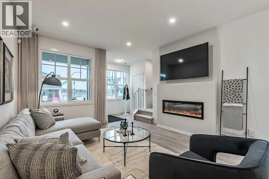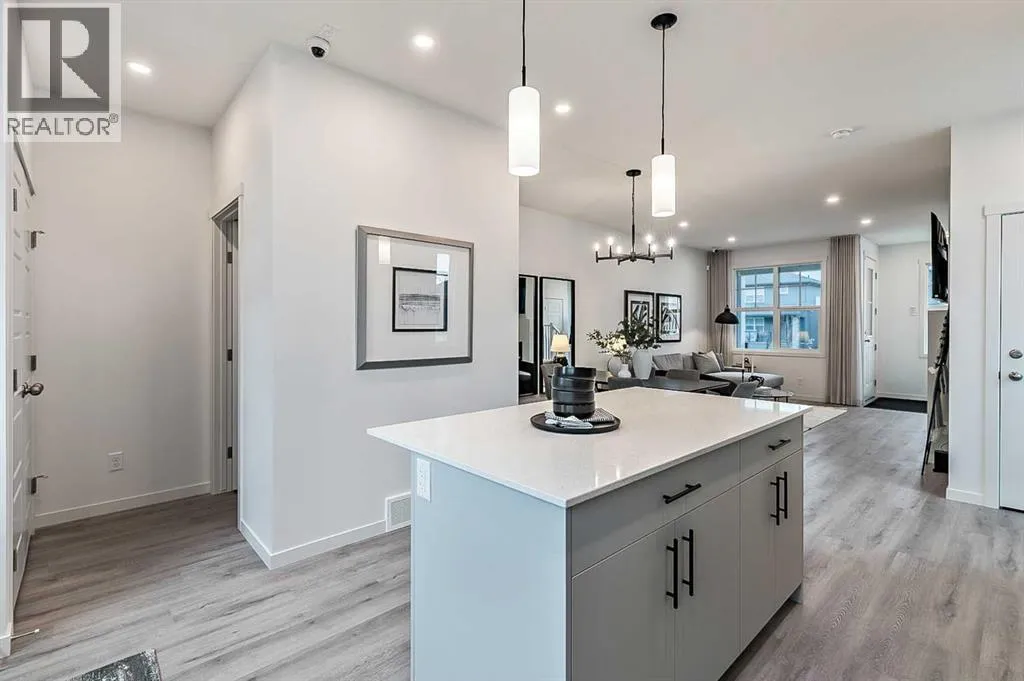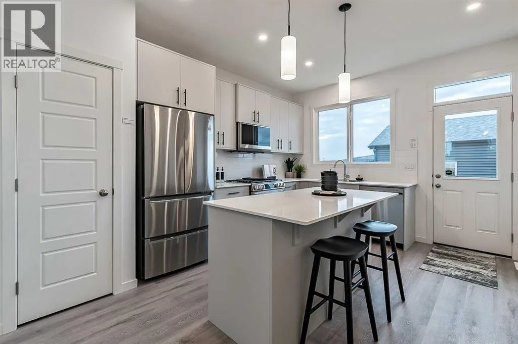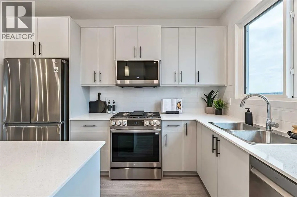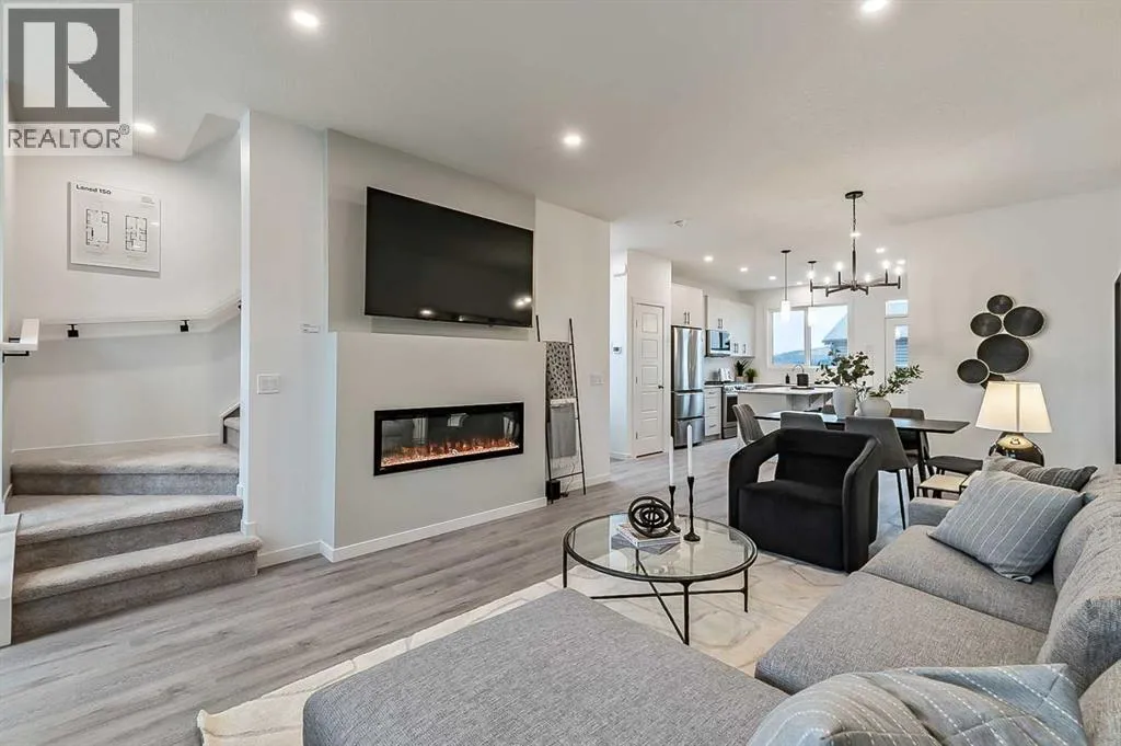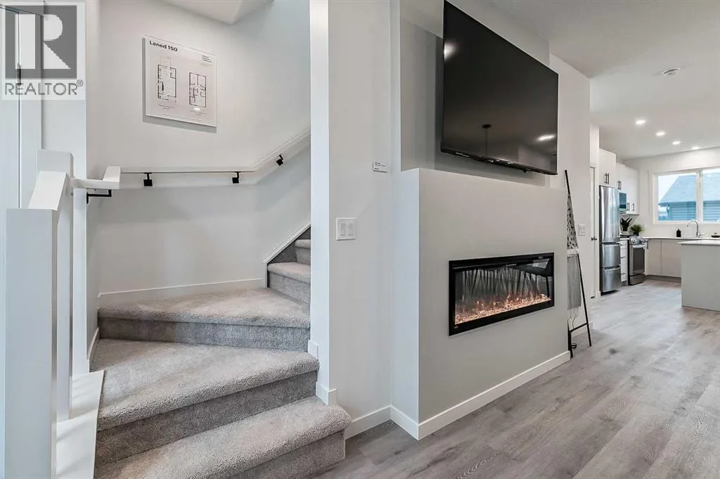 Welcome to the Laned 150 by Anthem, a thoughtfully designed quick possession home offering 1,370 sq. ft. of living space across the main and upper levels â plus a fully finished legal basement suite for added value and flexibility.This home features a stylish Prairie elevation and modern interior finishes throughout. The main floor offers 9â ceilings, luxury vinyl plank flooring, and Decora-style switches, creating a bright and cohesive look. The open-concept layout includes a spacious great room with an electric fireplace, a dedicated dining area, and a rear kitchen complete with quartz countertops, a stainless steel sink, and a premium stainless steel appliance package with a gas range both in the main kitchen and the basement suite.Upstairs, youâll find three comfortable bedrooms including a well-appointed primary suite with ensuite, a 4-piece main bath, and convenient upper-level laundry. Plush carpeting with 8lb underlay and iron spindle railing add comfort and contemporary detail.The legal basement suite offers an additional 445 sq. ft. of self-contained living space with a private side entrance, one bedroom, one bathroom, a kitchen with stainless steel appliances including a gas range, in-suite laundry, and separate mechanicals with dual furnaces and hot water tanks.Built with efficiency in mind, this home includes triple-pane low-E argon windows and an integrated HRV system for improved comfort and air quality.Perfect for multi-generational living or generating rental income, this Anthem home in Pine Creek combines functionality, style, and opportunity â all in one smart package. (id:27476)