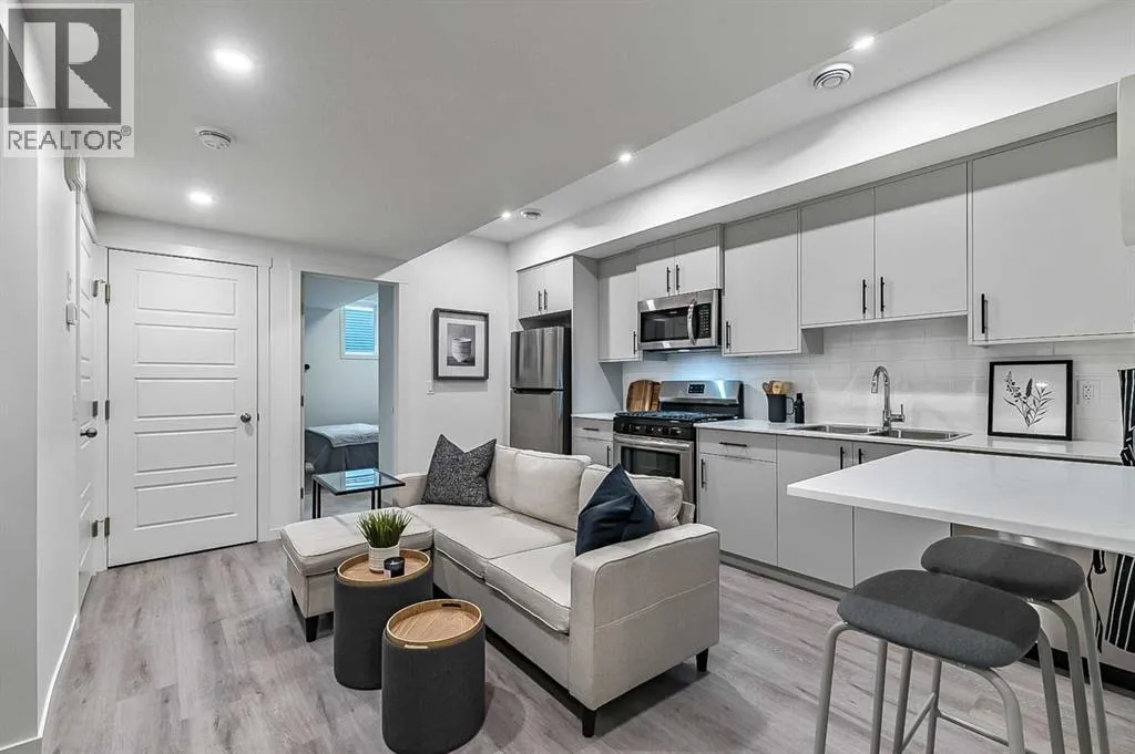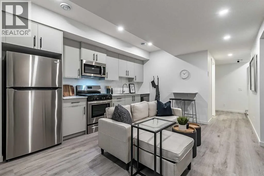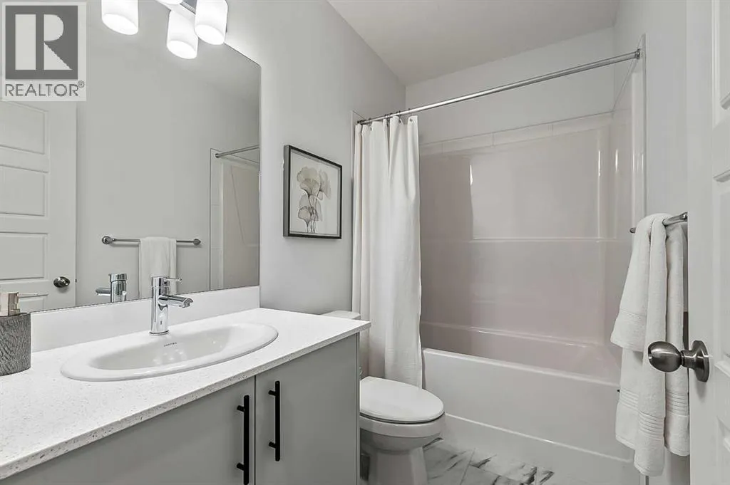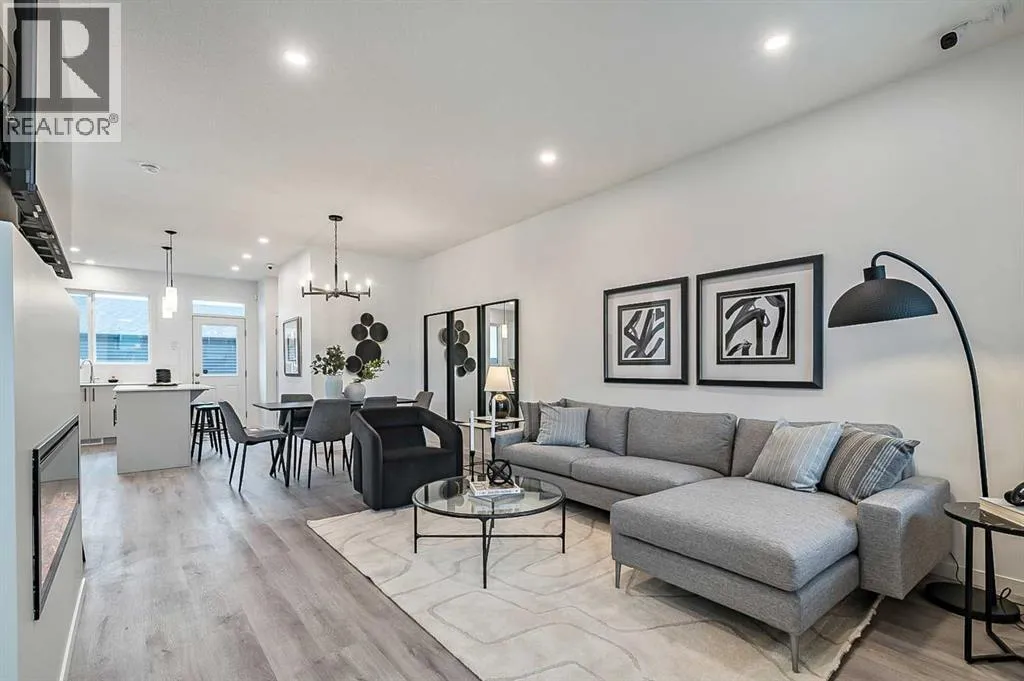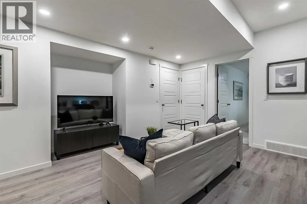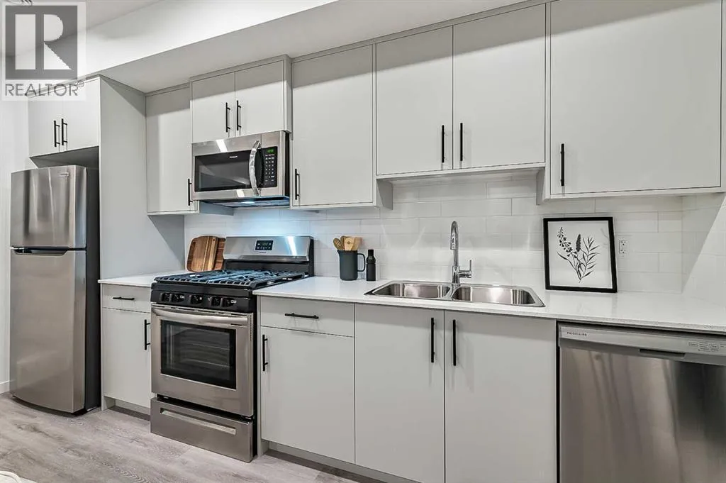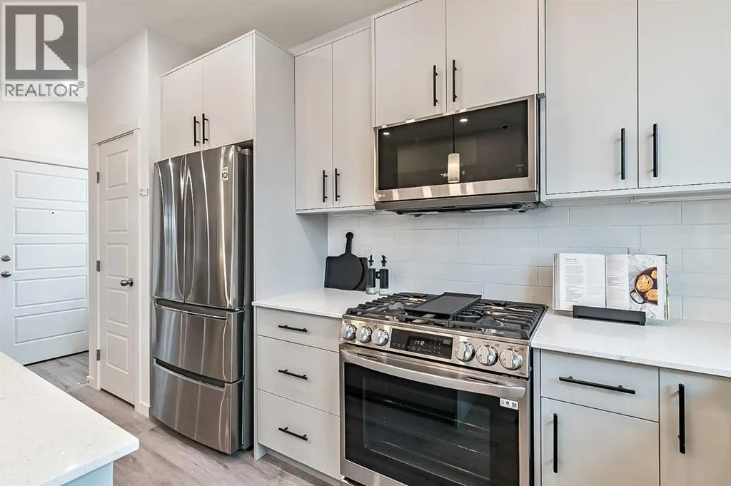 Welcome to the Laned 150 by Anthem, a thoughtfully designed quick possession home offering 1,370 sq. ft. of living space across the main and upper levels â plus a fully finished legal basement suite for added value and flexibility.This home features a stylish Prairie elevation and modern interior finishes throughout. The main floor offers 9â ceilings, luxury vinyl plank flooring, and Decora-style switches, creating a bright and cohesive look. The open-concept layout includes a spacious great room with an electric fireplace, a dedicated dining area, and a rear kitchen complete with quartz countertops, a stainless steel sink, and a premium stainless steel appliance package with a gas range both in the main kitchen and the basement suite.Upstairs, youâll find three comfortable bedrooms including a well-appointed primary suite with ensuite, a 4-piece main bath, and convenient upper-level laundry. Plush carpeting with 8lb underlay and iron spindle railing add comfort and contemporary detail.The legal basement suite offers an additional 445 sq. ft. of self-contained living space with a private side entrance, one bedroom, one bathroom, a kitchen with stainless steel appliances including a gas range, in-suite laundry, and separate mechanicals with dual furnaces and hot water tanks.Built with efficiency in mind, this home includes triple-pane low-E argon windows and an integrated HRV system for improved comfort and air quality.Perfect for multi-generational living or generating rental income, this Anthem home in Pine Creek combines functionality, style, and opportunity â all in one smart package. (id:27476)