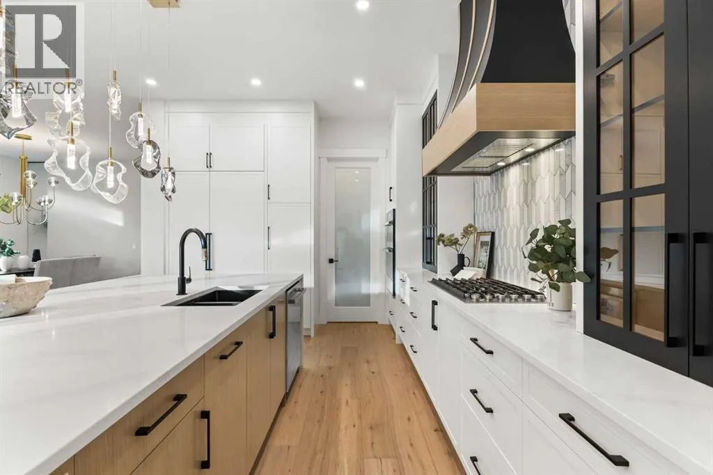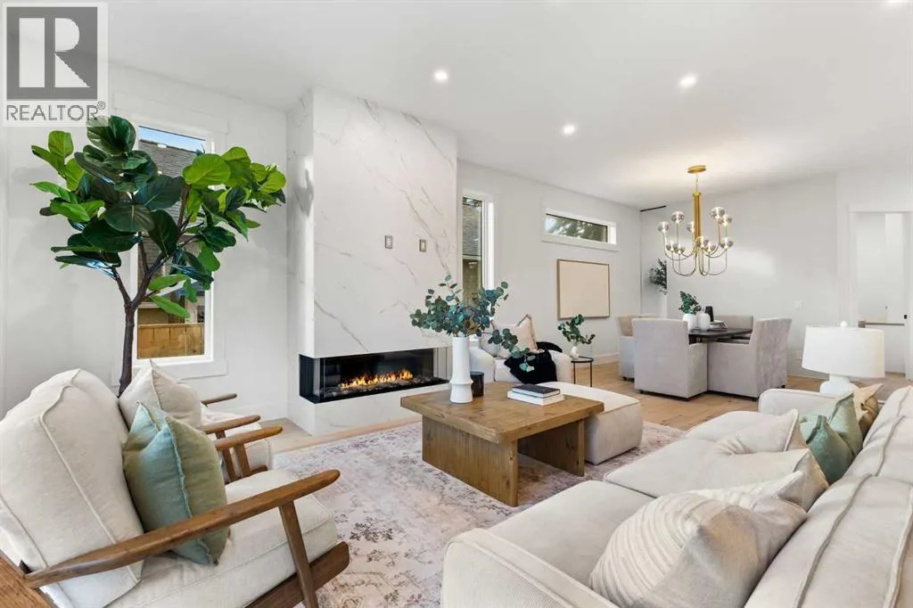 OPEN HOUSE SATURDAY, NOVEMBER 15TH FROM 1-4 PM & SUNDAY, NOVEMBER 16TH FROM 3-5 PM. This dazzling two-storey home, situated on a 37.6âx 120â lot on a quiet tree-lined street in the heart of Mount Pleasant will take your breath away at every turn! Newly constructed in 2025, this residence offers nearly 2,800 sq ft above grade plus a fully developed basementâdelivering over 4,000 sq ft of refined living space across three levels. From the moment you step inside, the craftsmanship and attention to detail are unmistakable. The main floor is drenched in natural light and enhanced by hardwood floors, lofty ceilings, recessed lighting and elegant light fixtures, showcasing a spacious living room anchored by a commanding floor to ceiling fireplace and formal dining area with ample space to host family and friends. A chef-inspired kitchen is the heart of the home, featuring quartz counters, gas cooktop, built-in oven, oversized island/eating bar, and walk-in pantry. A dedicated office, elegant foyer, mudroom, and powder room complete the main level. Upstairs, the expansive primary suite with elegant tray ceiling is a true private oasis, boasting a to-die-for walk-in closet plus extra built-in storage and a posh 5-piece ensuite with steam shower & in-floor heat, double vanity, relaxing freestanding soaker tub and separate shower. A bonus/media room with wet bar & balcony access, 2 additional bedrooms, a full bathroom, and a well-appointed laundry room with sink provide comfort and convenience for family living. The fully finished basement is roughed-in for in-floor heat and designed for entertaining and versatility, featuring a massive recreation/media room with wet bar â the perfect space for game or movie night. Two additional bedrooms, a 5-piece bathroom, flex space, and utility room are the finishing touches to the basement level. Additional features include central air conditioning, plenty of built-ins, and thoughtful design touches throughout. Outside, enjoy a SUNNY SOU TH BACK YARD with deck with access to a detached triple garage which is roughed in for an EV charging system. The inner-city location is incredibly convenient, close to scenic Confederation Park, trendy Kensington, schools, shopping, SAIT, Foothills Hospital & effortless access to 16th Avenue, 10th Street & 4th Street. (id:27476)