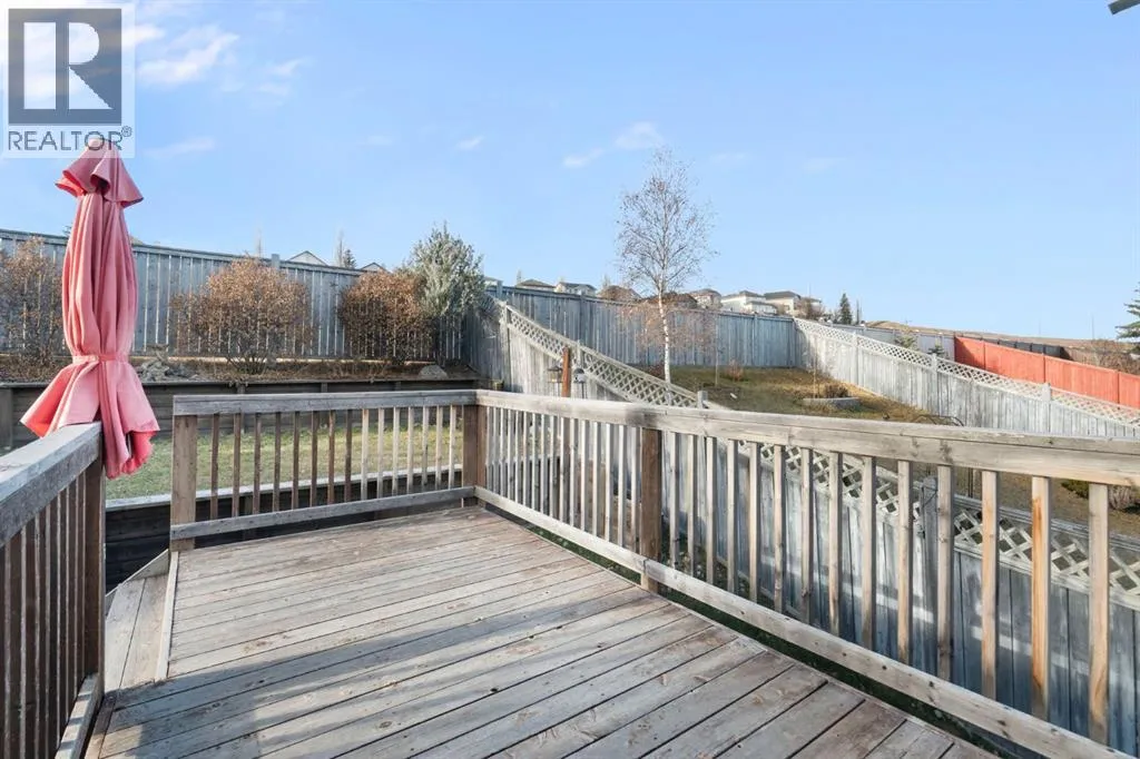 Welcome to this well-maintained and upgraded home in Hidden Valley. This property is backed onto green space with walking paths and has extensive upgrades in the last few years: New flooring (2021), New kitchen appliances (2022), New insulated garage door panels (2023); New hot water tank (2023); New roof and siding (2024), New PEX pipes (2025). Inside, you are greeted by an open floor plan with Central Air Conditioning, perfect for modern living. The main living area is open and inviting, ideal for entertaining guests or enjoying cozy nights in. You will also find skylight and stainless steel appliances in the kitchen. Upstairs, you will find a full bath with skylight and 2 well-sized bedrooms with one leading to the deck. The Rolling Security Shutter provides additional piece of mind. The fully finished basement expands your living space with an additional bedroom, a rec room which can be used as a bedroom, and a full bath. Step outside to your private, fully fenced backyard that backs indirectly onto green space and walking paths. The backyard features a sizeable deck with BBQ gas lines. The attached double garage with insulated panels and driveway is perfect for any family use. The property is within walking distance to K-9 Public and Catholic schools, parks, and playgrounds, close to city transit and has quick access to Deerfoot and Stoney Trail. Book your showing now! (id:27476)