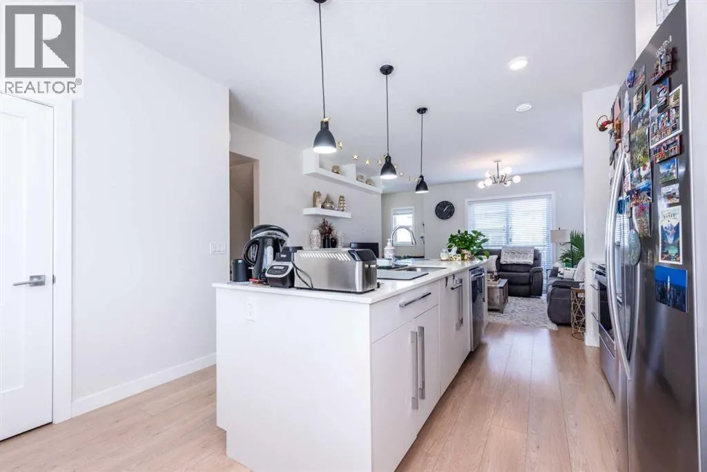 Welcome home to this beautiful large 4 bedroom END UNIT townhome in the community of Cornerstone. Keep your car warm inthe HEATED DOUBLE attached garage, which leads directly into the unit. Walk in the first level, which consists of a bedroom which can also be usedas a flex/office. Walk upstairs to an open concept living area with a half bath, dining area, kitchen and living room and a cozy reading nook. Beautifulwhite cabinets to the ceiling. White QUARTZ countertops, giving your kitchen a bright and clean look. STAINLESS STEEL appliances (Brand newdishwaher) and pantry completes the kitchen. Spacious living room overlooking the inner courtyard is the perfect place to unwind after a long day ofwork. Walk out the sliding patio doors off the living room and enjoy your summer BBQs on your balcony. Walk up the stairs to a spacious masterbedroom with good sized walk in closet. The master ensuite has tiles to the ceiling, easy for cleaning. The other 2 bedrooms share the 4 piece bathand full sunny during a day. Laundry is conveniently located on the upper floor, so you don't need to carry your laundry up and down the stairs. Enjoya relaxing stroll after dinner around the courtyard just outside your front door. Just outside, thereâs a huge green space where families can enjoy timetogether and kids can run around and play freely. Easy access to Stoney Trail and Deerfoot Trail. Close to the airport and Cross Iron Mall. Scheduleyour showing today before it's gone! (id:27476)