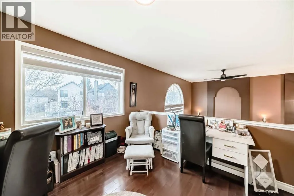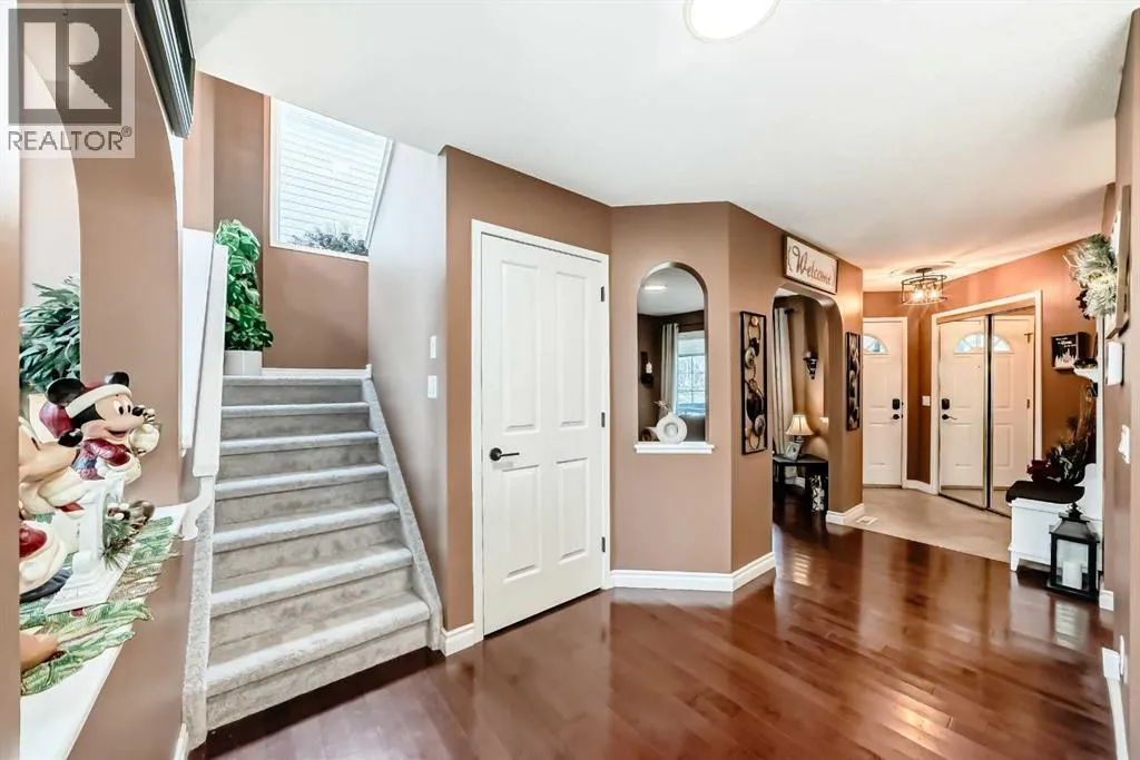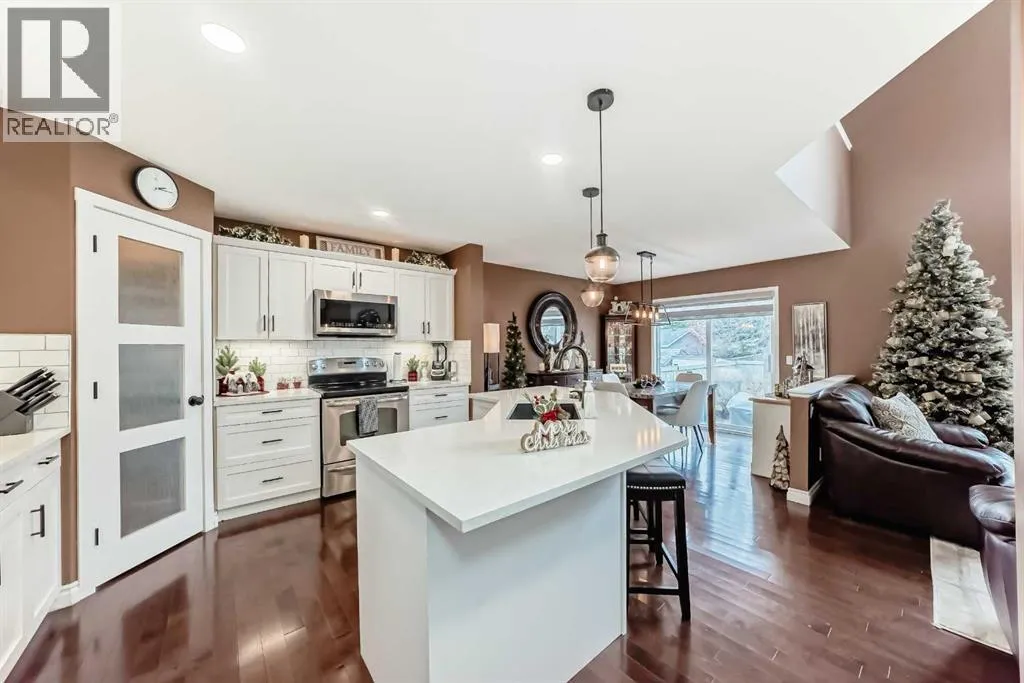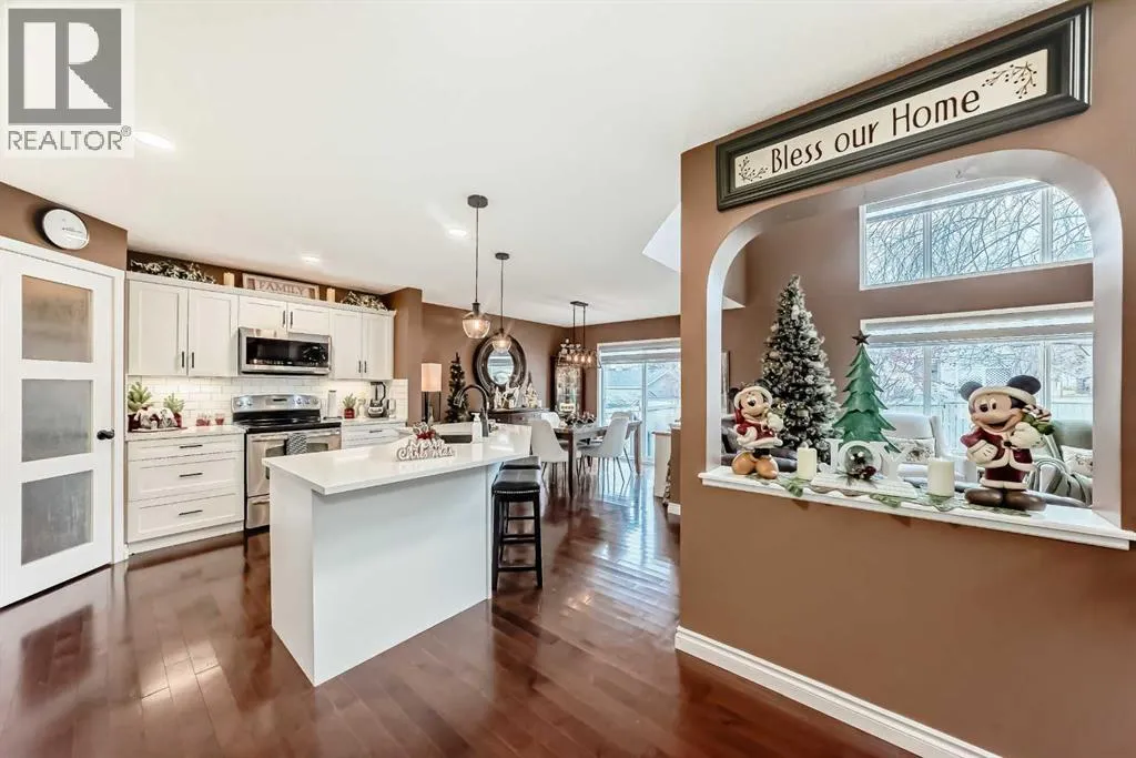 Welcome to this spacious & elegant home in the sought-after community of Hidden Valley. Schools, parks and walking paths make this a family friendly neighborhood, yet it has quick & convenient access to Stony Trail, leading to 'everywhere' you need to go! Over the past few years, this home has undergone extensive renovations including all new kitchen (quartz counters with gleaming white cabinets), new hardware, baseboard and trim, new microwave/hood fan & dishwasher, new carpet upstairs, new light fixtures, brand new, motorized zebra blinds in Living Room and Bonus Room/Office (over $3,000 value for blinds); as well as brand new shingles. The main floor includes a front of the house den/sitting room/dining room, which then leads to the open concept kitchen, dining room & living room. This 'heart of the home' area boasts the large & bright kitchen with island which is accentuated by soaring vaulted ceilings, floor to ceiling windows flooding this area of the home with natural light, gas fireplace for cold winter nights, and deck leading to large back yard where you'll enjoy summer BBQs. Laundry & powder room complete the main floor. Upstairs you will find the large primary bedroom with walk-in closet and 4 piece ensuite. Another hilite of this home is the upstairs bonus room, perfect for office space, home-work room or hang out space. Two more bedrooms & a 4-piece bathroom complete the upper floor. Downstairs contains a HUGE open family room, which can be partitioned for various uses, a 4th room which can be used for office/craft room (or enlarge the window for a 4th bedroom). Double detached garage and spacious back yard make this the ideal family home in a wonderful community. Book your private viewing today! (id:27476)
