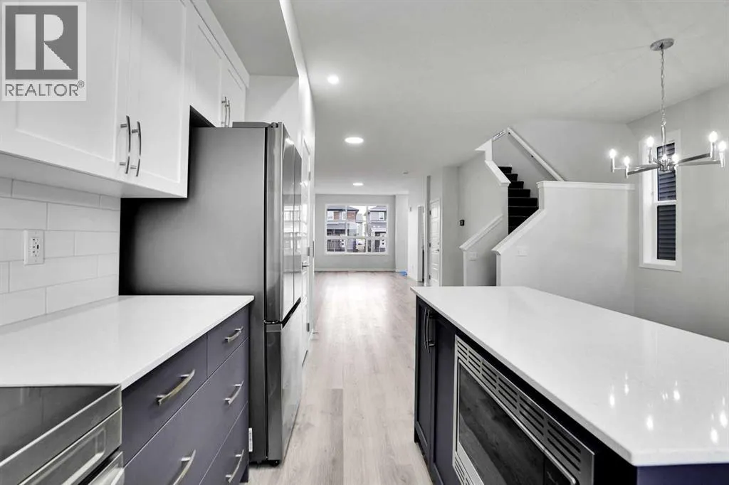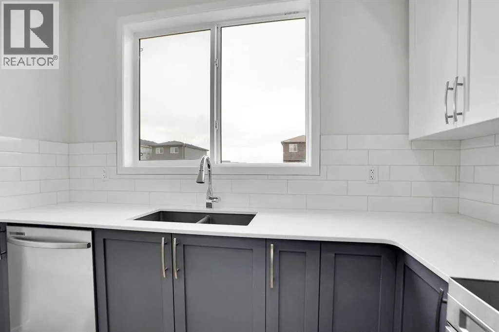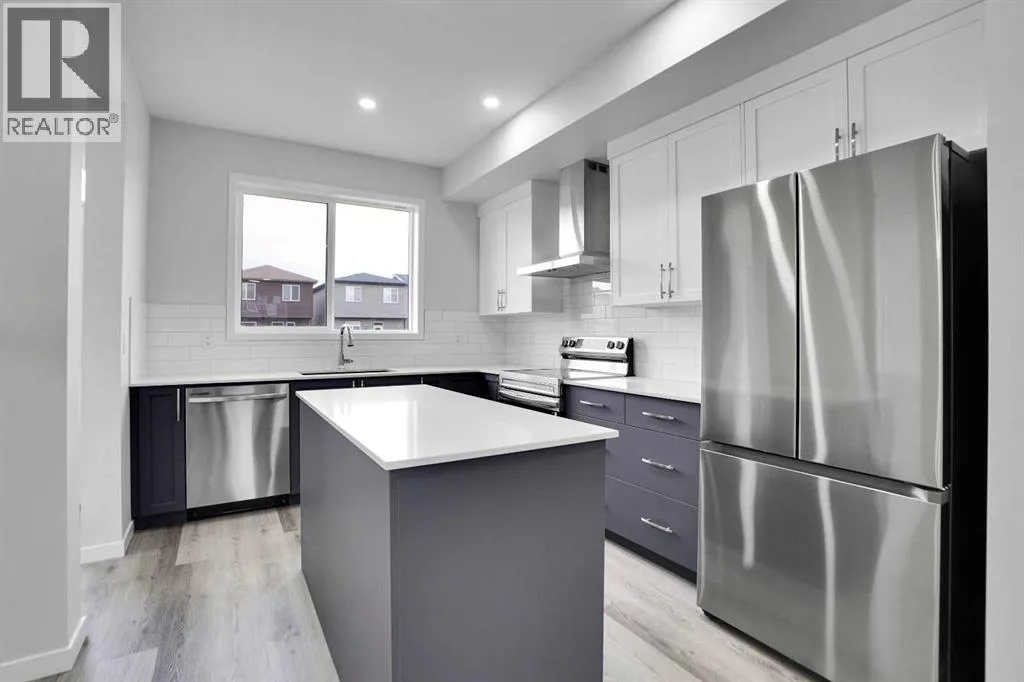 Welcome to this stunning brand-new 2025 duplex in Cornerstone, offering 1,607 sq ft on the main and upper levels plus a 708 sq ft legal 1-bedroom basement suite with separate entryâperfect for rental income or extended family. The bright, open-concept main floor features a sun-filled living room, spacious dining area, and a modern kitchen equipped with quartz countertops, stainless steel appliances, dual-tone cabinets, and a pantry, along with a rear mudroom and 2-piece bath. Upstairs includes 3 generous bedrooms, 2 full bathrooms, and convenient upper-level laundry, highlighted by the primary suite with a walk-in closet and 3-piece ensuite. The legal basement suite offers an open layout with large windows, recessed lighting, its own kitchen, living area, sizeable bedroom, and 3-piece bath. With high ceilings, ample natural light, rear double parking pad with alley access, and abundant street parking, this beautifully designed home is the complete packageâbook your showing today! (id:27476)