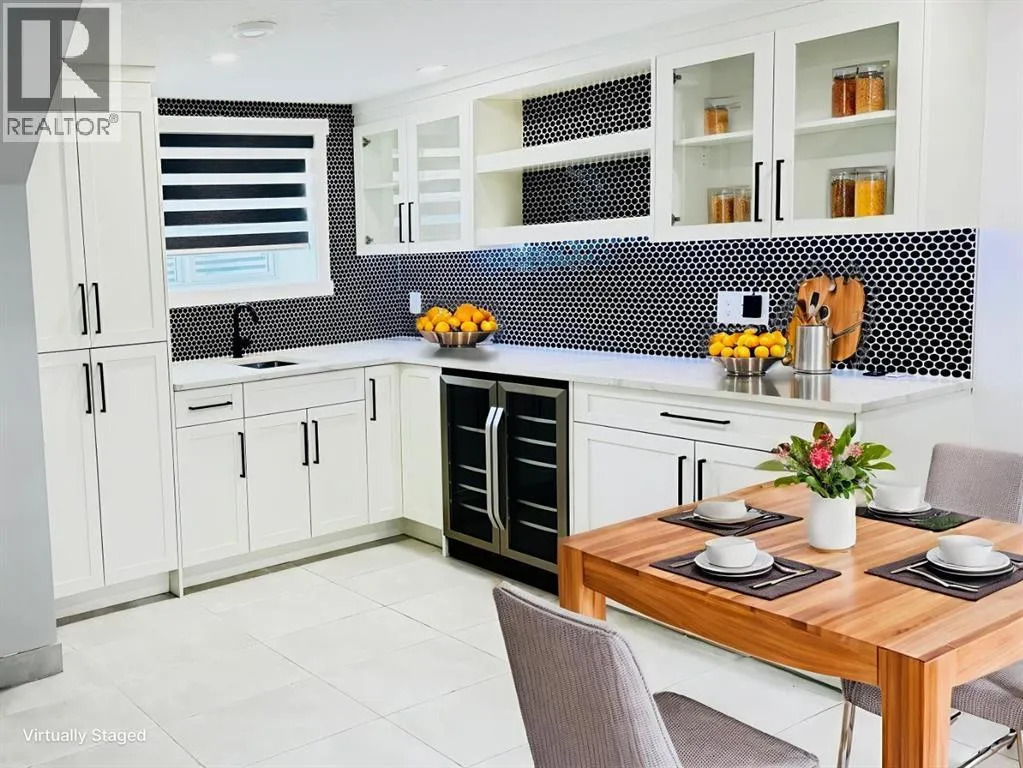 This extensively renovated, 4 bedroom, 3 bathroom home in the highly desirable community of Southwood offers the modern feel and function of a brand-new build. The 2021 transformation included major upgrades like new insulation, roof, drywall, a high-efficiency furnace and water tank, and large, bright windows installed in both the home and garage, ensuring the space is always flooded with natural light.Designer Interiors and Premium FinishesThe main level showcases stunning engineered hardwood flooring throughout the principal living areas. The living room is expansive and bright, anchored by a massive 10-foot window, a stylish in-wall gas fireplace with chic brick surround, and a ceiling-mounted smart TV.The gourmet kitchen is a true chefâs delight, featuring sleek, shaker-painted cabinets. It is equipped with premium Whirlpool stainless black series appliances, including a built-in oven and microwave, a gas cooktop, and a 36-inch French door refrigerator. A functional island with its own LED lighting completes this beautiful, practical space.The primary suite is a private retreat, distinguished by a unique feature wall and an impressive walk-through closet with custom shelving and a dressing table. The luxurious 4-piece master ensuite will spoil you with black tiling, a semi-recessed double vanity, a decadent rain shower with six added jets and black penny round accents over black granite. For year-round comfort, the ensuite also includes heated floors! A separate main-floor laundry closet with a washer/dryer adds convenience.Fully Developed Lower Level The basement (easily suitedâsubject to municipal approval) is a fantastic extension of the living space, featuring a convenient kitchenette and a huge recreation area perfect for entertaining, games, or simply relaxing. The lower level also includes two generously sized bedrooms and a well-appointed 4-piece bathroom.Unbeatable Location and ConvenienceLocation is paramount, and this property truly deli vers! Situated on Elbow Drive, you benefit from the ultimate convenience of a large plaza directly across the street, featuring a grocery store, doctorâs office, dentist, pet store, fast food, gas stations, and more. Commuting is effortless, as you are just minutes to downtown, the Ring Road, and have easy access to all amenities in Southwest Calgary. The home is also close to both elementary and middle schools, ideal for families.The property boasts a huge fully fenced backyard, a single-car, insulated, drywalled, and painted garage, and a triple parking pad in the back. Don't miss out on this incredible value! Call or message to view this great property today. Please note that the photos used have been staged virtually with furniture and accessories. Public Open House Scheduled for Wednesday November 19th 3:30 - 6:30PM. (id:27476)