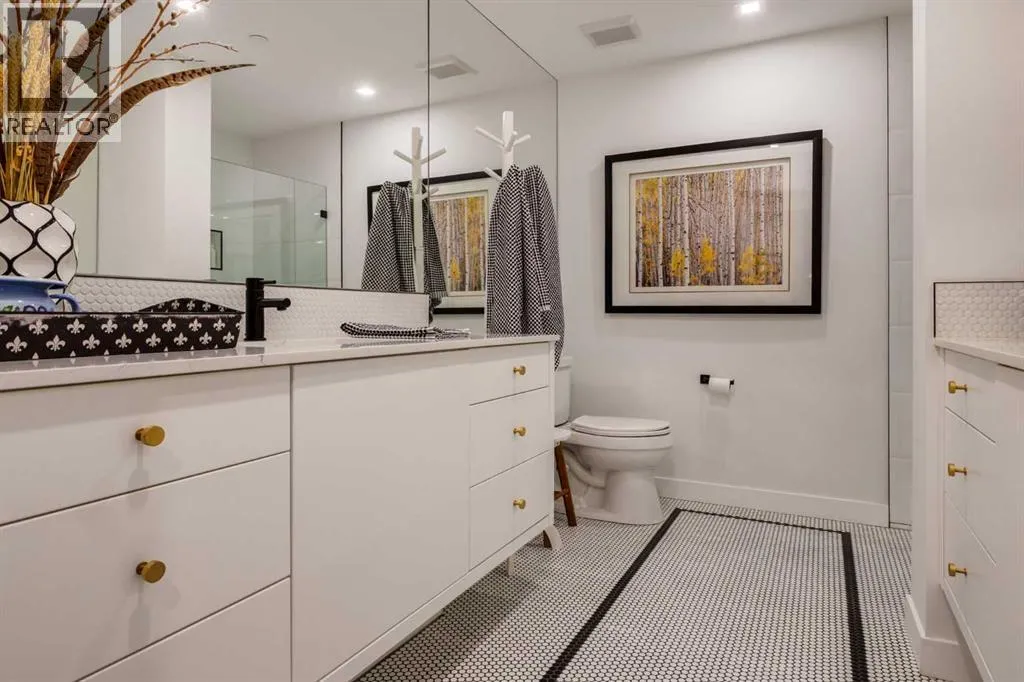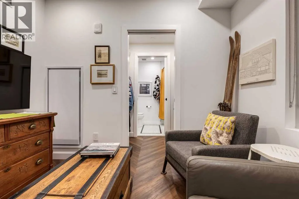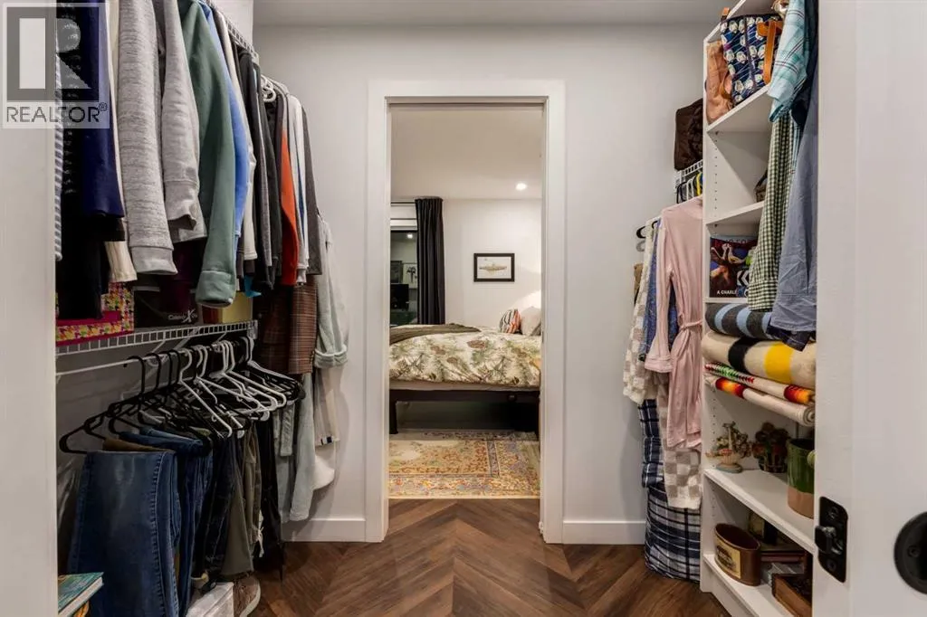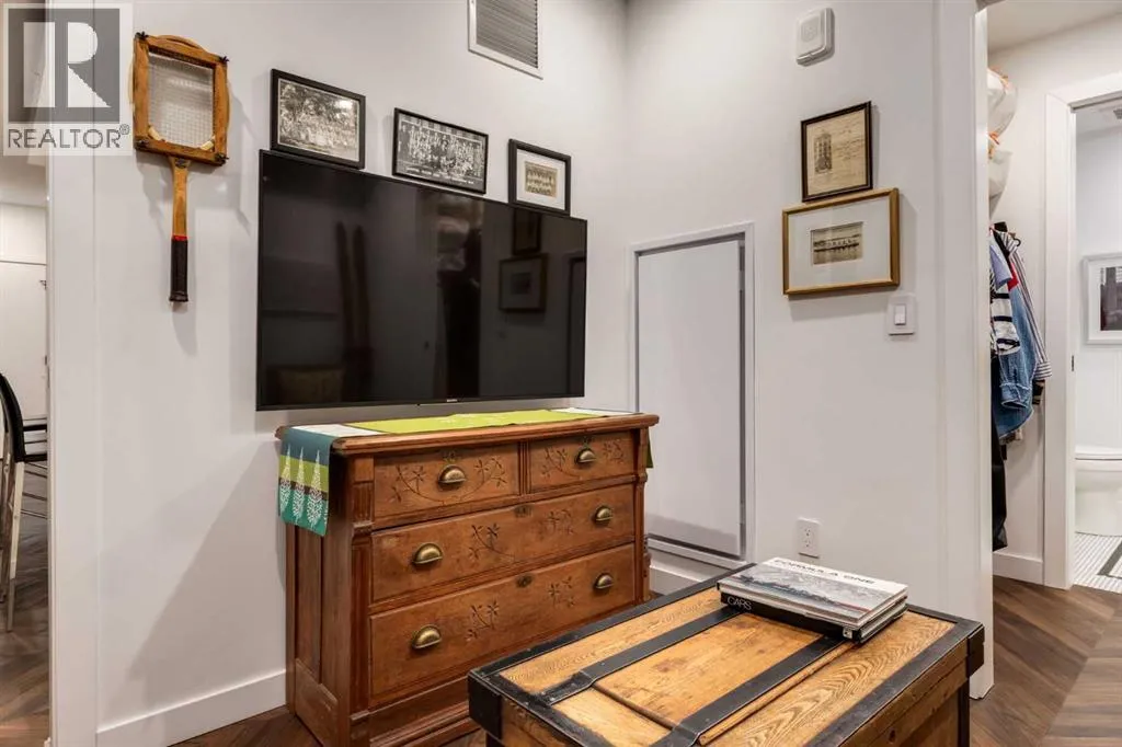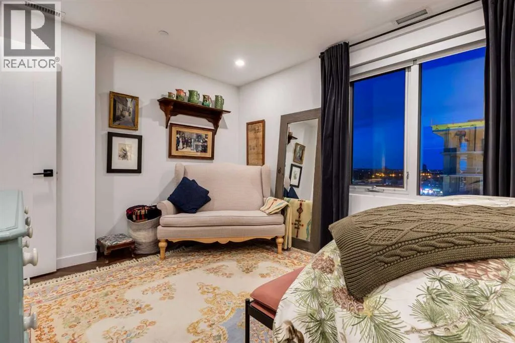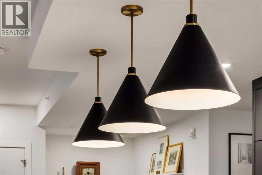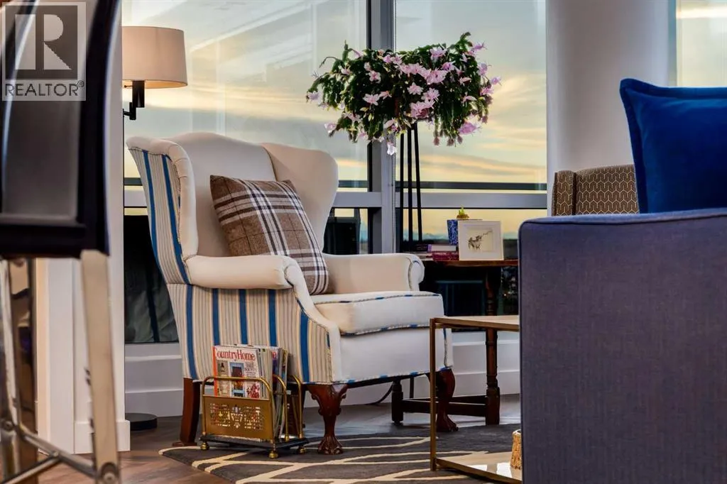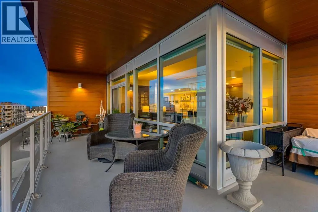 Experience elevated urban living in this warm and inviting two-bedroom residence offering over 1,100 square feet of thoughtfully designed interior space and a wraparound terrace perfect for everyday outdoor living and relaxed entertaining. Blending a cozy Ralph Laurenâinspired aesthetic with modern finishes, this home features chevron-patterned flooring, designer lighting, and flat-painted ceilings that create a timeless atmosphere throughout. The chef-inspired kitchen is the heart of the home, showcasing matte grey slate cabinetry with soft-close hardware, brushed-gold accents, quartz countertops, and a matching backsplash. Premium appliances include a Frigidaire induction cooktop, Elica hood fan, Fisher & Paykel integrated fridge and freezer, and Whirlpool oven, complemented by a deep grey Blanco sink, elegant black pendant lighting, and a spacious walk-in pantry. The open living room and dining areas are bathed in natural light from expansive windows that frame stunning mountain views, while a charming reading/coffee nook offers the perfect spot to unwind or start your day. The versatile second bedroom can easily serve as a guest room, home office, or creative space, complete with a walk-in closet and a stylish four-piece bathroom. The primary suite feels calm and comforting, with warm neutral tones, a walk-in closet, and a spa-like ensuite featuring dual vanities, quartz countertops, and a glass-enclosed shower. Additional features include a new Electrolux washer and dryer, generous linen storage, one titled underground parking stall, and two large storage units. The wraparound terrace enhances daily living with ample space for outdoor lounging and garden greenery, creating a private retreat in the heart of the city. Residents enjoy access to premium amenities including a rooftop patio, private ownerâs lounge, secure underground visitor parking, bike storage, EV charging stations, and concierge services. Ideally located in Calgaryâs West District, you are surrou nded by parks, walking paths, boutique shops, cafés, and dining options. Book your private viewing today! (id:27476)