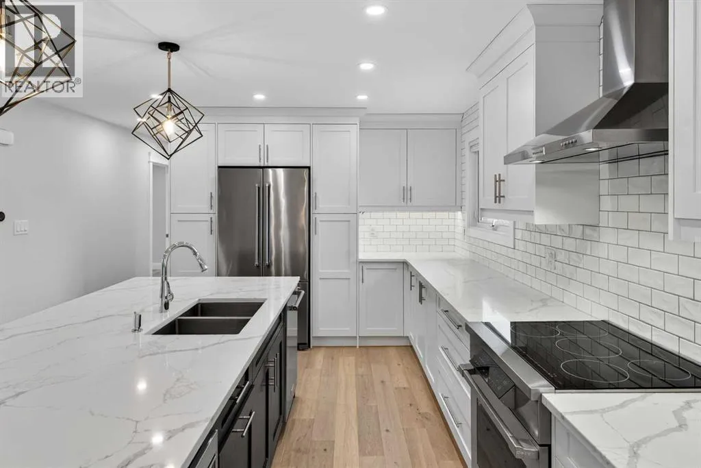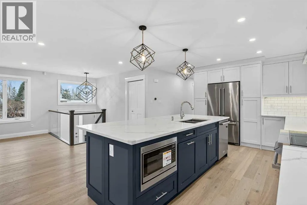 OPEN HOUSE SUNDAY NOVEMBER 16 1PM TO 3 PM!! Welcome to this beautifully updated bi-level home in the highly sought-after community of Lakeview. Featuring 2 bedrooms up and 2 down, this renovated property combines modern style, functionality, and an unbeatable location.The heart of the home is the stunning modern kitchen, designed with both beauty and practicality in mind. It features a large island with seating, perfect for family gatherings or entertaining friends, along with stainless steel appliances, an induction oven, sleek cabinetry, and plenty of counter space for meal prep. The open layout flows seamlessly into the dining and living areas, creating a bright, welcoming space filled with natural light.The fully finished basement expands your living options, offering two additional bedrooms, a spacious family room, and a full bathroomâplus a home office, or gym area. Located just steps from Connect Charter School, North Glenmore Park, close to shopping, parks, and amenities, this home offers exceptional convenience. With quick access to Stoney Trail and Glenmore Trail, commuting anywhere in the city is easy.Move-in ready and situated in one of Calgaryâs most desirable communities, this Lakeview home perfectly balances modern living, comfort, and location. (id:27476)