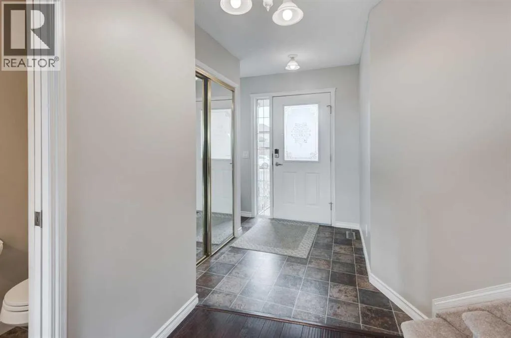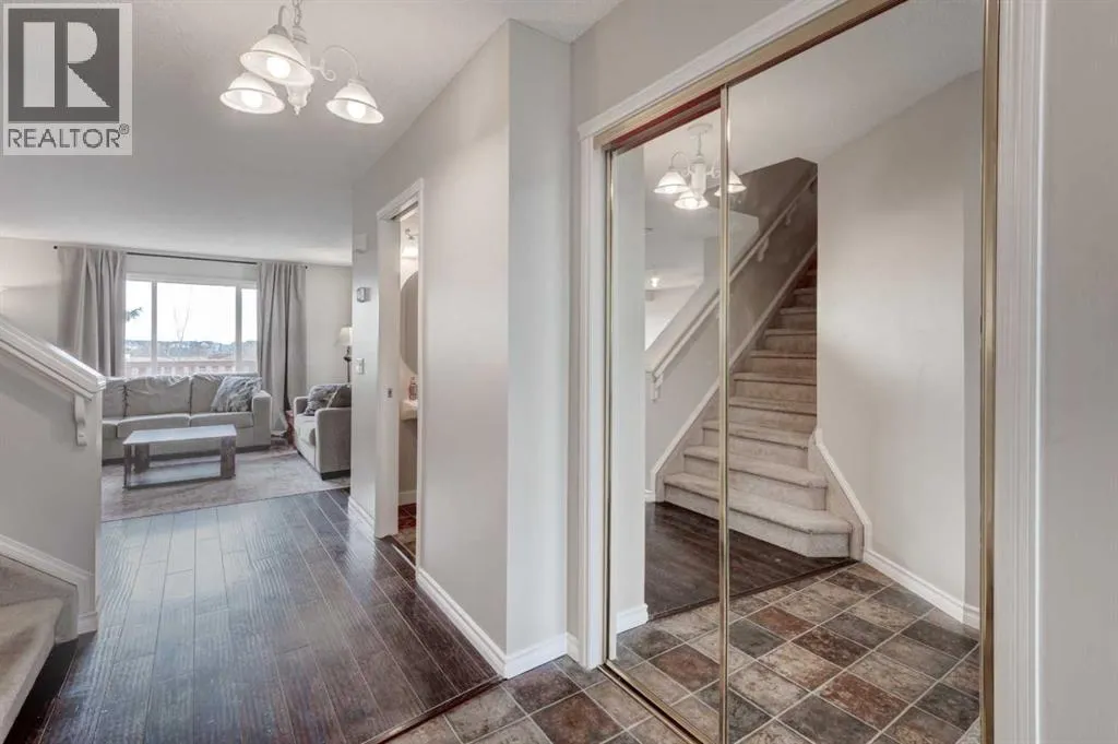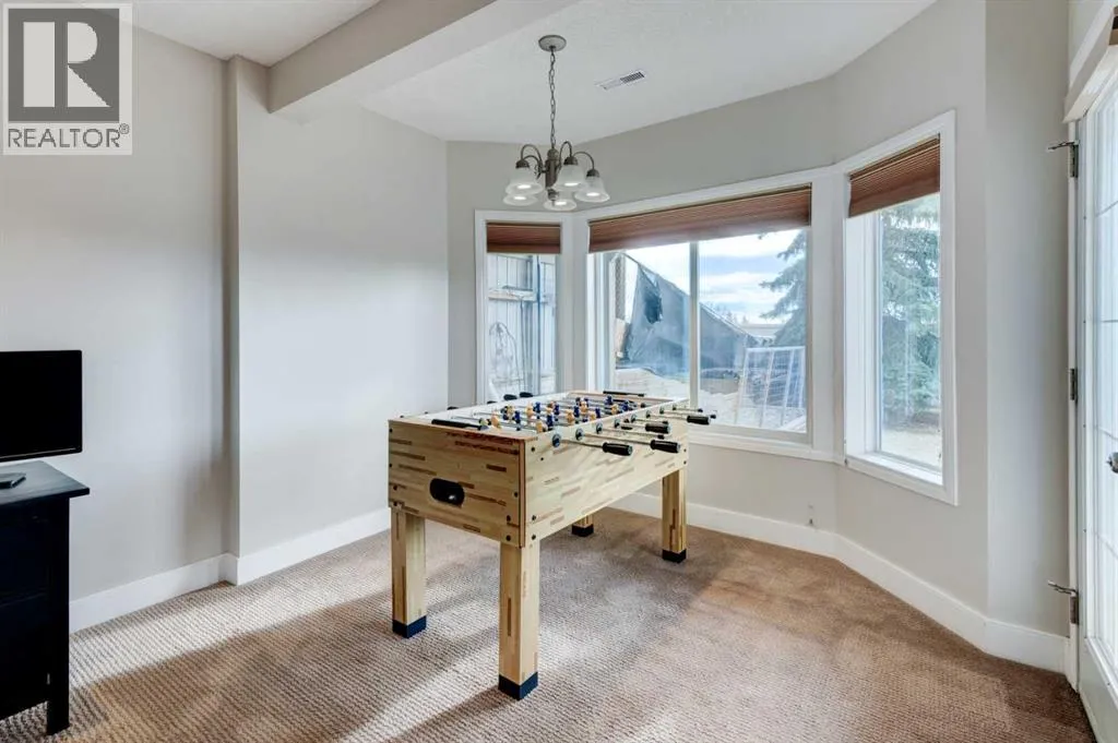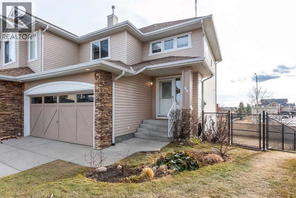 Welcome to 45 Cougarstone Place SWâan impeccably maintained, south-facing walk-out villa tucked into a quiet cul-de-sac in desirable Cougar Ridge. This rare semi-detached home with no condo fees offers 2,200 sq. ft. of total living space on a large pie-shaped lot with mountain views, combining elegance, privacy, and modern convenience.From the moment you arrive, pride of ownership shines through. Charming curb appeal, updated exterior finishes, and beautifully landscaped grounds set the stage for the bright, thoughtfully designed interior. The main floor features an inviting open-concept layout with fresh designer paint, upgraded electrical fixtures, and abundant natural light. The spacious living and dining areas flow into a generous kitchen equipped with brand-new matching stainless-steel appliances, ample cabinetry, and a functional breakfast bar. Step onto your 268 sq. ft. south-facing deckâideal for morning coffee, afternoon barbecues, or taking in Calgaryâs spectacular Rocky Mountain sunsets. Upstairs, discover three well-sized bedrooms and two full bathrooms, including a serene primary suite with a walk-in closet and a beautifully appointed ensuite offering dual sinks, a corner jetted tub, and a separate glass shower. A convenient laundry closet with extra shelving completes the upper level. The fully finished walk-out basement extends your living space with 9-foot ceilings, large windows, and a cozy media room featuring a 110-inch retractable projection screen. A built-in wet bar and half bath make this the perfect entertainment hub or movie-night retreat. A versatile additional room provides options for an office, hobby space, or storage, complementing the shelving in the furnace room. Walk out to a 283 sq. ft. private patio and a fenced backyard surrounded by mature trees and backed by a sound wall for exceptional privacy. Additional highlights include a new hot water tank, newer washer and dryer, extensive Cat5e and coaxial wiring to every room, and a double-attached insulated garage. The expansive pie-shaped lot offers space for gardening, pets, or playâan uncommon luxury in villa-style homes. Situated near top-rated schools and within walking distance to West District shops and amenities, WinSport/COP, Westside Recreation Centre, and with easy access to downtown or the mountains, this location truly has it all. Flexible possession available as early as December 22, 2025. Experience the best of Cougar Ridge livingâmodern upgrades, functional design, and the perfect blend of privacy and accessibility. (id:27476)