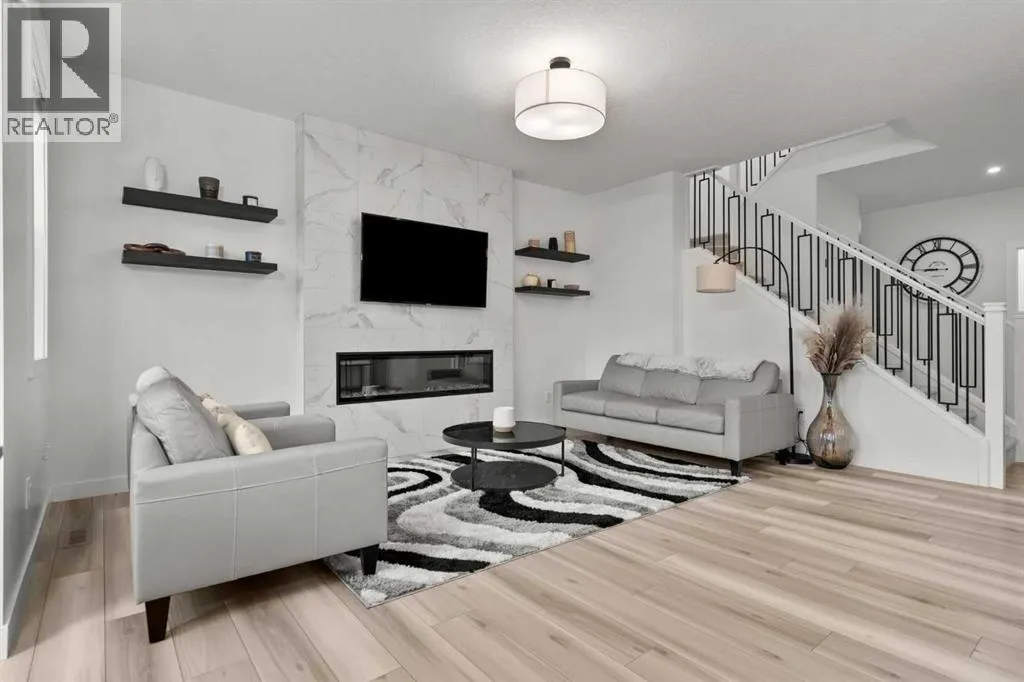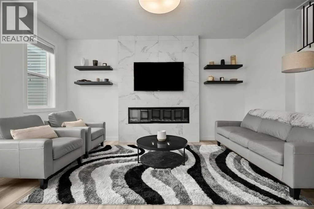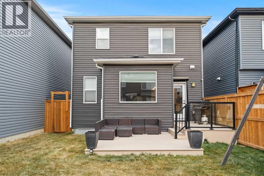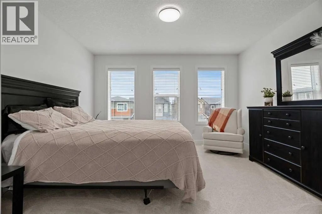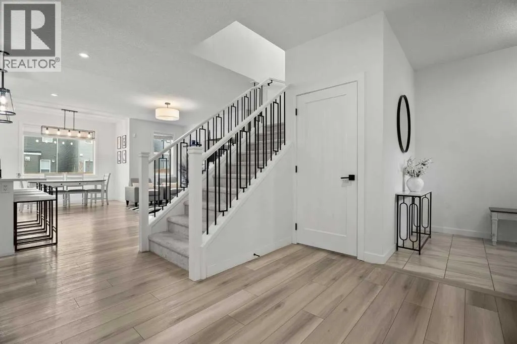 Welcome to this beautifully upgraded and fully developed detached home in the highly desirable community of Carrington NWâoffering over 2,000 sq. ft. of thoughtfully designed living space, modern finishes, and exceptional convenience. Step inside to a bright and inviting main floor featuring large windows, luxury vinyl plank flooring, sleek metal railings, black hardware, and upgraded interior doors. The spacious living room is highlighted by a stylish modern fireplace and plenty of natural light, creating a warm and elegant atmosphere. The gourmet kitchen is a true centerpiece, complete with quartz countertops, a gas range, hood fan, wine fridge, stainless steel appliances, modern pendant lighting, and a cozy dining area with open views. Enjoy year-round comfort A/C , along with included window coverings. Upstairs, youâll find three generously sized bedrooms, including a relaxing primary suite with a contemporary ensuite. The convenience of upper-level laundry adds to the homeâs practical design. The fully developed basement offers an additional two big rooms and full bathroom. Outside, the large and private backyard features a large deck, ideal for summer BBQs, entertaining, or simply unwinding at the end of the day. A double attached garage and fully fenced, lot add even more value for families. Carrington is one of Calgaryâs fastest-growing and most sought-after northwest communities, offering quick access to Stoney Trail, Centre Street, Deerfoot, Carrington Plaza, Evanston, and Creekside shops. Enjoy walking paths, storm ponds, playgrounds, a skate park, basketball courts, public art installations, green spaces, and the upcoming Greenway Plaza, future school sites, business district, and Green Line LRT extensionâmaking this a smart long-term investment. Move-in ready and designed for both luxury and comfort, this home delivers modern living in a vibrant, family-friendly neighborhood. Book your private showing today and make this exceptional property your new r etreat! (id:27476)
