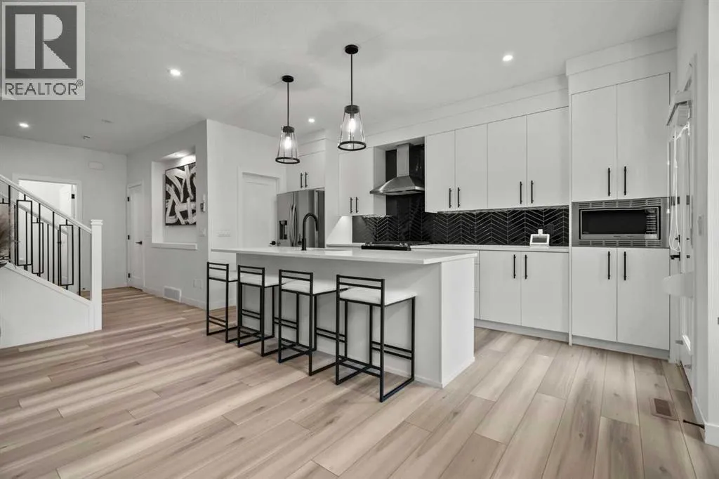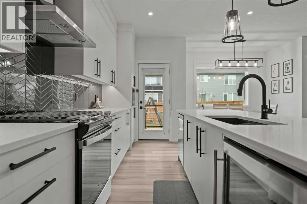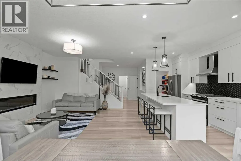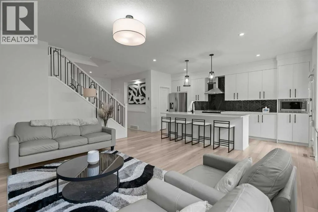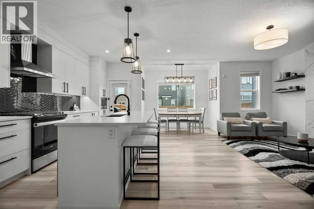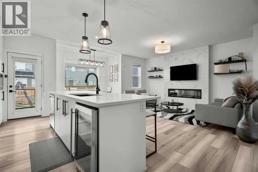 Welcome to this beautifully upgraded and fully developed detached home in the highly desirable community of Carrington NWâoffering over 2,000 sq. ft. of thoughtfully designed living space, modern finishes, and exceptional convenience. Step inside to a bright and inviting main floor featuring large windows, luxury vinyl plank flooring, sleek metal railings, black hardware, and upgraded interior doors. The spacious living room is highlighted by a stylish modern fireplace and plenty of natural light, creating a warm and elegant atmosphere. The gourmet kitchen is a true centerpiece, complete with quartz countertops, a gas range, hood fan, wine fridge, stainless steel appliances, modern pendant lighting, and a cozy dining area with open views. Enjoy year-round comfort A/C , along with included window coverings. Upstairs, youâll find three generously sized bedrooms, including a relaxing primary suite with a contemporary ensuite. The convenience of upper-level laundry adds to the homeâs practical design. The fully developed basement offers an additional two big rooms and full bathroom. Outside, the large and private backyard features a large deck, ideal for summer BBQs, entertaining, or simply unwinding at the end of the day. A double attached garage and fully fenced, lot add even more value for families. Carrington is one of Calgaryâs fastest-growing and most sought-after northwest communities, offering quick access to Stoney Trail, Centre Street, Deerfoot, Carrington Plaza, Evanston, and Creekside shops. Enjoy walking paths, storm ponds, playgrounds, a skate park, basketball courts, public art installations, green spaces, and the upcoming Greenway Plaza, future school sites, business district, and Green Line LRT extensionâmaking this a smart long-term investment. Move-in ready and designed for both luxury and comfort, this home delivers modern living in a vibrant, family-friendly neighborhood. Book your private showing today and make this exceptional property your new r etreat! (id:27476)