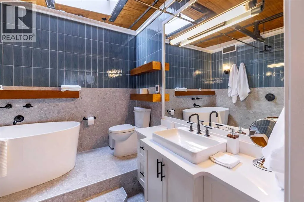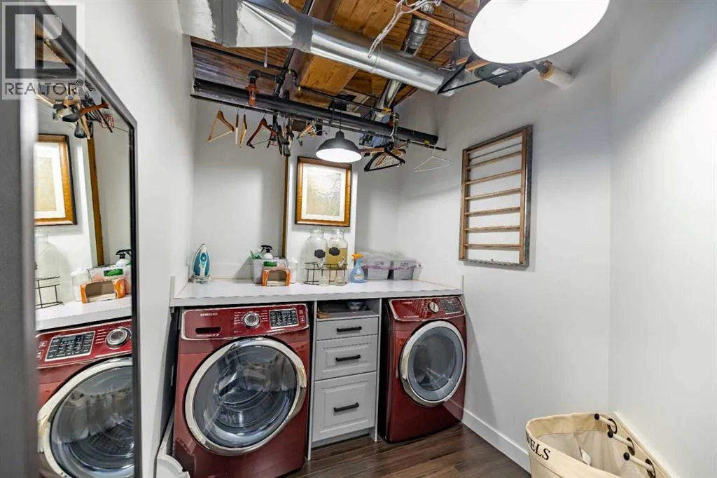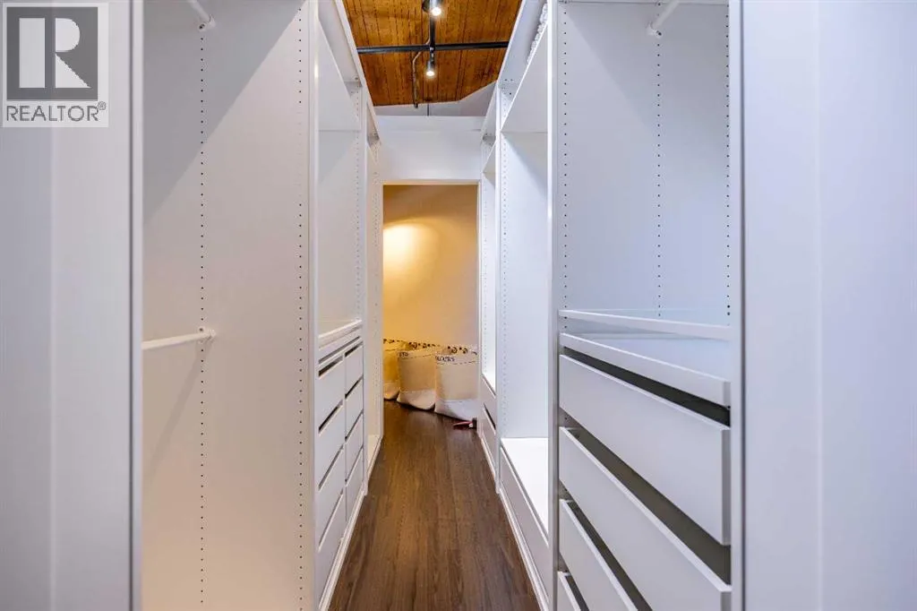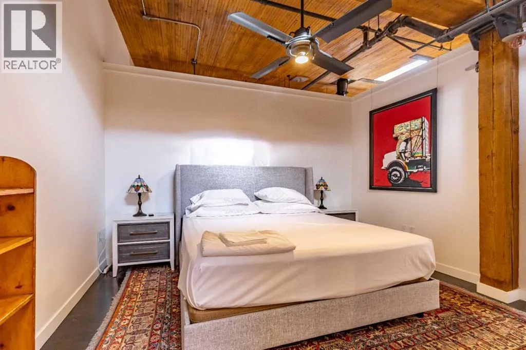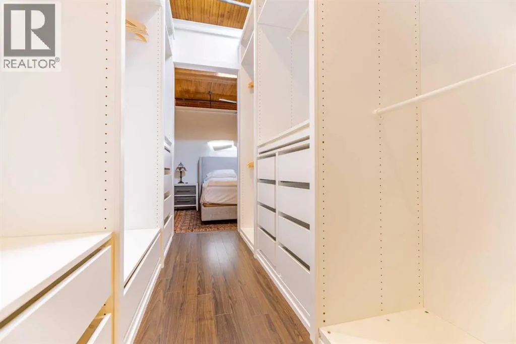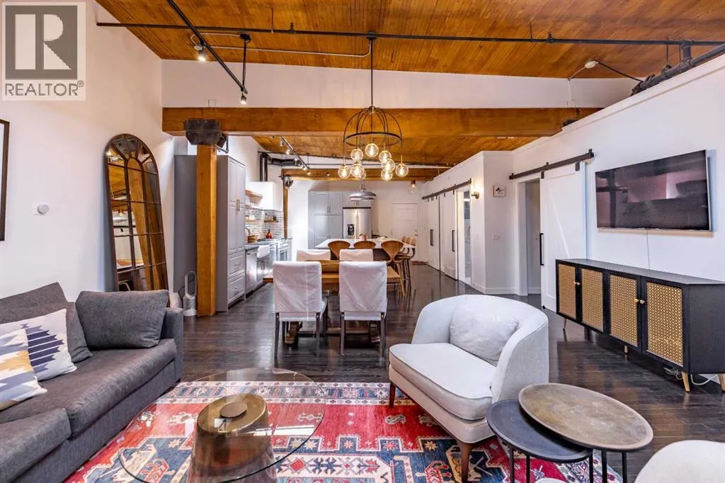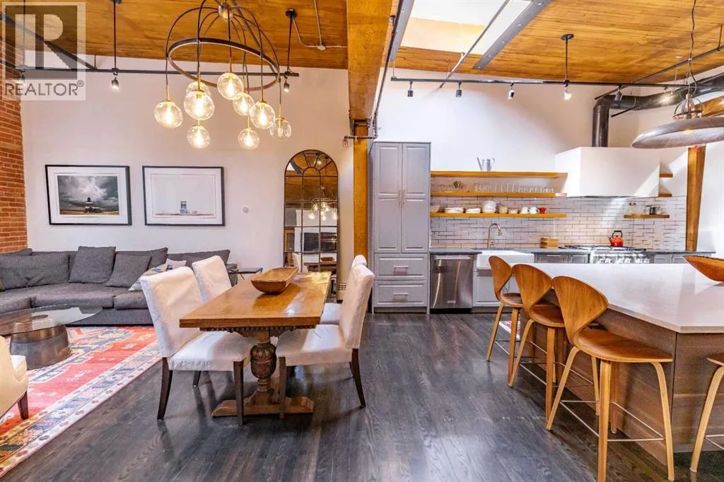 within the storied walls of the Historic Hudson, this extraordinary loft penthouse is where century-old character meets exquisite modern luxury. Built in 1909 and reborn for the discerning urban dweller, this residence is a testament to timeless craftsmanship and visionary design. Sunlight pours through skylights that crown soaring ceilings, illuminating a space that feels both expansive and intimate. Every detail has been curated with careâbut the heart of this home is its unforgettable chefâs kitchen. A monumental island commands attention, inviting gatherings, creativity, and conversation. With high-end appliances and a 6-burner gas stove, itâs a culinary sanctuary worthy of your finest creations. The living area flows gracefully toward a serene, enclosed primary bedroomâa rare luxury in a loft-style home. Beyond the bedroom lies a remarkable and unexpected indulgence: a spacious custom walk-through closet, designed with tailored storage and thoughtful organization. Continue through and youâll discover a full-size laundry room, beautifully integrated and exceptionally functional. This thoughtful sequenceâbedroom to boutique-style closet to dedicated laundryâcreates a private, elevated retreat rarely seen in loft living. The spa-level bathroom is equally spectacular, featuring a sculptural Victoria + Albert tub, heated floors, and a double shower enclosed in crystal-clear glass. Rich oak hardwood floors, a double-sided fireplace, and bespoke built-ins enhance the homeâs warmth and sophistication. The elegant den, complete with custom cabinetry and a concealed Murphy bed, offers versatility for guests or an inspiring workspace. Located in Calgaryâs vibrant Beltline, this home places you moments from world-class dining, boutique shopping, and cultural experiences. With titled underground parking and the exclusivity of a low-traffic, mixed-use heritage building, this is urban living at its most refined. A rare offering. A historic treasure. A loft unlike any other in the city. (id:27476)