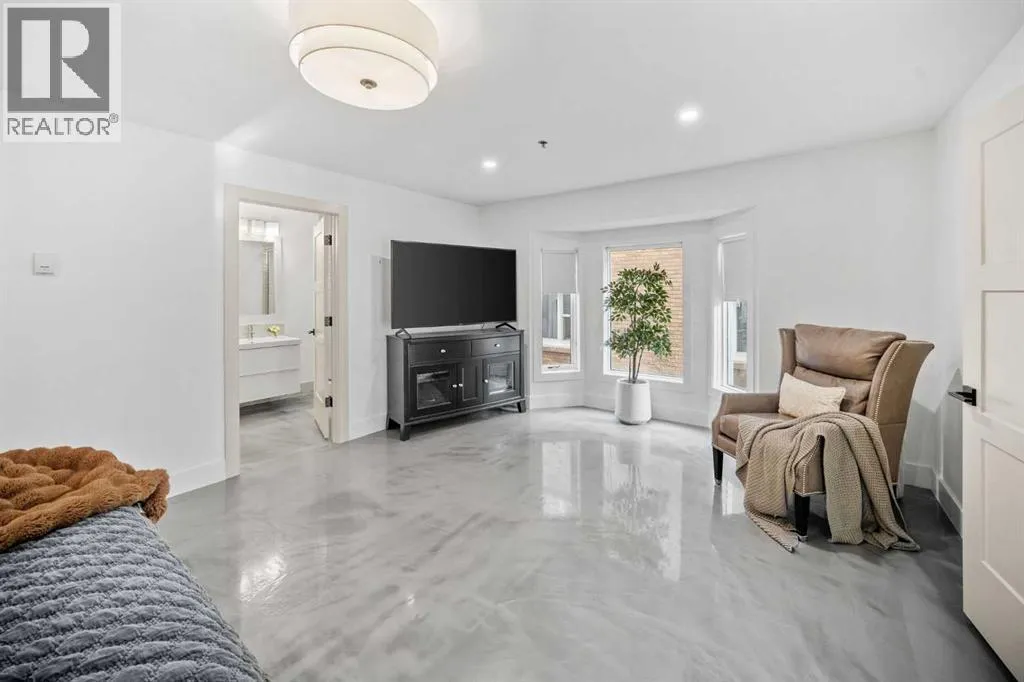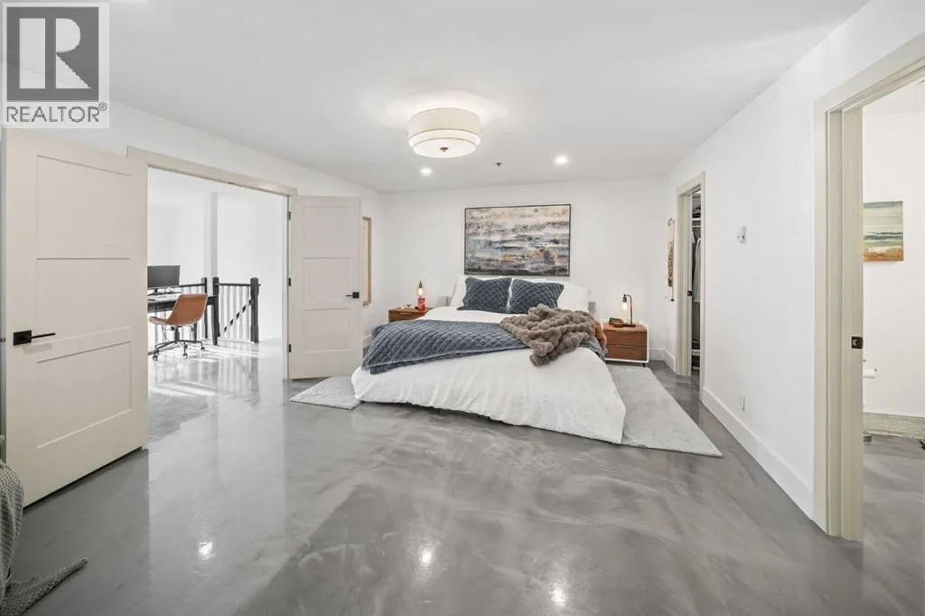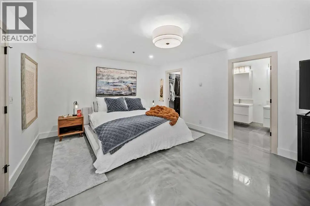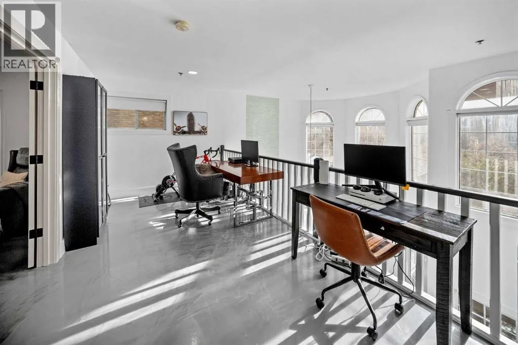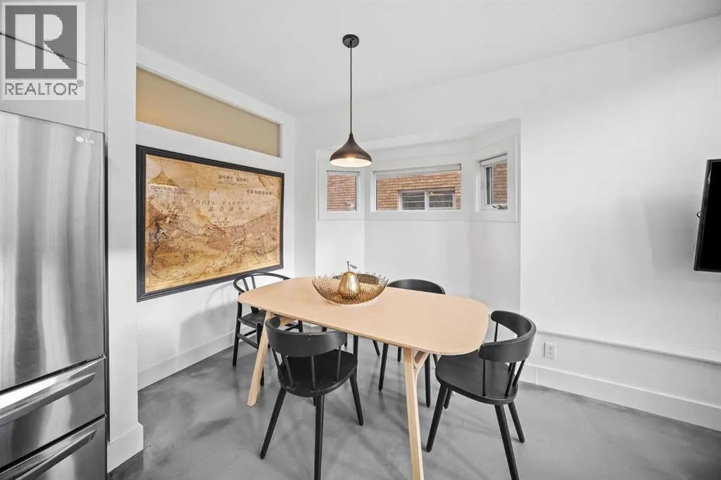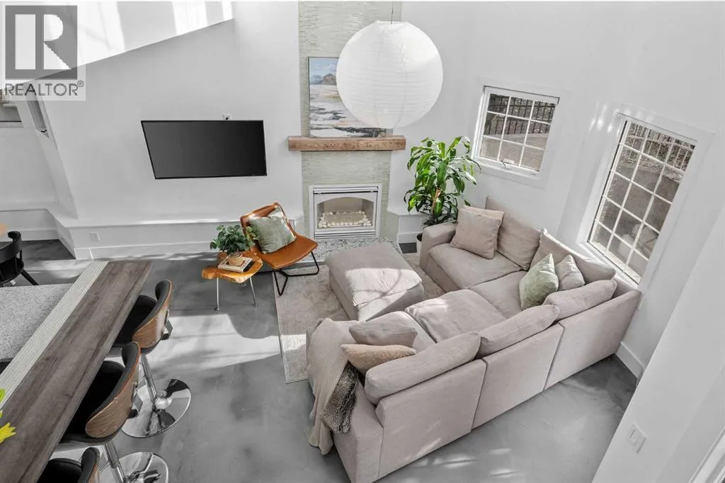 Welcome to a rare loft style sanctuary in Lower Mount Royal where soaring 18 foot ceilings, beautiful updates, and a walkable inner city location create an unforgettable living experience. From the moment you step inside you are greeted with newly updated doors and knobs that bring a fresh modern feel. The entry opens into the main floor living space with heated concrete floors throughout that keep the home warm and cozy through the colder months.The kitchen features sleek stainless steel appliances, ample prep space, and a new breakfast bar that offers a casual spot for everyday meals or cocktails before heading out to the boutiques, dining, lounges, and fitness studios just steps from your door. Beside the kitchen is the dining area which now features a newly constructed wall with a transom window. Previously this space had doors leading into the flex bedroom, but the new wall provides stronger separation, privacy, and functionality while still allowing natural light to flow through. It creates a more defined dining experience and elevates the entire main floor layout.The living room is bright and inviting with large south facing windows that fill the room with sunlight and open onto a private patio perfect for quiet mornings or unwinding at the end of the day. A new custom mantle adds warmth and architectural interest that complements the modern loft style aesthetic.Heading upstairs the newly carpeted stairs add softness and sound reduction as you transition to the loft. This upper level is an impressive open flex space ideal for a home office, fitness area, reading lounge, or cozy retreat. An updated storage closet adds even more functionality for those who value thoughtful organization.The spacious primary suite sits just beyond the loft and feels calm and elevated with its updated ceiling and new pot lights that offer gentle, ambient illumination. This level also includes a generous walk in closet and a private ensuite with double sinks and a large sho wer, creating a relaxing space to begin and end each day.A second full bathroom on the main level makes hosting guests or accommodating roommates effortless. Added conveniences include in suite laundry, a heated underground stall with storage, and pet friendly living. With direct first floor access and no elevator required, coming and going is easy and efficient.Set in one of Calgaryâs most beloved inner city communities, this home offers tree lined streets, charming cafes, specialty studios, world class dining, and lively lounges all within a short stroll. This is urban loft living at its most effortless with space, style, comfort, and walkability in perfect harmony. (id:27476)