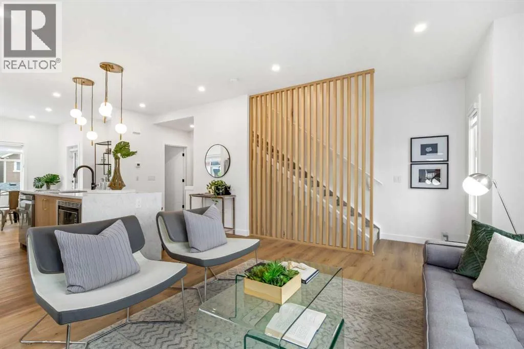 Built for lasting quality. With 1,417 sq ft, two balconies, 3 bedrooms and 3 baths, and the added benefits of being an end unit, this home delivers more natural light, extra privacy, and a layout that adapts to modern livingâbuilt to stand the test of time. Every Chelsea is constructed on a 4â THICK SLAB USING SULPHATE-RESISTANT CONCRETE, a superior detail that helps prevent deterioration and adds decades of durability. The exterior is finished with a BRICK CLADDING SYSTEM WITH RAIN SCREEN BEHIND HARDIE SIDING for exceptional moisture defense, while R12 INSULATED GARAGE DOORS WITH BELT DRIVE, WIFI, AND LIVE-VIEW CAMERA add convenience, security, and peace of mind. Inside, youâre welcomed by 10â MAIN FLOOR CEILINGS AND 9â UPPER FLOOR CEILINGS, paired with BLACK LAMINATED PVC DOUBLE-GLAZED WINDOWS that flood the home with light. An efficient U-SHAPED KITCHEN WITH PANTRY CLOSET anchors the main floor, while LUXURY VINYL PLANK FLOORING runs throughout for both style and long-wearing durability. Upstairs, three bedrooms create flexibility for families or guests, while the primary suite opens to its own private balcony retreat. Bathrooms are finished with QUARTZ COUNTERS, FULL-HEIGHT CERAMIC TILE SURROUNDS, AND 24x12â TILE FLOORING. Smart details include LINEN AND WASHER + DRYER CLOSETS, AUTOMATED ZEBRA BLINDS, VINYL DECKING WITH ALUMINUM RAIL + GLASS PANELS, AND FULL LANDSCAPING. The kitchen showcases QUARTZ COUNTERTOPS, FULL-HEIGHT CERAMIC TILE BACKSPLASH, TALL UPPER CABINETS WITH UNDER-CABINET VALANCE LIGHTING, AND A PREMIUM SAMSUNG STAINLESS STEEL APPLIANCE PACKAGEâincluding a FRENCH DOOR FRIDGE WITH BUILT-IN WATER PITCHER and SELF-CLEANING SMOOTH-TOP RANGE. Set in Belvedereâone of Calgaryâs fastest-growing new communitiesâthe Chelsea is surrounded by parks, schools, and single-family homes that add to its long-term value. Just 15â20 minutes to downtown, and with groceries, dining, and entertainment steps away. Early opportunities like this donât come often. LIMITED T IME PROMO: *Free Condo Fees For The First Year* *Titled Parking Stall For $1.00 (value $5000.00)* (id:27476)