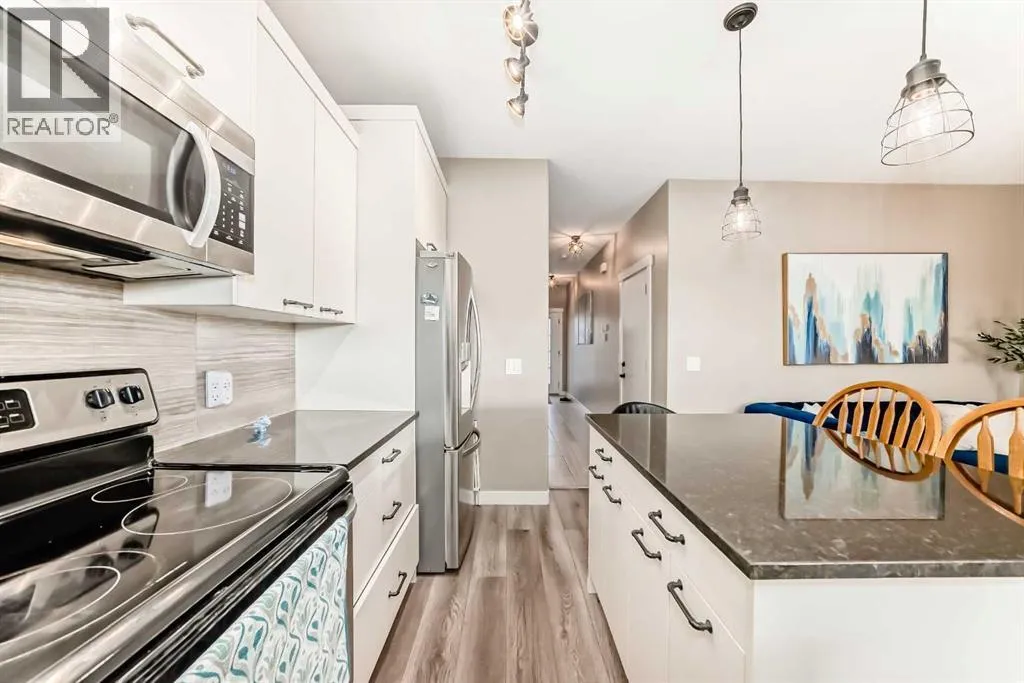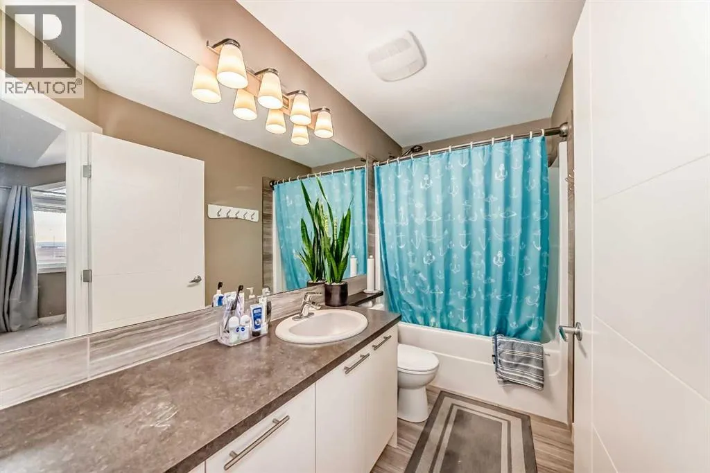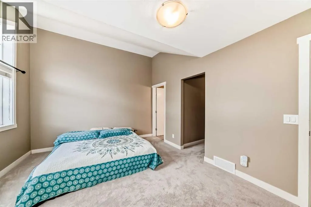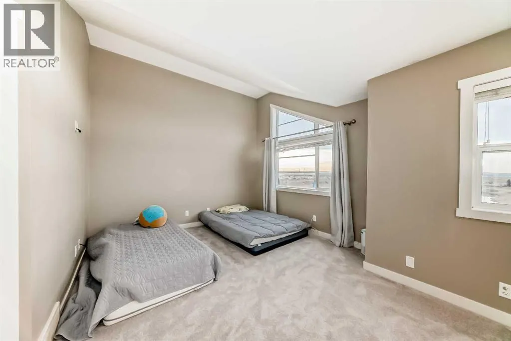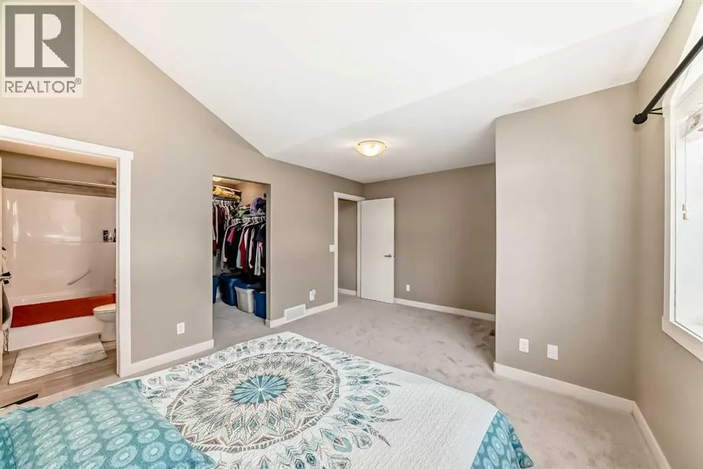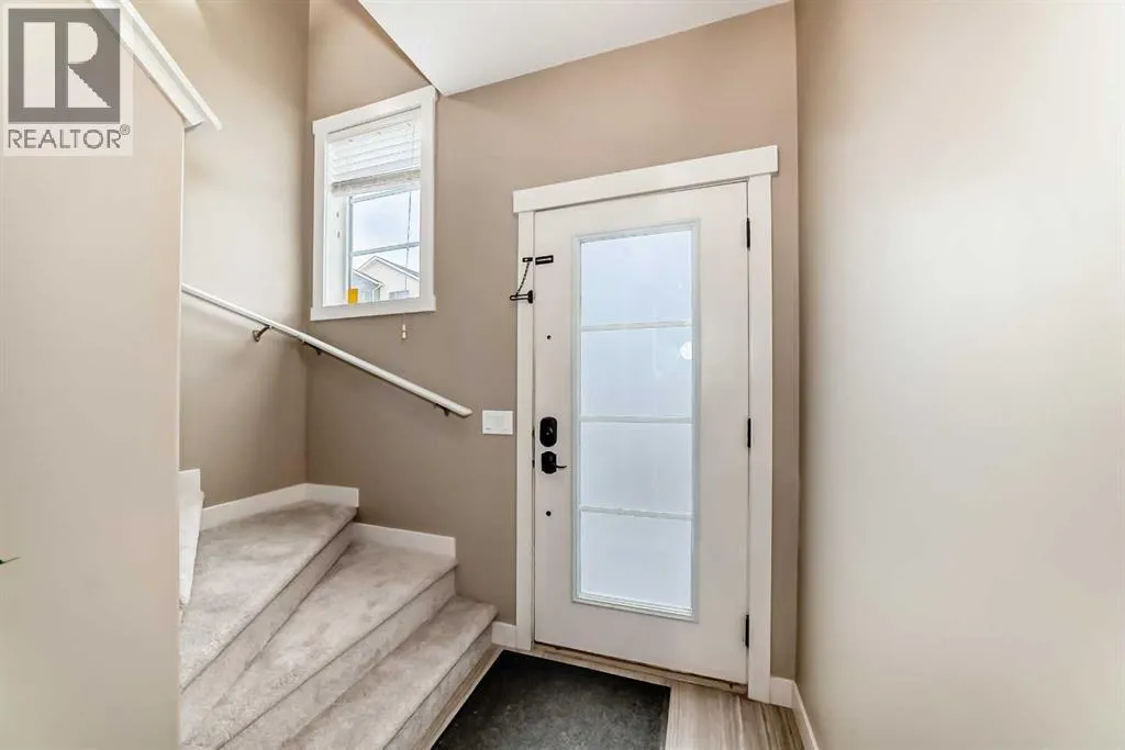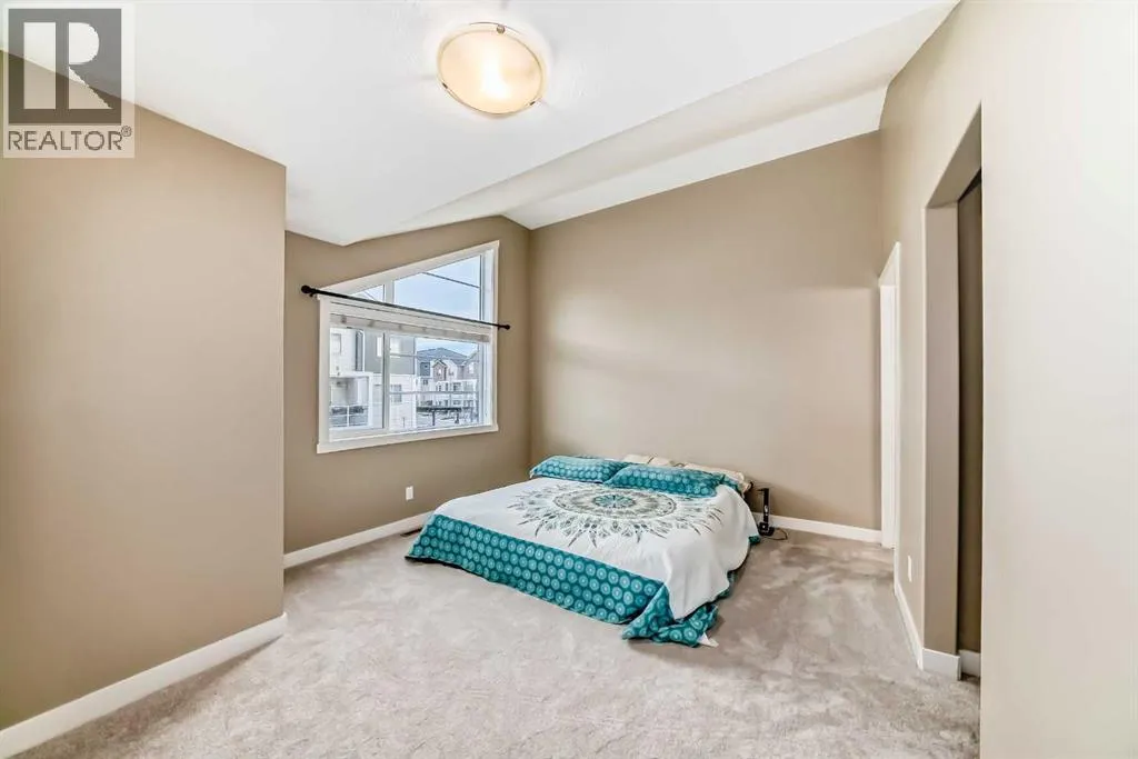 NEW CARPETS UPPER FLOOR, NEW LAMINATE FLOORING LIVING ROOM, NEW PAINT, NEW HOT WATER TANK. Experience modern living in this beautifully maintained home located in the vibrant community of Redstone. This property offers a bright, open-concept layout with stylish contemporary finishes and spacious living areas designed for both comfort and functionality and just freshly painted. The main floor offers an open concept with new living room laminate flooring and spacious balcony great for relaxing overlooking the pond and mountain view with natural lights, Kitchen offers lots of storage with white crisp cabinetry and newer stainless steel appliances with granite counter tops and kitchen island and has a spacious powder room. Head upstairs, carpet on stairs going upstairs, hallways and bedrooms were just replaced, this upper level offers a very spacious master bedroom with vaulted ceiling a walk in closet and an en-suite 4 piece bathroom , right across is another bedroom with vaulted ceiling over looking the pond and has easy access to another full bathroom. Laundry is conveniently located on this upper floor for your convenience. Enjoy your fully finished walk out basement with a large window and plenty of natural lights and 3rd full bathroom. The hot water tank was replaced in 2025 and the furnace was serviced in 2024. This house is moved in ready . Easy access to Stoney Trail, Métis Trail, Deerfoot Trail, the airport, and nearby parks and pathways. The backyard opens onto a stunning view of Redstone View of the mountains complete with a scenic bike/walk path, perfect for outdoor enthusiasts. Whether youâre a first-time buyer, growing family, or investor, this home offers exceptional value in a thriving neighborhood. A must-see! Book your showing today! (id:27476)