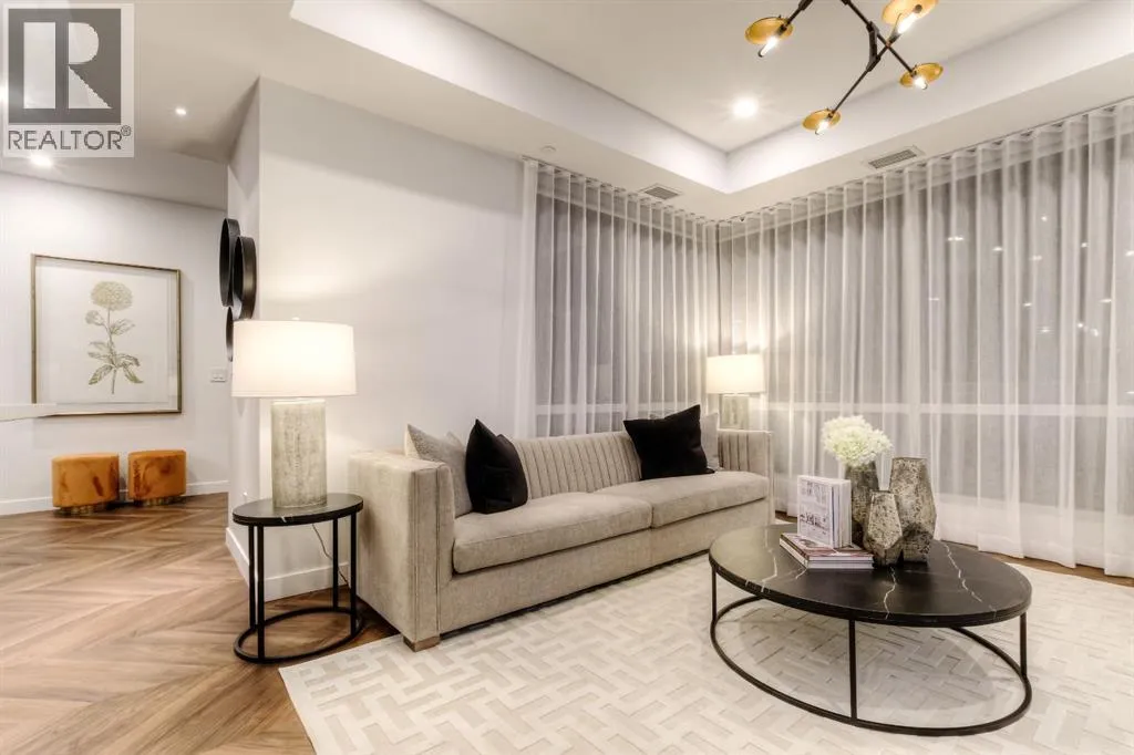 Located in the master-planned community of West District, Gateway offers an exceptional standard of living. This meticulously designed 2-level Brownstone is a perfect blend of modern elegance and sophisticated craftsmanship, featuring 3 Bedrooms, 3 Bathrooms, and a versatile main floor Den/Bedroom. It also includes 2 titled underground parking stalls, offering both convenience and security. From top to bottom, this home is crafted with the highest quality finishes and attention to detail. Inside, youâll find luxurious touches like air conditioning, Chevron luxury wide-plank flooring, and custom penny round mosaic tiles in every bathroom. LED pot lights illuminate the space, highlighting the elegantly painted ceilings throughout. The chef-inspired kitchen is a true centre piece, boasting a super matte finish cabinet with brushed gold hardware, high-end appliances, and exquisite design. It includes a gas cooktop, wall oven, an integrated 36" Fisher & Paykel fridge, panelled dishwasher, and soft-close custom cabinetry. The under-cabinet lighting and stunning quartz countertops and backsplash add to the visual appeal, making this kitchen a space both functional and beautiful. Other thoughtful features include a washer and dryer, custom window coverings for the floor-to-ceiling windows, and direct access to the private patio. The Primary Suite offers its own private balcony, providing the perfect retreat. Experience unparalleled luxury and comfort at Gateway. Stay tuned for an upcoming photo gallery that will showcase the full beauty of this one-of-a-kind residence. This is more than just a home â itâs a lifestyle! (id:27476)