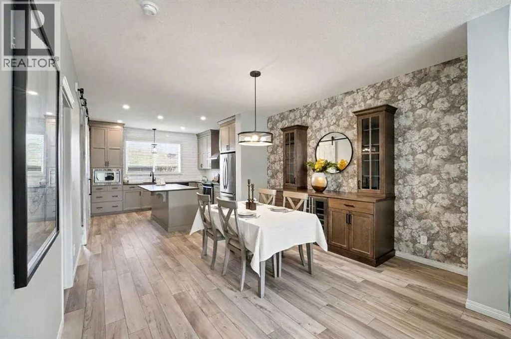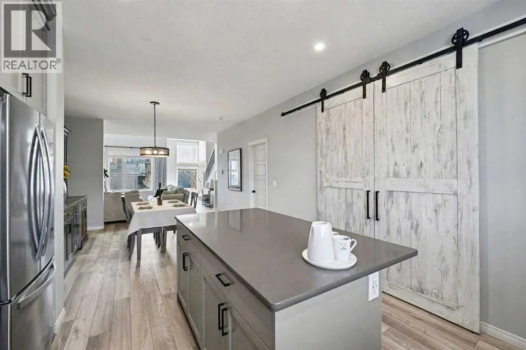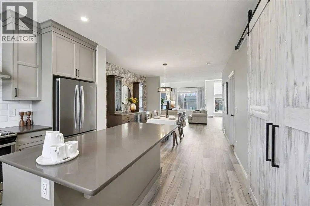 For more information, please click the "More Information" button. Step into this exceptional former Morrison Show Home, where modern design and everyday comfort meet in perfect harmony. Every corner of this elegant two-storey residence reflects craftsmanship, innovation, and more than $100,000 in luxurious upgrades. From the moment you walk through the door, youâll feel the thoughtful attention to detail that defines this home. The main floor features rich hardwood flooring, 9-foot ceilings, and an airy open-concept layout designed for effortless living and entertaining. The chef-inspired kitchen boasts gleaming quartz countertops, high-end stainless steel appliances, and a custom-built China cabinet that blends beauty with functionality. Upstairs, youâll find three spacious bedrooms, including a serene primary suite complete with a 4-piece spa-style ensuite and generous walk-in closet. The fully finished lower level adds even more versatility with a fourth bedroom, a cozy rec room, a wet bar, and a full bathroomâperfect for guests or family gatherings. Every detail has been carefully curated to enhance daily living: a pet-washing station at the rear entry for your furry friends, gemstone exterior lighting, underground sprinklers, and professionally landscaped surroundings that invite relaxation and pride of ownership. This home sits in the heart of Rockland Park, Calgaryâs most exciting new communityâwhere lifestyle and convenience converge. Youâll be just steps away from the community center, lakes, parks, outdoor swimming pool, and all other amenities that promise a vibrant and connected neighborhood experience. With room for a double detached garage, modern finishes throughout, and a design that perfectly balances elegance and warmth, this property stands as a true showpiece in one of Calgaryâs most desirable locations. Donât miss your chance to make this extraordinary home yoursâwhere every detail is designed for living beautifully. (id:27476)