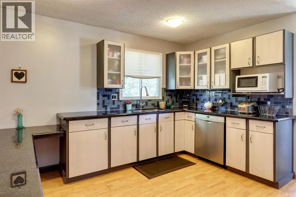 Welcome to this beautiful 4-bedroom, 3-bathroom, 4-level split in Shawnessyâjust steps from the Shawnessy LRT station! This inviting home features a functional layout with a bright kitchen, spacious living room, and dining area all on the main floor. Upstairs, youâll find the very large (21'x10'), primary suite complete with a spacious walk-in closet and 3-piece ensuite, along with a second bedroom and a 4-piece main bathroom. The third level offers a cozy family room with a wood-burning fireplace, a third bedroom, a 3-piece bathroom/ensuite, and convenient walkout access to the backyard. The basement level includes a fourth bedroom, plus storage, mechanical, and laundry area. The fenced and landscaped backyard includes a large double detached garage. Recent upgrades include: new fence and front porch, new furnace (2023), hot water tank (2017), roof (2012), and carpets (2013). (id:27476)