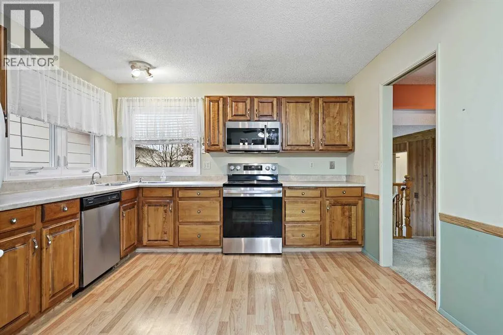 Nestled on a quiet tree lined street on the ridge side of Lake Sundance, this two-storey split property is ready for a new family to call it their own. With over 1800 square feet, four bedrooms and two and half bathrooms and an unfinished basement there is plenty of room here to utilize. You are welcomed into the home with a spacious entrance and your eyes are drawn to the stunning vaulted wood ceilings and large windows to the front street with the living and dining area. A spacious eat-in kitchen overlooks the south facing backyard. A sunken family room with a wood burning log lighter fireplace and patio doors to the yard is where much of your time will be spent. The main floor continues to the fourth bedroom/office, a laundry room and a two-piece bathroom in addition to a side entrance. Upstairs you have three additional bedrooms including the spacious primary with full three-piece ensuite bath and his and hers closets. The basement is unfinished but offers about 600 square feet of future development space complete with two windows in addition to a large utility and storage area. The back yard has a large deck, patios and gardens as well as a 22âx24â detached garage accessed by a paved laneway. Sundance is a fantastic community with the Community Lake Recreation facility in addition to the access to Fish Creek Park and its miles and miles of recreation opportunities right at the end of your street. All public schools right through high school are contained within the neighborhood. Every amenity you can imagine is close-by. The train line is very close by and there is access to major roadways for great in and out access. This one has so much to offer and is ready for you now. Come and see for yourself today! (id:27476)