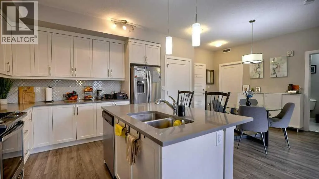 Top-floor 2-bedroom, 2-bathroom unit in the highly sought-after Auburn Bay Lake Community â a rare opportunity to enjoy true privacy with no neighbours above you. This bright and inviting home features a large east-facing balcony that extends your outdoor seasons and fills the interior with morning light. From the moment you walk in, youâll appreciate the 9 ft ceilings and abundant natural light that create a spacious, airy atmosphere. The open-concept layout easily accommodates a full dining table and is ideal for both everyday living and entertaining. The kitchen is a chefâs delight, featuring gleaming white cabinetry, stainless steel appliances, stone countertops, a designer tile backsplash, and a generous island perfect for meal prep and casual dining. The primary bedroom is a serene retreat with a walk-in closet and a well-appointed ensuite offering dual sinks and an easy-access shower â ideal for those seeking comfort and convenience while downsizing. The second bedroom is impressively large and positioned on the opposite side of the unit, providing excellent privacy for guests or family members. A full second bathroom with a bathtub and in-suite laundry add to the functionality of this well-designed floor plan. Youâll love the security and convenience of underground heated parking and an additional storage locker. The buildingâs contemporary architecture and clean design enhance the overall appeal. As an Auburn Bay resident, youâll enjoy year-round lake access included through HOA fees. The lake offers swimming, fishing, paddleboarding, skating, and a wide range of adult and youth programs. Additional community amenities include tennis courts, picnic shelters, a gymnasium, and even a disc golf course. The location is exceptional â just one block from everyday essentials and fitness options in Auburn Station, and only minutes to Setonâs vibrant Gateway Retail District featuring restaurants, major retailers, Superstore, Cineplex VIP Cinemas, the South Health C ampus, YMCA, and the public library. Plus, youâll appreciate easy access to schools, public transit, and major routes such as 52nd Street, Stoney Trail, and Deerfoot Trail. The Auburn off-leash dog park is also just a short drive away.Donât miss your chance to own in this vibrant lake community. Book your private showing today and make this stunning top-floor home yours. (id:27476)