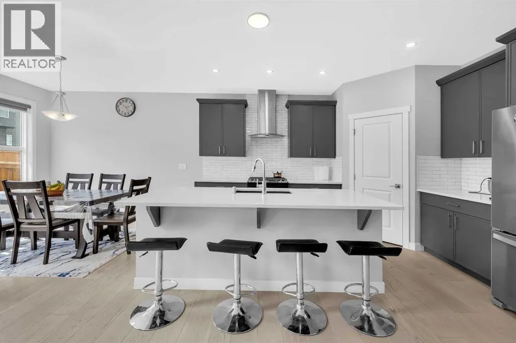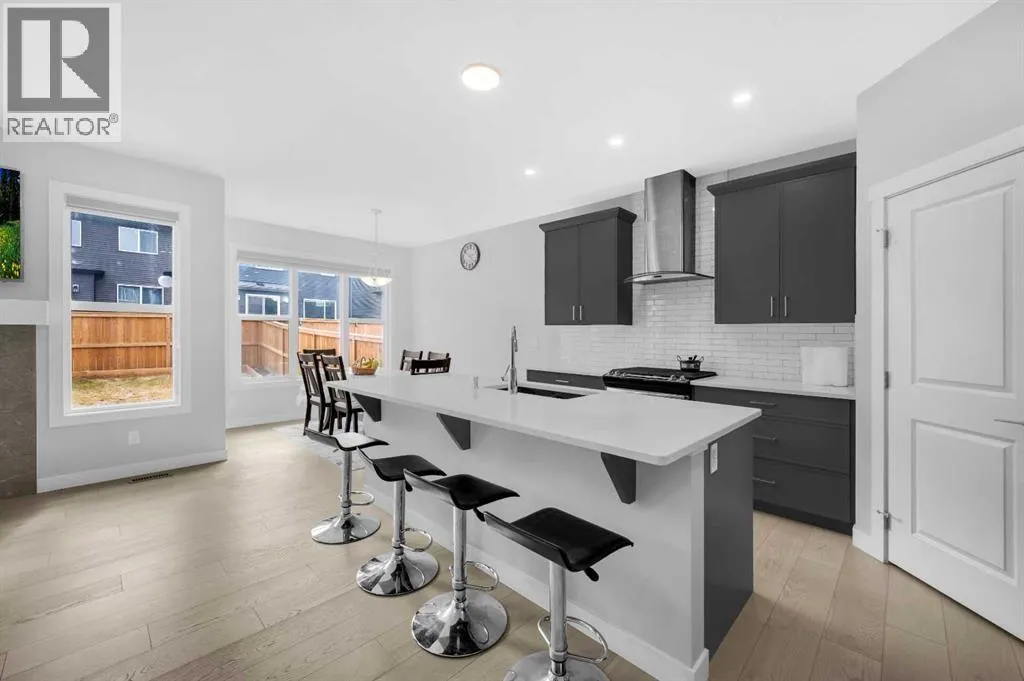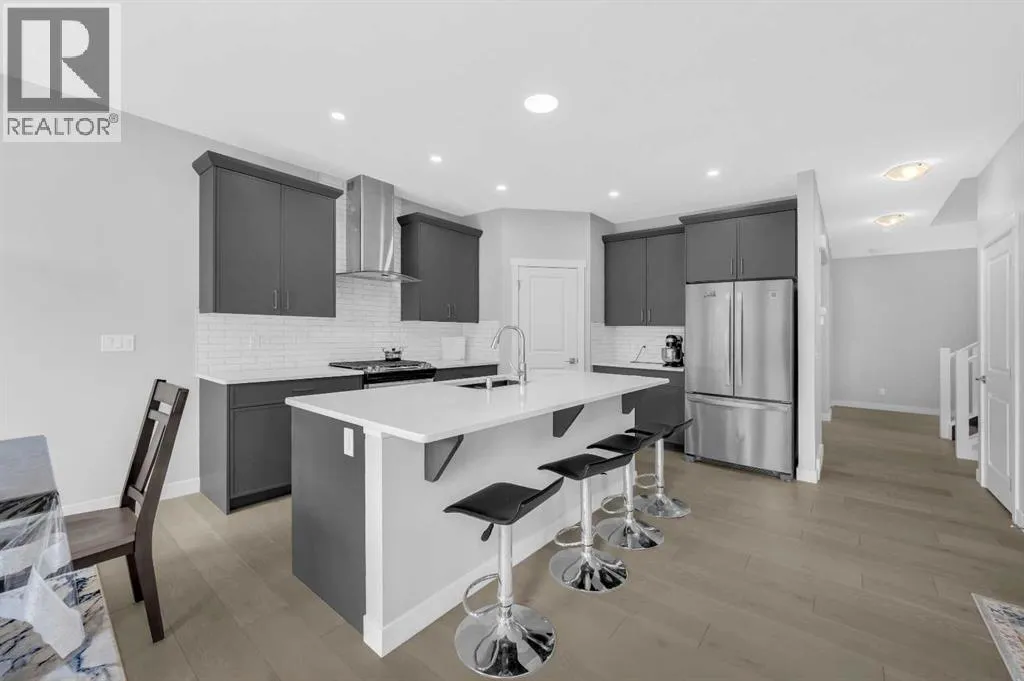 Welcome to 149 Belmont Villas SW, a beautifully appointed family home offering over 2,064 square feet of sophisticated living space. This stunning property boasts a modern and functional layout designed for contemporary living and entertaining. The main floor features a bright and open plan, seamlessly connecting the living, dining, and kitchen areas perfect for daily life and hosting guests. The spacious living room is filled with natural light, the dining area offers a perfect setting for family meals, and the modern kitchen is a chef's delight, equipped with a full suite of stainless steel appliances. A practical den and a convenient 2 piece bathroom complete this level, along with direct access to the oversized attached garage. Upstairs, the upper floor is a private retreat for the entire family. It features a generous primary bedroom with a luxurious 5-piece ensuite bathroom and a walk-in closet, providing a perfect sanctuary to unwind. Two additional well sized bedrooms, a second full 4-piece bathroom,a functional laundry room, and a spacious family room offer ample space for relaxation and comfort, ensuring everyone has their own place to recharge. The basement awaits your imagination with an existing separate entrance for future development. Nestled in the highly sought after community of Belmont, this home offers an exceptional lifestyle with unparalleled access to urban amenities and natural beauty. Families will appreciate the proximity to top rated schools, making the morning school run a breeze. The community is surrounded by numerous parks and playgrounds, providing endless opportunities for outdoor recreation and leisurely strolls. Golf enthusiasts will love being just moments away from pristine courses. Everyday conveniences are covered with shopping centers and retail options nearby, and excellent public transit access ensures easy commutes to downtown Calgary and beyond. This is more than just a house; it's a place to build a life. It combines mod ern elegance with practical family living in one of Calgary's most convenient and family-friendly neighborhoods. This is a must see property for those seeking space, style, and a fantastic community. (id:27476)