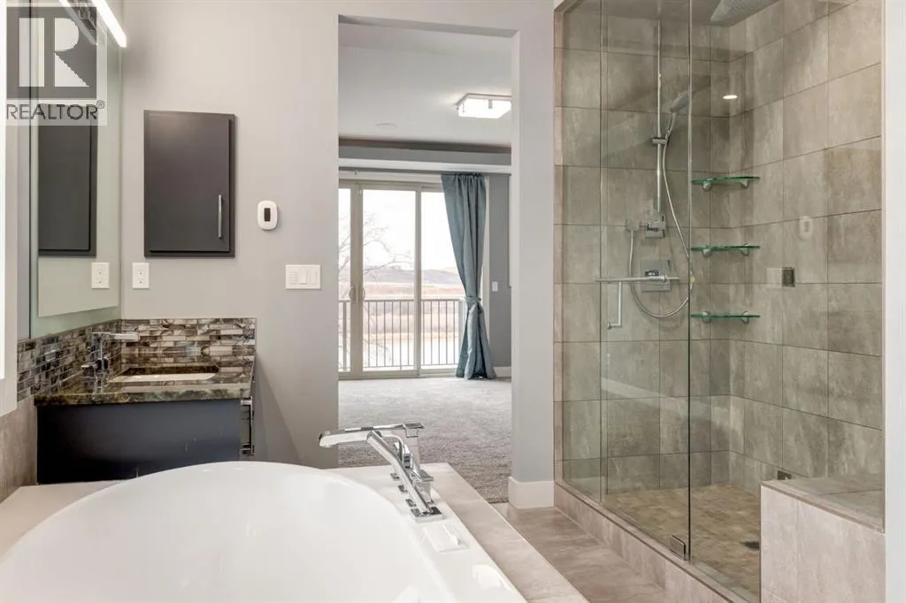 This beautifully refreshed 3,226 sq ft estate home is set on a quiet street in Riverstone of Cranston, offering a bright walkout basement, an oversized triple garage and nearly 4,700 sq ft of total finished space. Backing directly onto the community pathway system and natural reserve, the home enjoys a peaceful setting with easy access to the Bow River escarpment and surrounding green space.The main floor features 10 foot ceilings, expansive windows and an open layout ideal for both everyday living and entertaining. The kitchen includes a large island, full height cabinetry, stone counters, premium appliances, a spacious walk-in pantry and a functional spice kitchen. A dedicated office, full bathroom, dining area, living room and organized mudroom complete the level.Upstairs, each of the three bedrooms includes its own ensuite bathroom. The primary suite is generously sized, with a walk-in closet and a five piece ensuite. A large bonus room, additional flex space and upper laundry add extra convenience.The fully developed walkout basement provides a spacious recreation area, wet bar, fourth bedroom, full bathroom and excellent storage. From here, the yard connects directly to the pathway network for walking, biking and exploring the natural surroundings.The home has recently undergone a thoughtful interior refresh, offering a clean, bright and move-in ready environment for its next owners. Riverstone remains one of Calgaryâs most sought-after communities, known for its natural beauty, access to parks and pathways, and close proximity to amenities, schools and Century Hall.A refined home in an exceptional location, ready to welcome its next chapter. (id:27476)