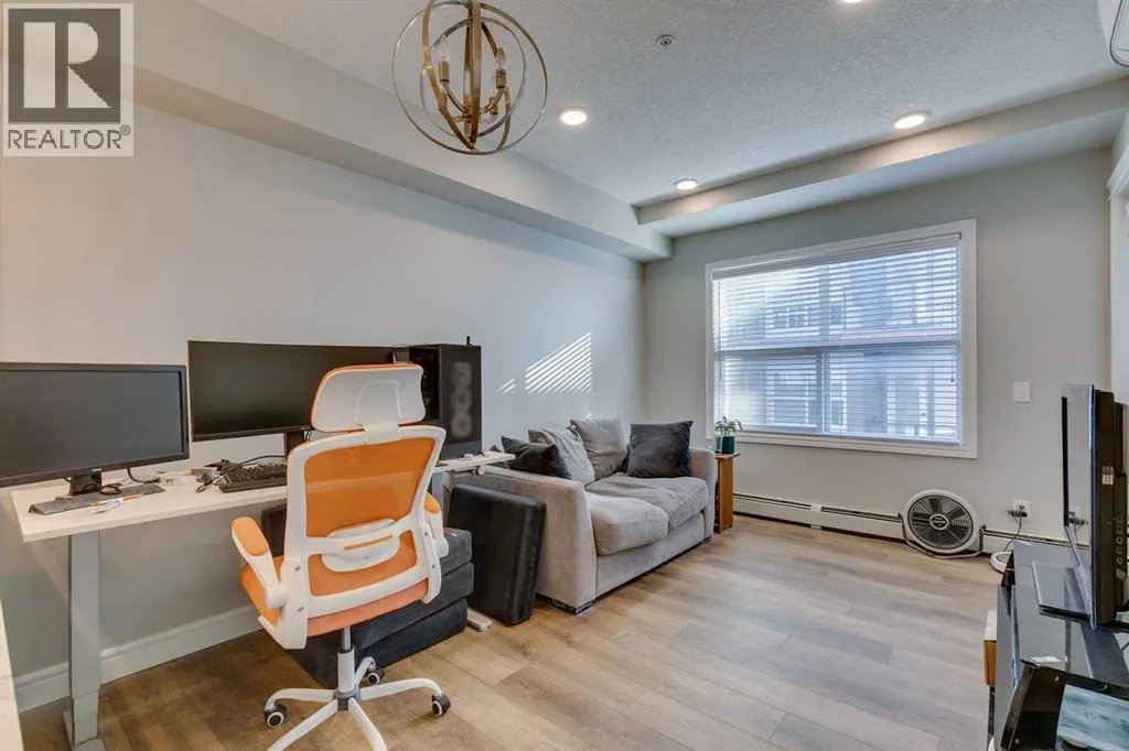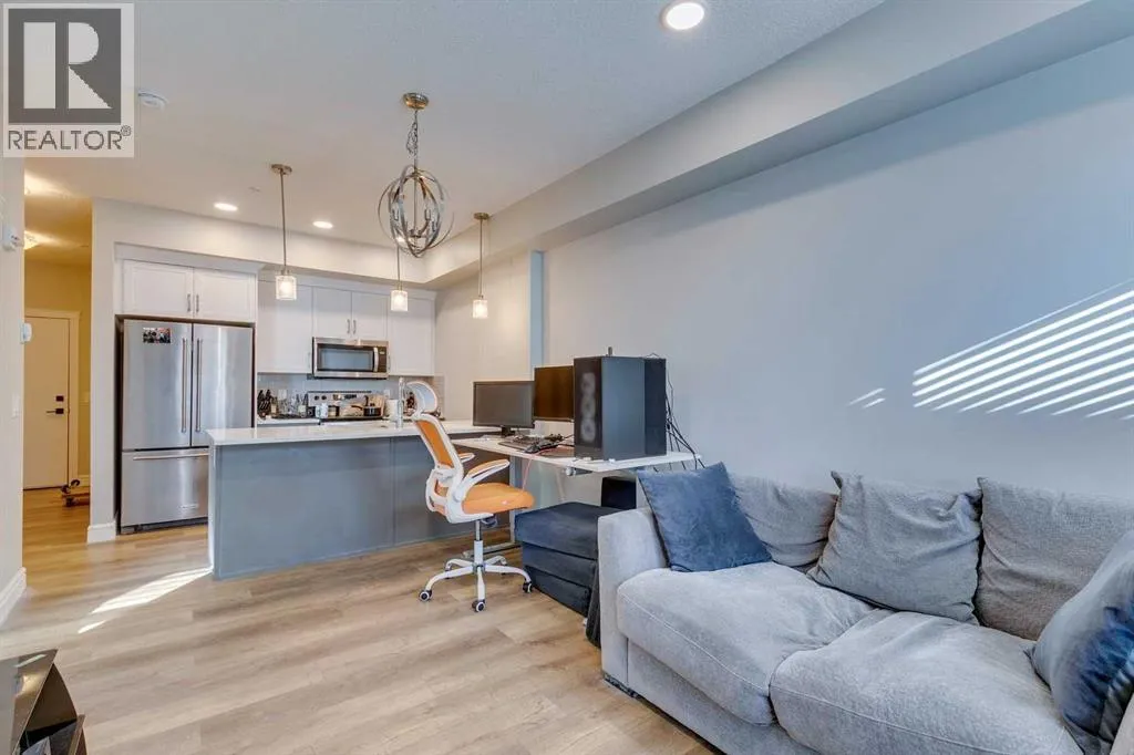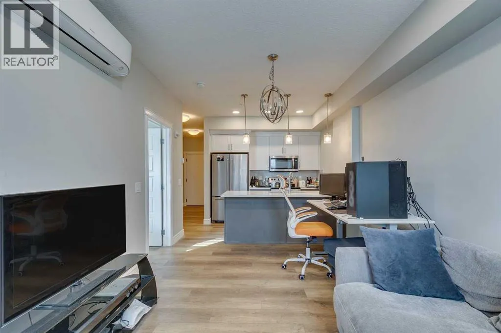Modern South-Facing Condo in Seton â Stylish, Bright & Move-In Ready - Welcome to your new home in Seton, one of Calgaryâs most vibrant and award-winning communities! This beautifully designed 1 Bedroom + Den, 1 Bathroom condo blends style, comfort, and convenience into one perfect package. Step inside and youâll be greeted by a bright open-concept layout with 9-foot ceilings and large windows that fill the space with natural light. The modern kitchen features quartz countertops, stainless steel appliances, and a spacious island perfect for entertaining or casual meals. The den offers a versatile workspace or reading nook, while the primary bedroom provides a peaceful retreat with plenty of closet space. The south-facing balcony invites you to soak in the sunshine and enjoy morning coffee or evening BBQs with a tranquil view. Youâll stay cool all summer with air conditioning, and enjoy the convenience of in-suite laundry, titled underground heated parking. Located just steps from the South Health Campus, Brookfield YMCA, and Setonâs urban district with restaurants, cafés, shops, and movie theatres â everything you need is right at your doorstep. (id:27476)