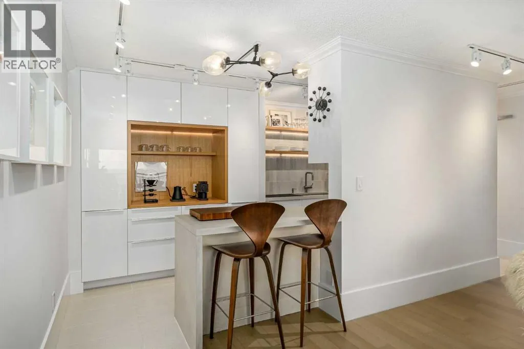 Step into a refined, modernized 2-bedroom, 1.5-bath home in a quiet 25+ community surrounded by mature green space. Nearly 1,000 sq ft of thoughtfully redesigned living offers a calm, contemporary feel with upgraded cabinetry, new appliances, gallery-style lighting, and a dedicated coffee bar. The layout is open and efficient, with two well-sized bedrooms, updated baths, durable new flooring, and convenient in-suite laundry. Located steps from transit, shopping, and everyday amenities, this move-in-ready residence delivers elevated design, comfort, and exceptional value in one of Acadiaâs most established neighbourhoods. (id:27476)