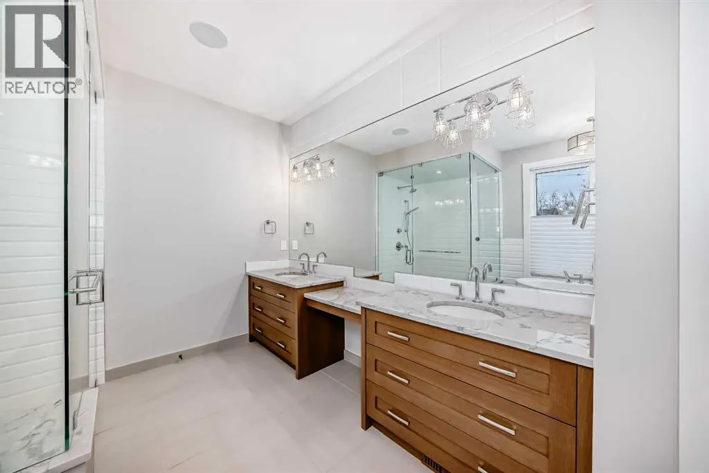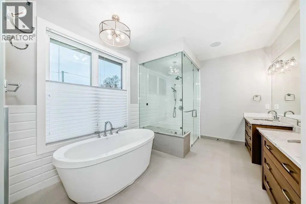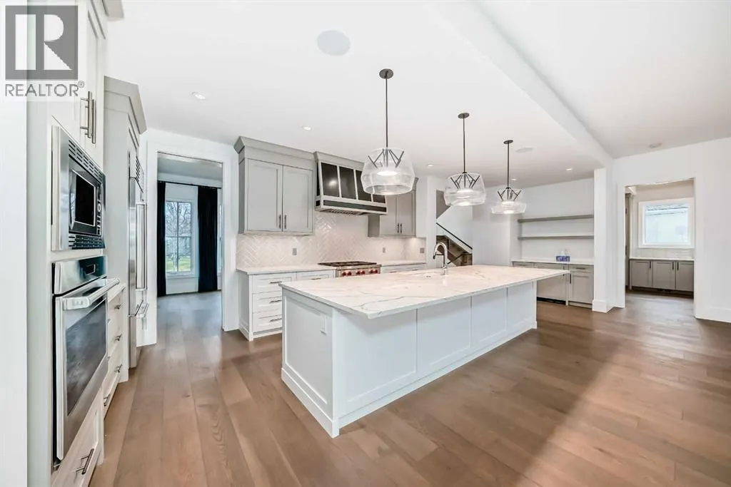 Welcome to this exquisite custom Maillot home, nestled in coveted upper Elbow Park, just steps from the expansive River Park pathway and William Reid French Immersion School. With over 5,000 sq.ft. of beautifully designed living space, this 6-bedroom, 6-bathroom home offers the perfect balance of modern elegance and family functionality.Upon entry, youâll be greeted by an open, airy floor plan featuring 10â ceilings, elegant light fixtures, and polished chrome details. The chef-inspired kitchen, equipped with top-of-the-line Wolf and Sub-Zero appliances, is the heart of the home. The spacious great room, with its cozy gas fireplace, and adjoining dining area make this space ideal for both relaxed family living and sophisticated entertaining.A large mudroom and walk-through pantry lead directly to the kitchen, making meal prep a breeze. The main level also includes a convenient den, perfect for a home office or dining room.Upstairs, the second level boasts 4 generously sized bedrooms, each with ample closet space, along with a cozy sitting area and a full laundry room. The opulent master suite features a luxurious 5-piece ensuite, complete with a steam shower and in floor heating for ultimate relaxation.The lower level is designed for fun and relaxation, with radiant in-floor heating, a large family room, full bar, private powder room, and 2 additional bedrooms that share a Jack & Jill bath.Outside, the west-facing backyard is fully landscaped and features a covered deck with a motorized awning, offering the perfect space to unwind. The oversized triple garage is heated, with an EV charger and ample storage space.Additional highlights of this home include double air conditioning units, 8â white oak engineered hardwood flooring, a Hans Grohe/Grohe/Brizo plumbing package, and triple-glazed windows throughout.With its prime location, elegant finishes, and family-friendly design, this home is truly a must-see. (id:27476)