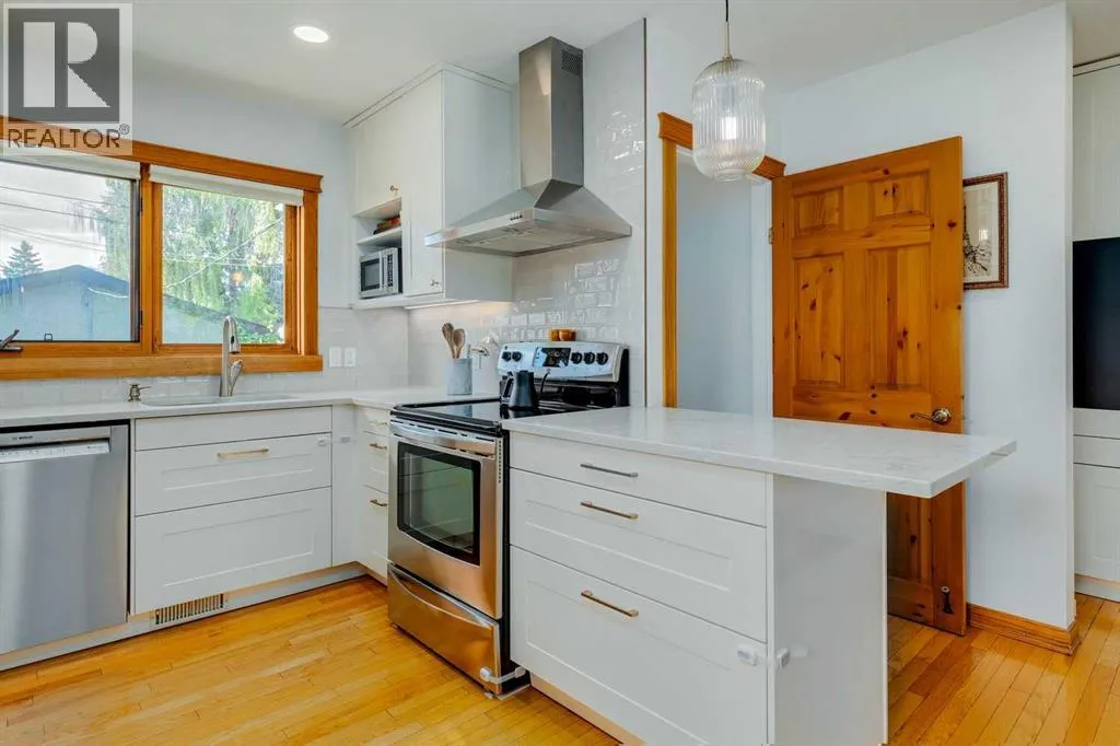 ** Open House, Saturday, Nov 22, 12pm-2pm **An Urban Oasis in Southwood. Discover a beautifully updated bungalow in the established community of Southwood, offering over 1,800 sq ft of thoughtfully developed living space. The main level features warm hardwood floors and an open-concept living and dining room that flows into the tastefully updated kitchen, complete with sleek quartz countertops, crisp white cabinetry, and a suite of stainless steel appliances. Two main-floor bedrooms and a four-piece bath, along with a private primary bedroom with a three-piece ensuite and soaker tub, provide peaceful retreats.The versatile lower level includes a large recreation room, a third bedroom (ideal for a home office), a three-piece bath, and dedicated laundry and storage. Enjoy a sunny south-facing backyard with a newly installed covered pergola and a single detached garage. This home has been meticulously maintained, with key recent updates including a new sewer line (2021), a newer furnace, hot water tank, and new roof (2024). Located close to parks, schools, and shopping, with easy access to the downtown core, this is a home that offers comfort and convenience. (id:27476)