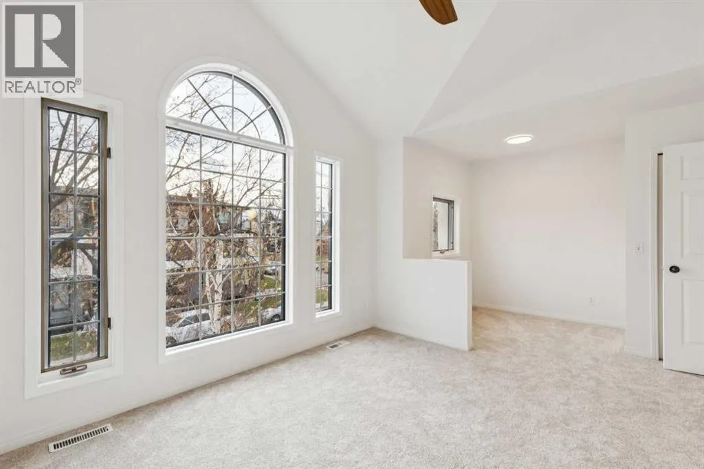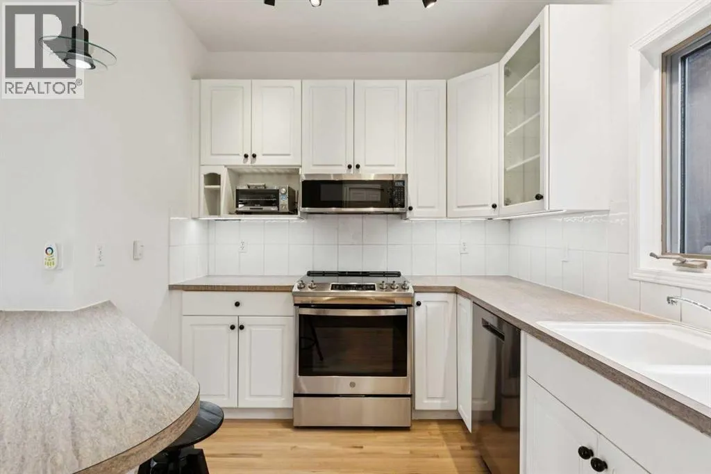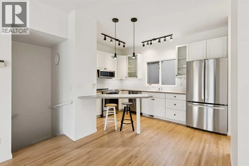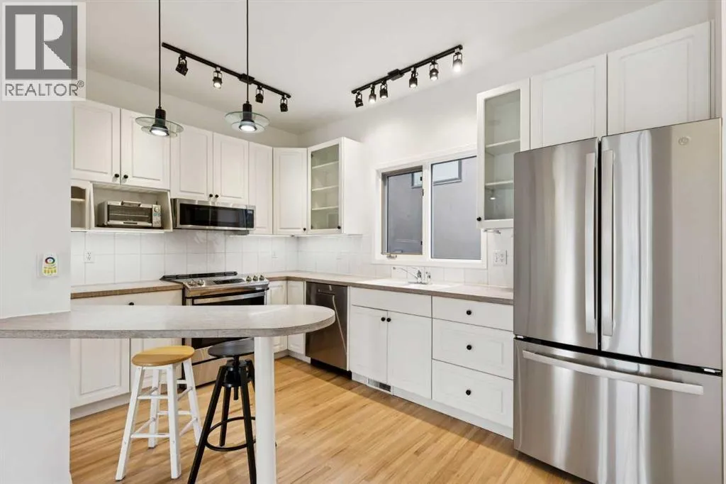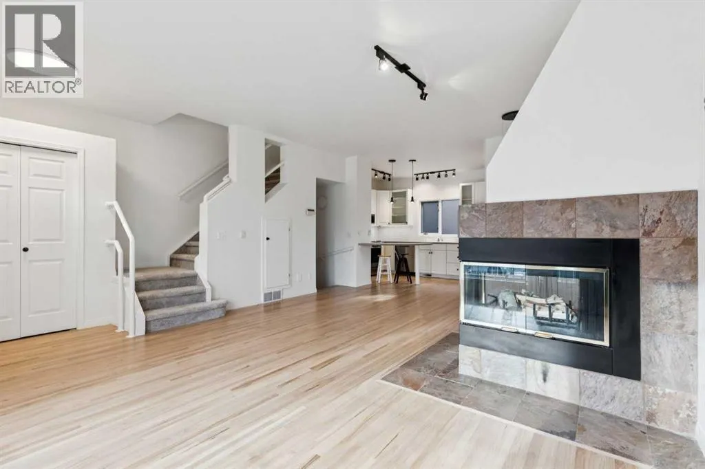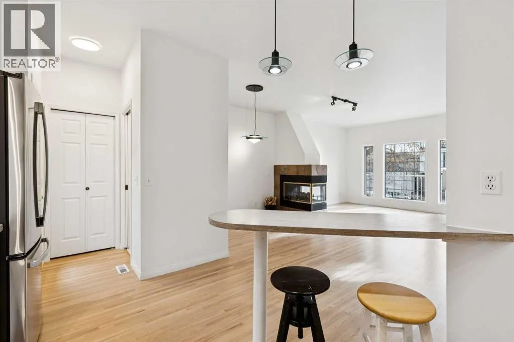 Welcome to this newly updated townhome on a beautiful tree-lined street in the sought-after community of Killarney. This 2 bedroom, 2 bathroom home offers exceptional parking with a double attached garage, driveway, and an additional assigned stall off the alleyâa rare find that must be seen in person to be fully appreciated. From the moment you arrive, the curb appeal draws you in with an inviting front balcony where you can sip your morning coffee and enjoy the canopy of mature trees out front â itâs giving brownstone vibes. Inside, youâre greeted by fresh paint throughout, gleaming refinished hardwood floors, and a bright, airy open-concept living space. Natural light pours through large south-facing windows, filling the living room with warmth and highlighting the cozy wood burning/gas fireplace. The kitchen overlooks the dining and living areas to create a seamless space for entertaining and features a brand-new suite of appliances: stove, dishwasher, refrigerator, fan/microwave, and toaster oven. The main floor is complete with a powder room and access to the back deck, perfect for your gas BBQ. Upstairs, with brand new carpet underfoot, youâll find the showpiece primary bedroom with vaulted ceilings, new windows, a walk-in closet, and a large 4-piece ensuite. Beneath the new carpet in the walk-in closet is rough-in plumbing for a potential second bathroom (sink and toilet), offering future flexibility. A spacious second bedroom completes the upper level. The lower level features a meticulous double attached garage with painted floors and a newly insulated garage door, plus a laundry room/flex space for extra storage or a hobby area. This rare opportunity combines inner-city convenience, modern comfort, and timeless charm. Youâre just steps to Killarneyâs amenities, including the Killarney Aquatic & Recreation Centre and 17th Avenue, with a quick commute to Marda Loop and downtown. Westbrook Mall and the C-Train station are also within easy walking distance. W ith flexible possession available, this is your chance to secure a special home in one of Calgaryâs most desirable neighbourhoods. Book your private showing today and experience all that this Killarney townhome has to offer! (id:27476)