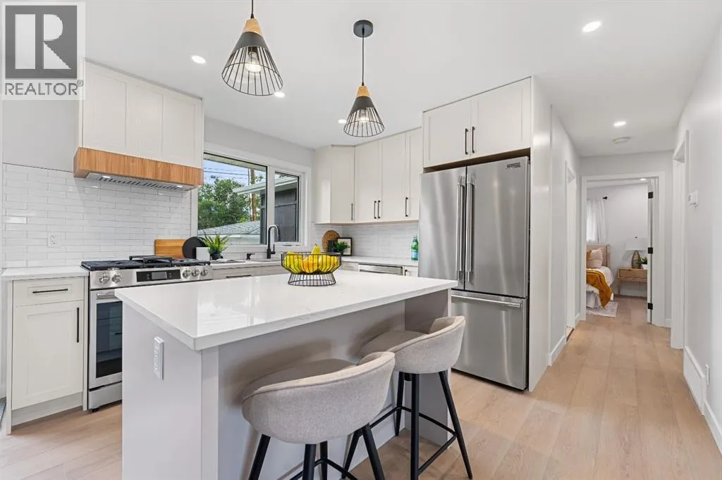 Welcome to your DREAM HOME in Acadia! This stunning bungalow boasts over 2279 square feet of living space has been stripped down to the studs and completely rebuilt with precision, care, and style. Every detail is brand new and never lived in, offering the best of inner city living combined with high-end finishes. Best part - youâll find a brand-new 2 bedroom legal suite in the basement, complete with its own heating system, soundproofing, and a full custom kitchen. Perfect for hosting guests, extended family living or generating additional income. The curb appeal is undeniable. With all new Hardie siding, fresh parging, new roof, windows, exterior doors, and immaculate landscaping with concrete walkways, new stairs, fresh sod, and sleek fencing. Youâll love relaxing on either of the two new decks, one in front for morning coffee and one in the back for evening gatherings. Step inside and be wowed by the open, airy layout thatâs both functional and beautiful. The custom kitchen is the heart of the home, with a built-in bench dining area, high-end finishes, and thoughtful design for everyday living and entertaining. The living room space featureâs a stunning Napoleon fireplace making it warm and inviting year-round. The primary bedroom boasts a 150 sq ft addition featuring a huge walk-in closet and a luxurious Spa-like ensuite complete with freestanding tub, double vanity and a Steam shower. Another 2 larger bedrooms and full bathroom complete the main level. And in the hallway youâll find separate laundry and a main floor bathroom featuring stylish fixtures and quality craftsmanship. Heading downstairs you have a completely separate entrance to the suite for added privacy. The finishing is just as nice as the main floor, with a custom kitchen space, separate laundry and another Napoleon fireplace. Additional large windows add an abundance of natural light to the space. Completed with another two bedrooms, full bathroom and office nook, youâll be impressed. This home has been completely transformed and offers excellent efficiency with upgraded R-50 attic insulation, a new high-efficiency hot water tank, new AC, new HRV, 200-amp electrical service with a brand-new panel, and all-new PEX plumbing throughout. The oversized garage is a standout, with two windows, a new concrete floor, insulation, drywall, fresh paint, and a gas line for a heater. Beside the garage is a new concrete parking pad with RV gate for storing your toys. As well, no neighbours directly behind you gives you extra privacy! Nestled in one of Calgaryâs most high demand neighbourhoods, where youâre close to parks, schools, shopping, and transit, with easy access to major routes. This rebuild offers the peace of mind and style youâve been searching for. Everything is new. Everything is ready. All thatâs missing is you! (id:27476)