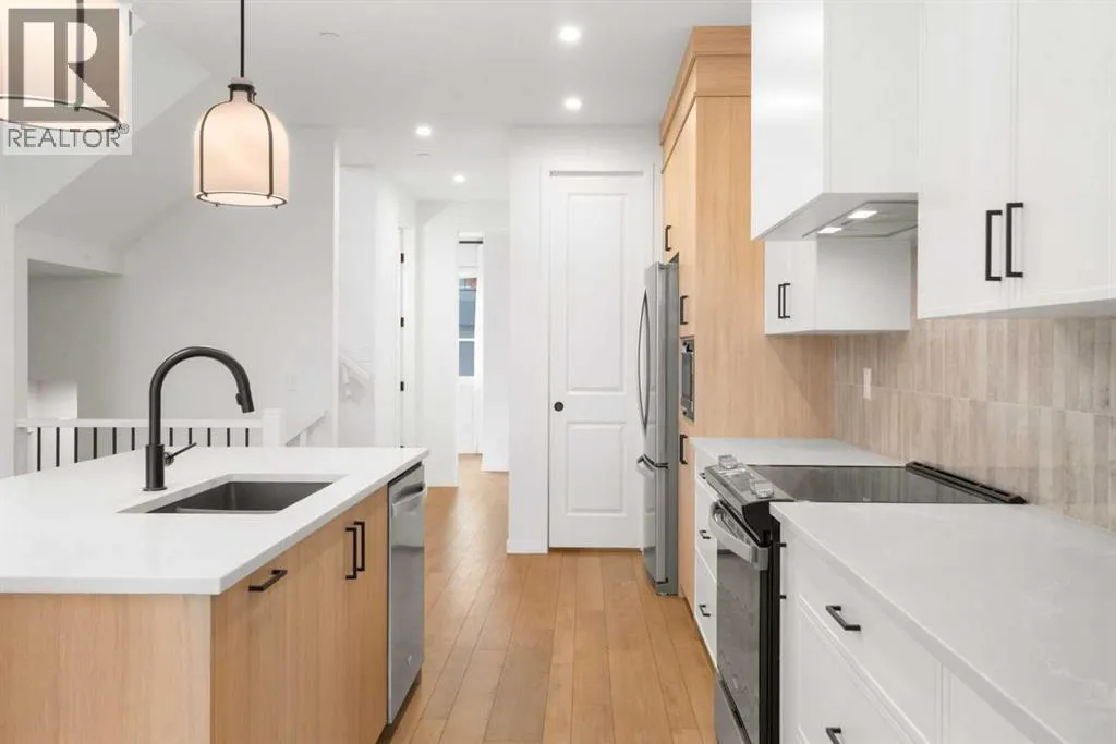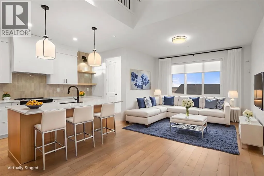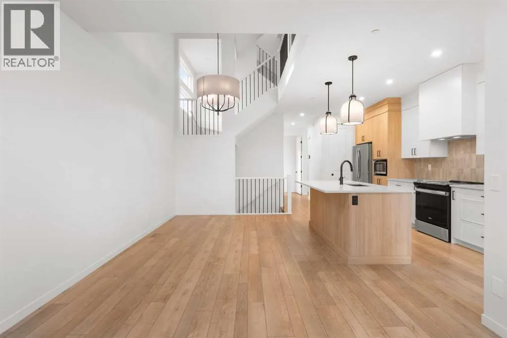 From the moment you step inside this former Cedarglen show home, you feel it - that sense of ease, of space, of possibility. The kind of home where everyone can live fully without getting in each otherâs way, yet still come together in the moments that matter. Set in the vibrant community of Livingston, known for its welcoming energy, incredible HOA amenities, and family-friendly design, this property gives you not just a home, but a lifestyle people genuinely fall in love with. The main floor opens with warmth and intention. Sunlight pours across the two-toned white and light oak kitchen, where stainless steel appliances, upgraded backsplash, and black hardware create a clean, modern palette. The warm luxury vinyl plank floors carry that tone throughout, guiding you seamlessly into the dining and rear living room - an inviting space that feels made for movie nights, slow Sundays, and effortless entertaining. Just off the foyer, a front bedroom with a full bath offers rare flexibility: a quiet office, a private suite for guests, or a thoughtful setup for multigenerational living. Upstairs, the primary suite feels like a calm retreat, complete with an ensuite featuring dual sinks, upgraded tile in the walk-in shower and a generous walk-in closet completes the space. Two additional bedrooms give everyone their own corner of the home, while the upper-floor laundry and airy open-to-below design add daily convenience and architectural beauty. Itâs a layout that simply makes sense - spacious, intuitive, and easy to live in. Then comes the showstopper: the third floor, an entire level dedicated to living large. This massive bonus room, complete with its own wet bar and a private powder room, is where life truly expands. Whether it becomes your media sanctuary, kidsâ zone, gym, or creative space, it all opens onto a covered balcony that feels like your own rooftop escape. Morning coffee, evening cocktails, long summer nights - this is where memories happen. An unfinished ba sement offers more than 800 sq ft to grow into - future bedrooms, a rec room, or the home gym youâve dreamed about. With a side entrance, the possibilities feel endless. Outside youâll find Gemstone exterior lighting, Central AC, and a double detached garage to keep your cars warm all winter long. Livingston offers everything families love: beautiful parks, the state-of-the-art HOA hub, community events that make neighbours feel like friends, and quick access to major routes. Itâs a place where kids bike freely, people connect, and life feels just a little bit easier. This is where comfort meets function, where smart design meets style, and where your next chapter can unfold with ease. Come see why Livingston homeowners never want to leave and why this former show home is the perfect place to start your story. *Some photos are virtually staged* (id:27476)