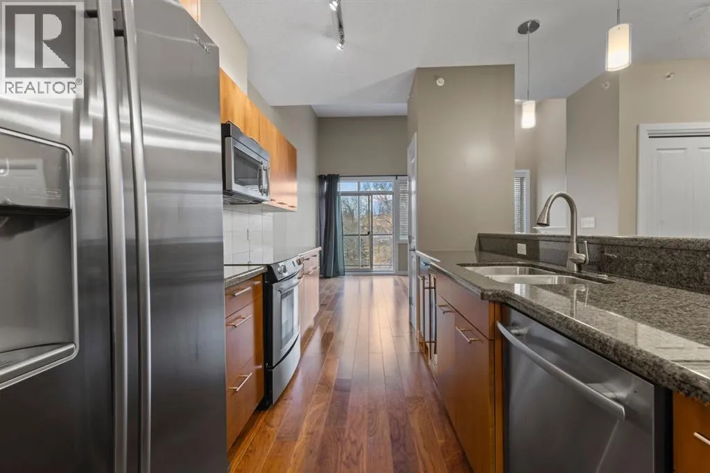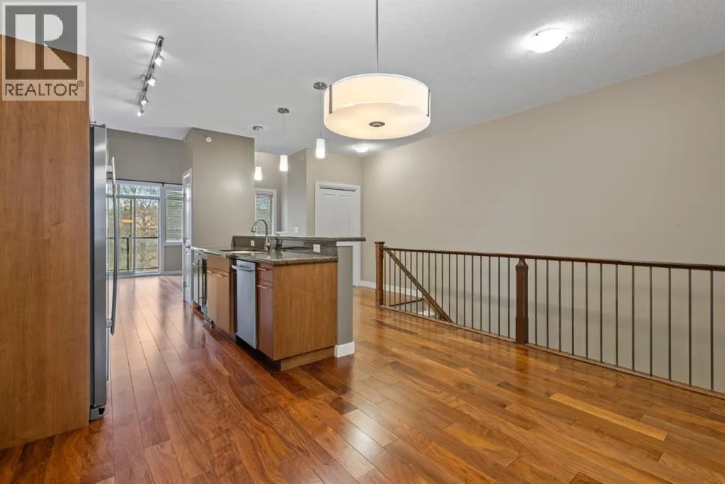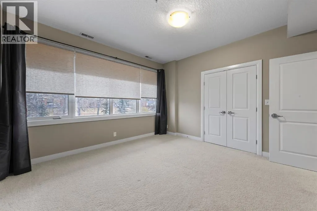 Welcome to The Nine! a bright, stylish, and inviting top-floor condo perfectly situated in the sought-after community of Hillhurst. Offering over 1,500 sq. ft. of thoughtfully designed living space, this home places you just steps from Kensingtonâs vibrant shops and restaurants, and only minutes from SAIT and the Jubilee Auditorium. Spread across two spacious levels, the upper floor features an open-concept layout ideal for both relaxing and entertaining. The gourmet kitchen is equipped with granite countertops, stainless steel appliances, and a built-in wine fridge. The living room, complete with vaulted ceilings and expansive windows, is filled with natural light throughout the day, creating a warm and welcoming atmosphere. The lower level offers excellent functionality with a cozy den, convenient in-suite laundry, a full 4-piece bathroom, and two generously sized bedrooms. The primary bedroom includes its own 4-piece ensuite and walk-in closet, providing plenty of comfort and privacy. Residents can enjoy great building amenities such as a large storage locker, secure bike rooms, and access to the Urban Athlete fitness centre. This standout unit also includes two heated, titled underground parking stalls, a rare and valuable feature. This condo truly has it all, space, style, location, and convenience. Donât miss your chance to see it for yourself. (id:27476)
