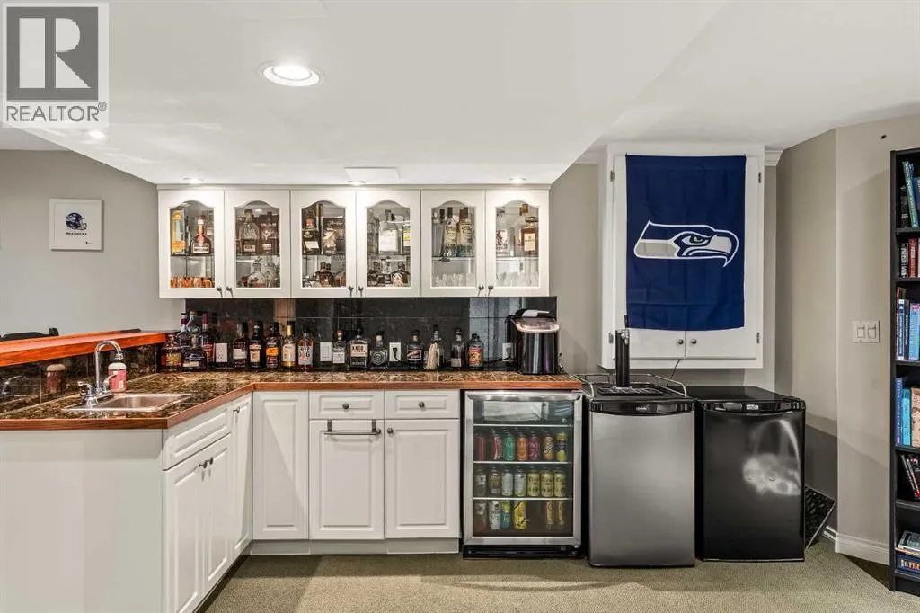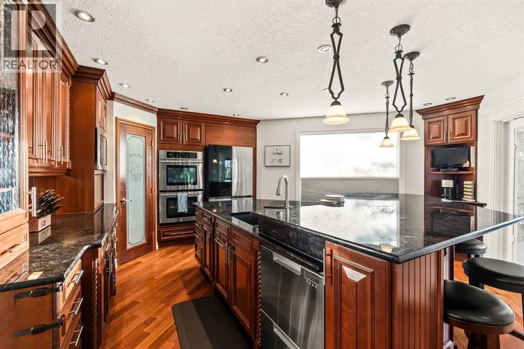Welcome to 25 McKinley Bay SE! This meticulously maintained 5 bed, 3.5 bath, fully developed home offers almost 3000 sq ft of living space and sits on a massive 6673 sq ft Southwest-facing pie lot in the ever-popular 4-season community of McKenzie Lake! The main floor welcomes you with an open-to-above front sitting room with soaring two-storey windows and recently site-finished Brazilian Marbau hardwood floors. The gourmet sunlit kitchen is a masterpiece, featuring full-height cabinets, granite countertops, a large island, built-in double wall oven, 36" JennAir induction cooktop, Fisher & Paykel two-drawer dishwasher, warming drawer, and wine cooler. An adjacent family room with gas fireplace and custom built-ins invites relaxed gatherings, while the formal dining room comfortably seats eightâperfect for entertaining. A stylish powder room and a well-appointed mudroom and laundry room with upper cabinets and countertop complete the main level. Ascend the hardwood stairs where the site finished Brazilian Merbau hardwood continues on the upper level and into the large primary bedroom that comfortably fits a king set plus enough space for a reading area or home office setup. The 5-piece ensuite offers dual sinks, a separate shower, and a fully functioning jetted tub. Finishing out the upper level are 3 additional good-sized bedrooms and a 4-piece bath. Head to the fully finished lower level that is game day ready with a large rec room that includes a gas fireplace, wet bar, bar fridge and upper cabinets! The lower level is completed with a 5th bedroom and a 3-piece bath. Outside, a stunning southwest-facing backyard awaitsâan expansive two-tier deck with a covered pergola offers generous space for outdoor dining and lounging. Enjoy evenings around the professionally finished stone patio with fire pit, or unwind in the secluded hot tub beneath a gazebo with privacy lattice. Two storage sheds keep seasonal items neatly tucked away. Additional highlights of this remarkab le home include knockdown ceilings and fresh paint throughout, newer refrigerator, furnace, and central A/C, plus Gemstone exterior lighting, underground irrigation, stone accents, and painted stucco. This exceptional property includes year-round lake access at McKenzie Lakeâswim, paddleboard, play pickleball, fish, and bbq in summer; skate and sled in winter. Just steps to Fish Creek Parkâs walking and biking trails, McKenzie Meadows Golf Course, schools, parks, and playgrounds, with quick access to Deerfoot and Stoney Trail. This home truly has it allâbook your private showing today. (id:27476)