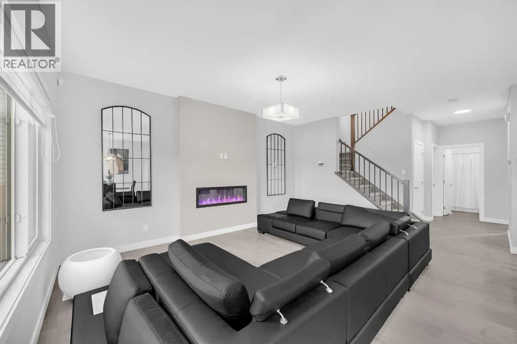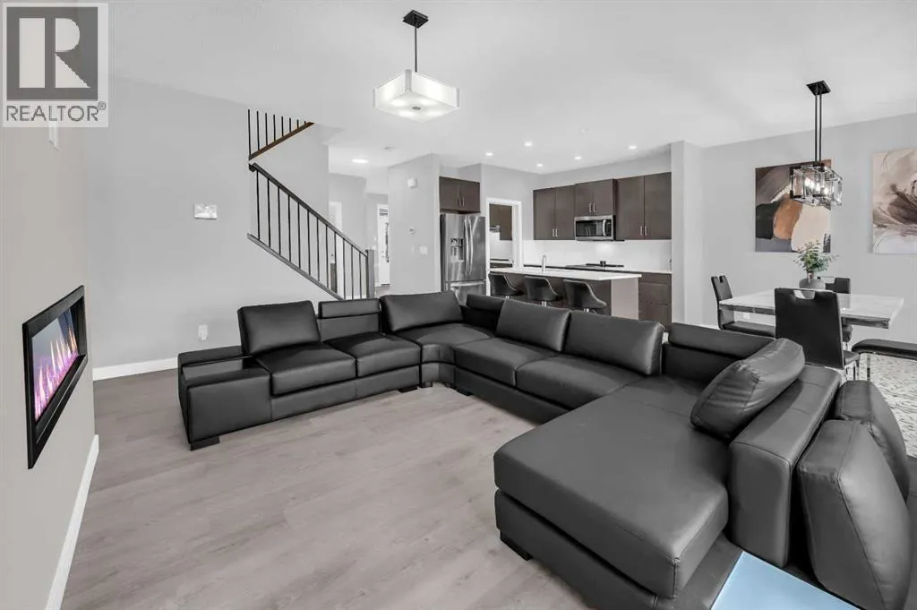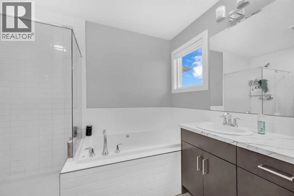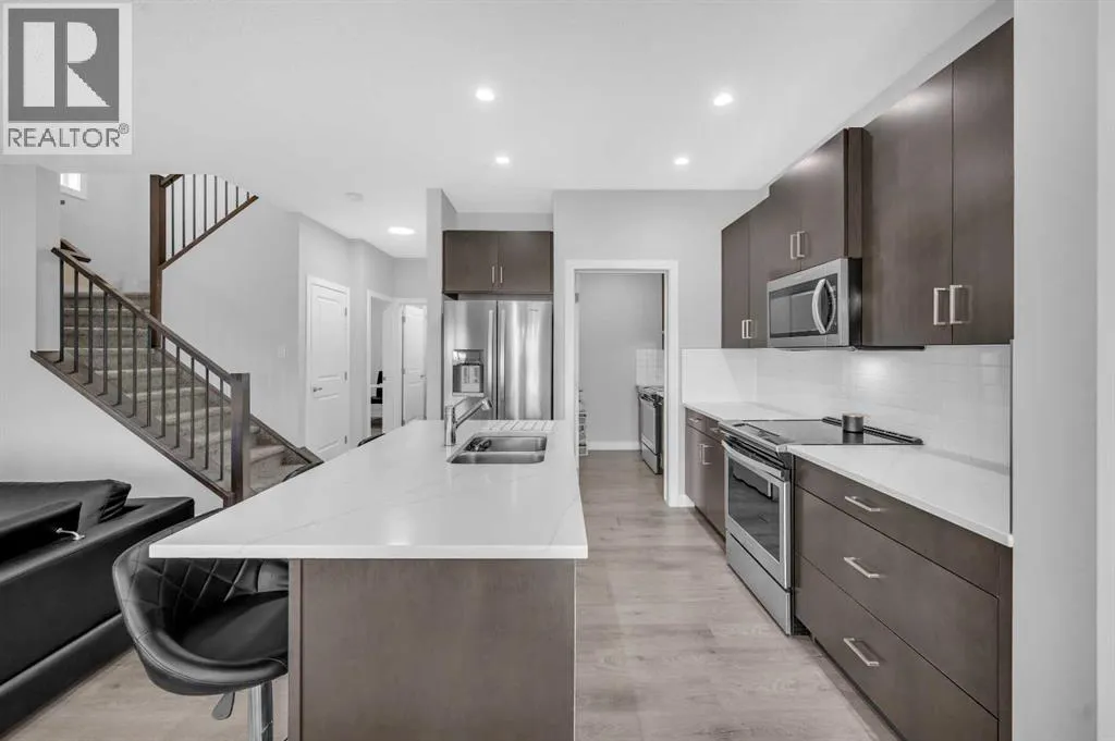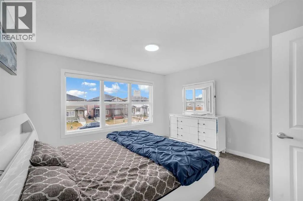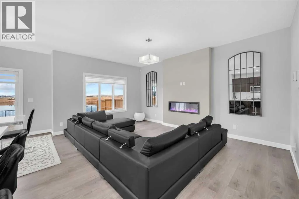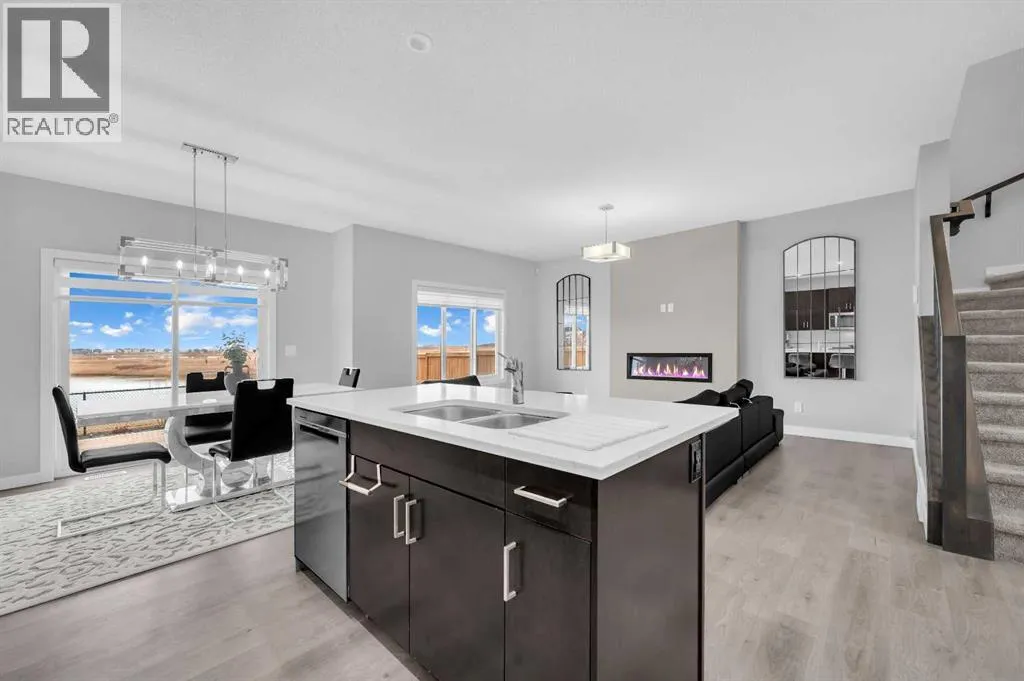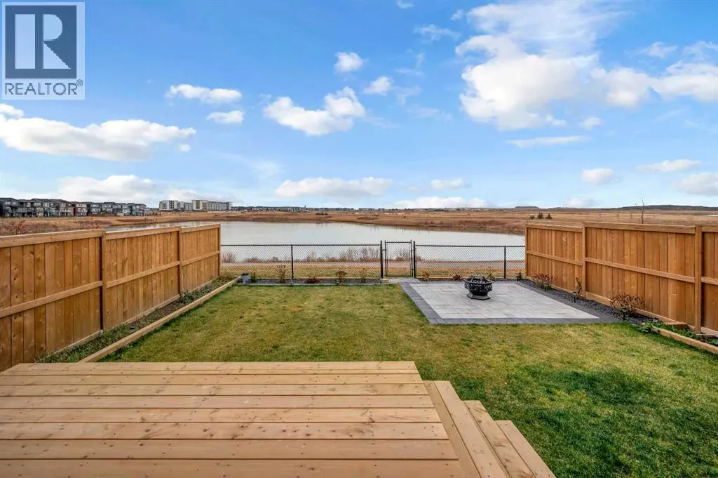 MAIN FLOOR BEDROOM & FULL BATHROOM, SPICE KITCHEN, BACKING ONTO POND. Welcome to this beautifully upgraded home set on a 34-ft wide lot backing onto a peaceful pond offering true privacy with no neighbours behind. This bright and spacious property features a main floor bedroom with a full bathroom, perfect for guests or multi-generational living. The open-concept kitchen shines with modern finishes, quartz counters, a large island, and a fully equipped SPICE KITCHEN. Large windows in the living room fill the home with natural light all day long. Fireplace also adds very elegant feature to the living area. Upstairs, youâll find three comfortable bedrooms, including a stylish primary bedroom with 5 piece ensuite and walk-in closet, another bedroom can accommodate a king size bed with its own walk-in closet. Along with a generous bonus room and multiple windows the upper floor looks bright. The side entrance to the basement with 9ft ceiling provides perfect opportunity to develop a two-bedroom suite and adding future value. The backyard is fully landscaped and fenced, complete with a deck and patio pad overlooking the pondâready for summer gatherings and peaceful evenings outdoors. This home offers brightness, privacy, and future income potentialâperfect for families. A must-see property in a fantastic Cornerstone community. (id:27476)