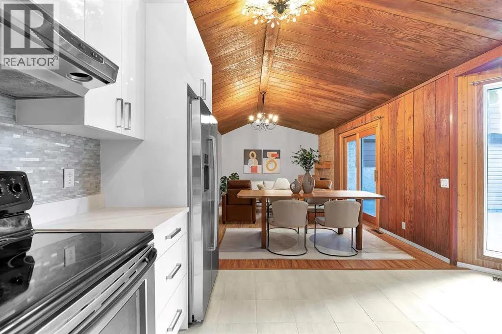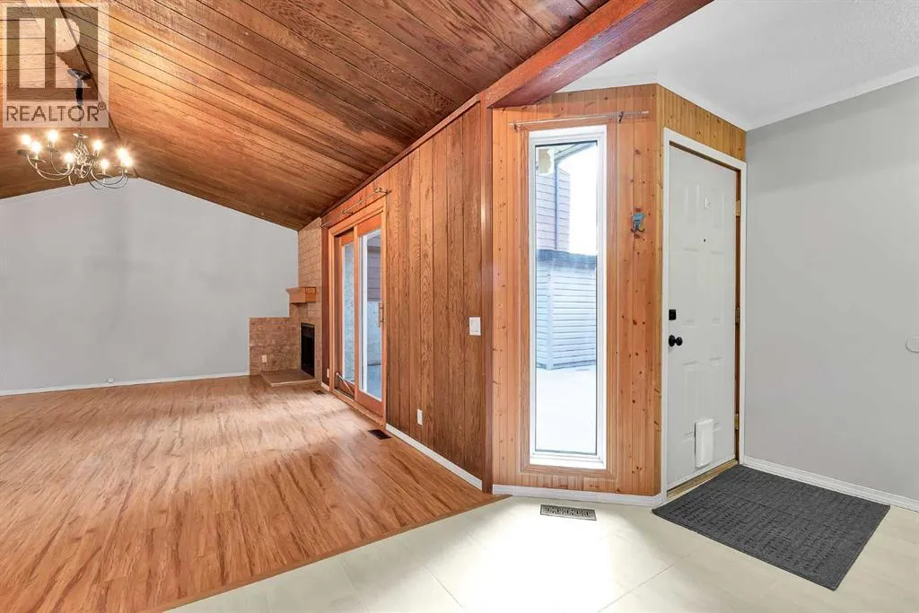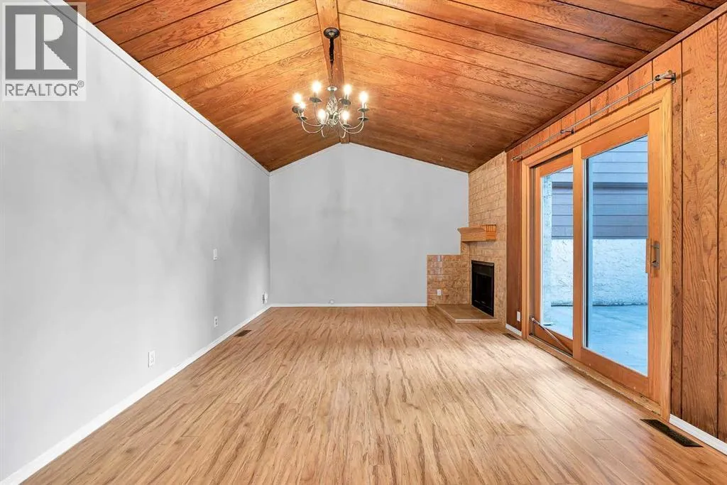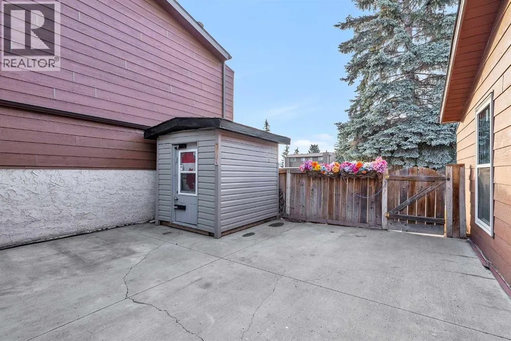 Rare opportunity to own a bungalow-style, end unit townhome offering true single-level living and exceptional privacy. This beautifully updated home features a bright white renovated kitchen, vaulted wood-beamed ceilings, and tile and laminate throughout for ease of maintenance. The spacious open concept living room and dining area includes a wood-burning fireplace and opens onto a spacious, private, north-west facing courtyard patio- perfect for evening relaxation. The layout offers 2 comfortable bedrooms, an updated 4pc bathroom and a large in unit laundry/storage room. Peace of mind upgrades include newer furnace, newer hot water tank, updated windows, some flooring and fresh interior paint. This end unit provides one assigned stall with plenty of street parking for supplementary cars. The large exterior shed adds even more functionality. With its bungalow floor plan and no interior stairs, this home is an excellent option for those seeking accessible living, seniors or anyone wanting easy low-maintenance comfort. Convenient location close to transit, shopping, parks and amenities. Affordable, updated, and move-in ready-this rare bungalow townhome is one you won't want to miss. (id:27476)