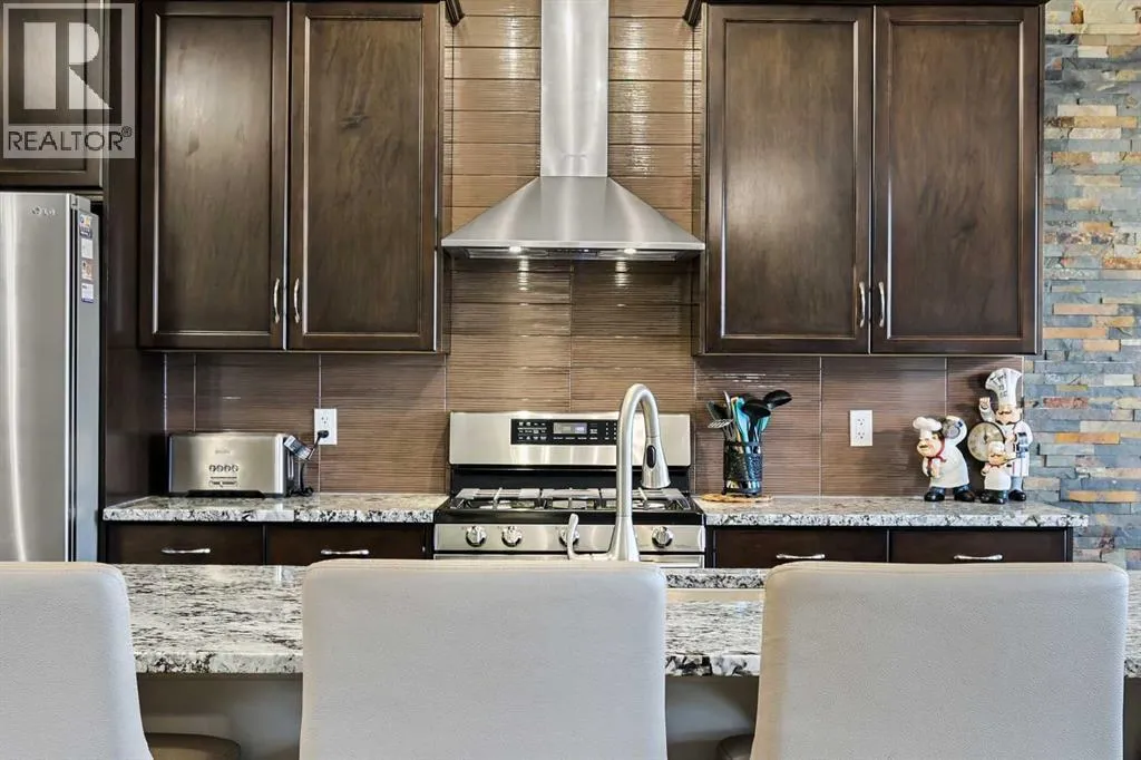 Everything you are looking for in a wonderful, immaculately maintained and spacious home can be found in 20 Walden View SE. Situated in a no thru family friendly cul de sac, just steps away from the park you will discover over 3000+sqft of beautifully developed living space. Custom built by this original home owner, every detail was hand selected to create a thoughtfully designed floor plan to create many family memories to last a life time. Now it is your turn to enjoy this FULLY FINISHED WALK OUT home built on a LARGE PIE LOT boasting FIVE BEDROOMS and 3.5 BATHROOMS for all to enjoy. Soaring 9ft ceilings invite you in to explore the functional yet spacious home commencing with the Den just past the foyer that invites you into the common living area where you will discover an expansive extended centre island, stunning GRANITE counters, sleek stainless steel appliances including an upgraded GAS RANGE, full tile subway back splash that extends to the ceiling behind the range, designer hood fan and a sizeable walk through pantry to the mud room. The living room features a floor to ceiling stone fireplace with built-in niche and decor mantle while the designated dining room mirrors the same stunning stone feature wall offering a rich warmth to this lovely family home. The floor to ceiling custom drapery adds an elevated feel to the home and frames in the over sized windows that takes you out through French sliding doors to the massive maintenance free deck with awning that overlooks the back yard. The upper level features three large bedrooms with the Primary bedroom boasting a spa-inspired 4pc en suite that has rarely been used and is immaculate. There is a huge corner soaker tub, water closet and over sized walk-in shower with built-in bench for you to enjoy your getaway from the everyday, along with a nice sized walk-in closet. Family and friends can enjoy the additional bedrooms with the 2nd bedroom offering a great slope vaulted ceiling and the Bonus room is perfe ct for movie night. To complete the upper level you have a convenient 2nd floor laundry room and another full bath. The FULLY FINISHED WALK-OUT basement offers you and additional 886 sq ft of great living space offering ample room for all. You have TWO more large bedrooms, a full bath and a generous living room / rec area. Luxury vinyl plank graces the floor through out and over sized windows invite an abundance of natural daylight into this great space. Step out to your lower covered patio where you will discover an exposed aggregate patio and stairs that compliment the esthetic of the home while offering a dedicated space for a hot tub or outdoor conversation pieces. A huge pie lot with mature trees and so much space to play and enjoy your surroundings. Already established in a vibrant and friendly street where the neighbours know your name and kids are running around the cul de sac, you will feel at home while having the space to grow your family while enjoying the community around you. Welcome home! (id:27476)