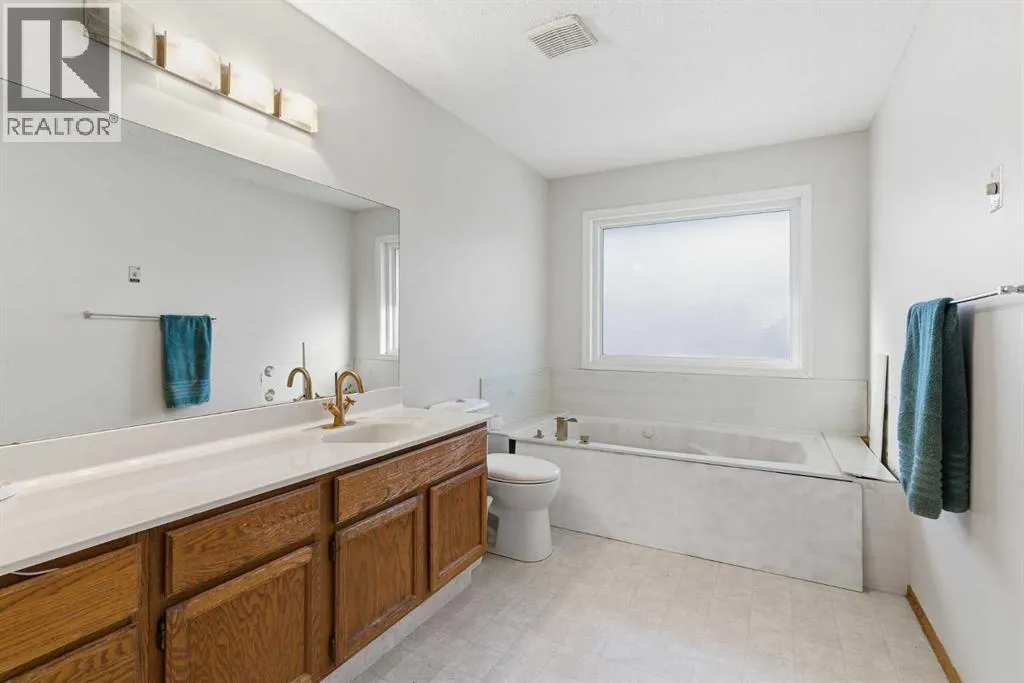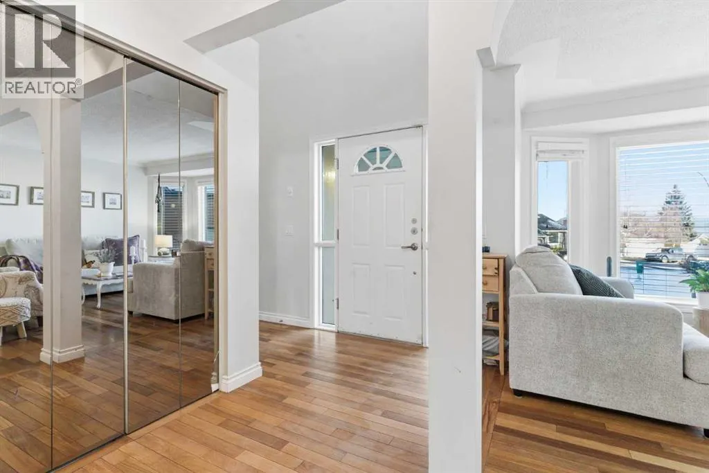 Set in a family friendly cul-de-sac in Sandstone Valley, this home delivers the space, location & community feel that buyers search for but rarely find. This is the kind of street where neighbours wave from their driveways, kids ride bikes until the sun sets & families stay for years because it simply feels like home. Homes of this size rarely come to market. With more than 2,445 sq ft above grade plus all the additional space in the lower level, this is the largest home currently available - not only in Sandstone but across the entire North & NW quadrants under $700k. Set on a large CORNER PIE lot with a SUNNY SOUTHWEST backyard, the property offers outstanding natural light & plenty of outdoor space. Inside, the main floor is designed for real life with an open layout, hardwood flooring, main floor office, a formal living & dining room & a spacious kitchen that opens into a huge family room, built-in cabinetry & a WOOD burning FIREPLACE. The SW exposure keeps the home bright all day. The upper level features FOUR massive BEDROOMS with HARDWOOD running from the staircase through the hallway & into every bedroom. The (partially finished) lower level adds even more flexibility with a fifth bedroom, a full 3 piece bathroom, a rec room & a dedicated laundry & utility area. UPGRADES include TWO new FURNACES, TWO HOT WATER Tanks, full POLY B plumbing removal, NEWER WINDOWS & NEW AIR CONDITIONING. With solid bones & an exceptional floor plan & loads of square footage, with a few little updates & renovations it will take this already impressive home to the next level. Sandstone is known for its peaceful atmosphere, family friendly streets, walking distance to top tier schools, Nose Hill Park & beautiful green spaces & off leash dog parks. Itâs a serene yet vibrant NorthWest community where families thrive, commutes are simple & amenities are close at hand. This location delivers both convenience & a true community feel! (id:27476)