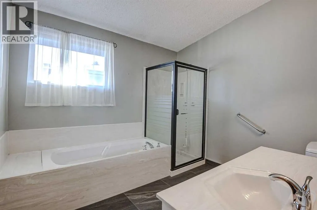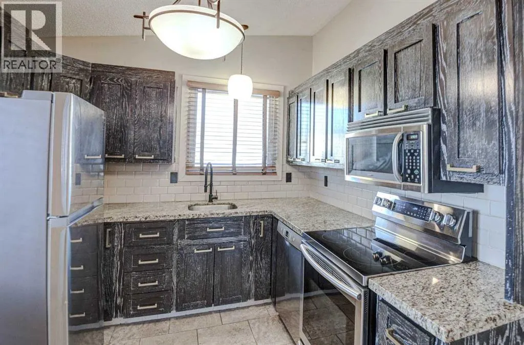 Charming 1125 sq. ft. bungalow sits on one of the best streets in Lakeview, situated on a pie-shaped 5,200 sq ft lot with mature trees, vinyl fencing, a large patio, garden plot and a storage shed. Inside, you'll find vaulted ceilings that enhance the spacious, open feel of the home, while the updated black kitchen with granite countertops and stainless-steel appliances adds a modern touch. The bright main floor includes a large primary bedroom with a walk-in closet, a generously sized second bedroom, and an oversized bathroom with a soaker tub and separate shower. The fully developed basement features a brick faced gas fireplace, a spacious rec room with a wet bar, a large bedroom (non-egress window), a 2-piece bath, and plenty of storage. Well maintained with updated roofing and furnace, this home also includes a front-facing single garage with driveway parking and rear alley access. Ideally located close to North Glenmore Park, top-rated schools, shopping, transit, and the Glenmore Reservoir, with quick road access to Crowchild Trail and Stoney Trail, making this one of Lakeviewâs most desirable opportunities. (id:27476)