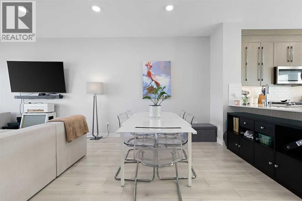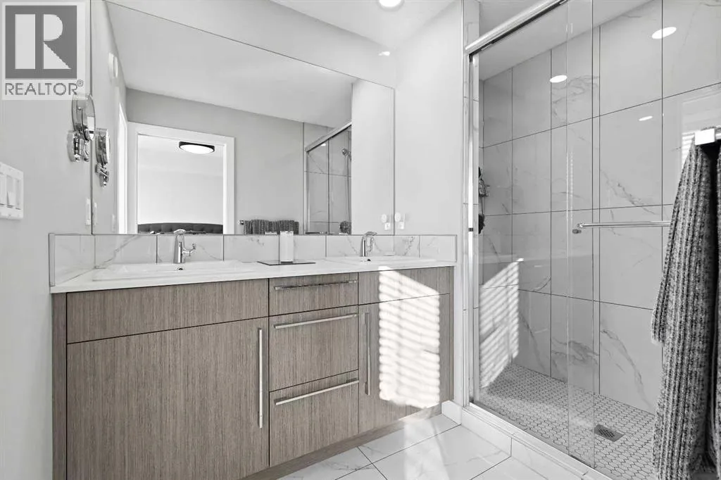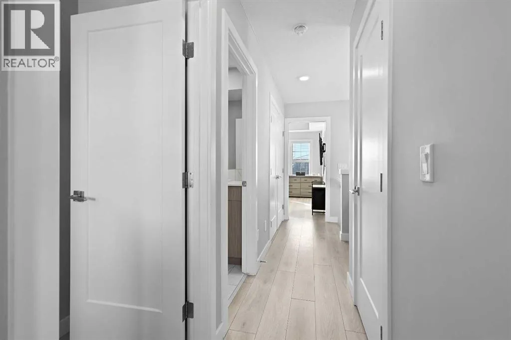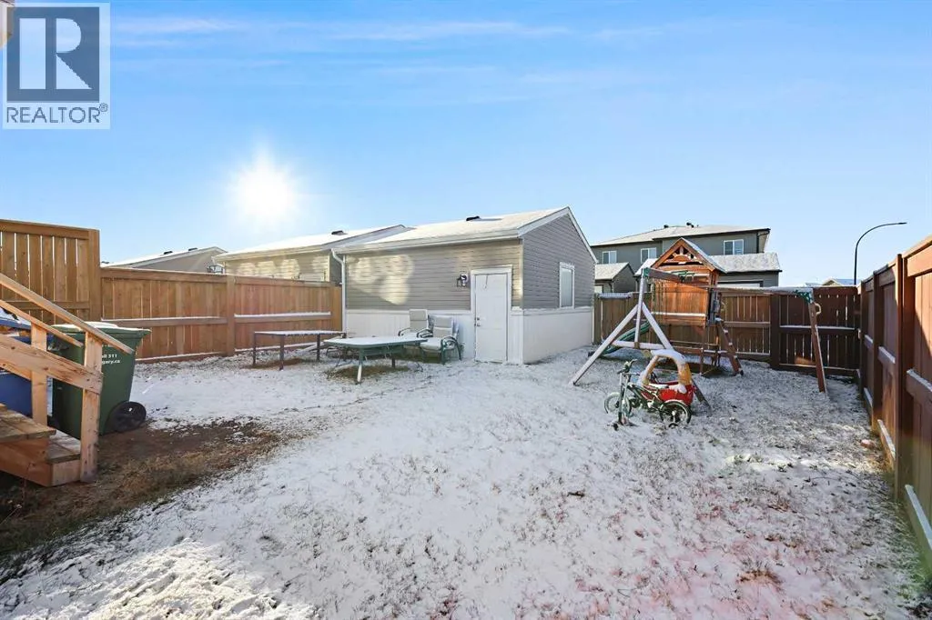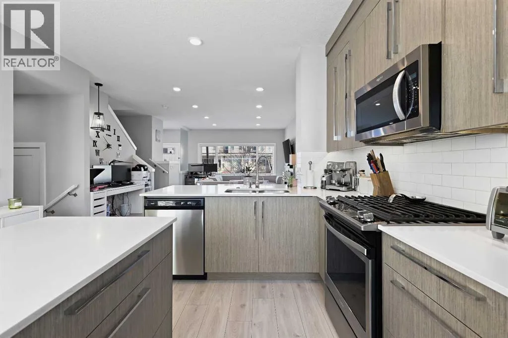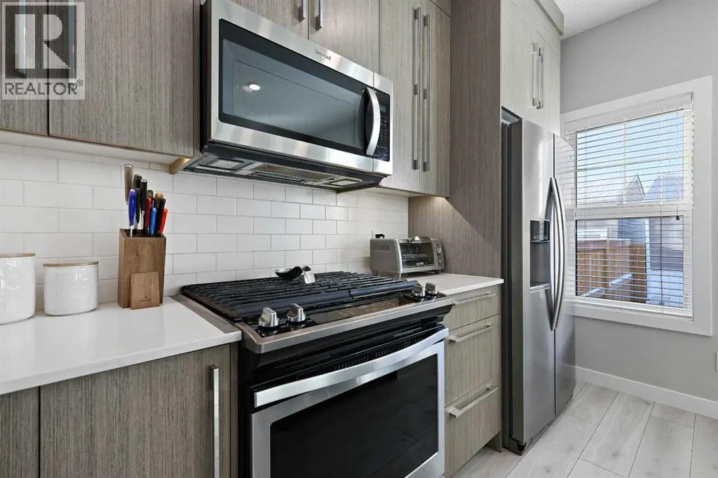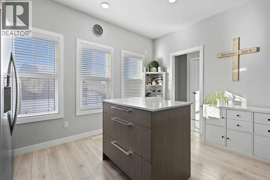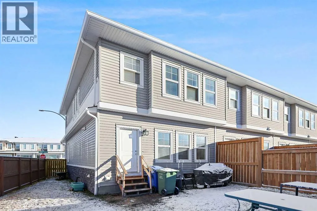 BEAUTIFUL OPEN FLOOR PLAN | EXTRA LARGE CORNER LOT | TONS OF NATURAL LIGHT ALL DAY!! This exquisite town house encompasses a modern palette with fabulous finishes and large living spaces perfectly suited for a family with children, empty nesters or a professional working from home! Situated on an EXTRA LARGE CORNER LOT, the back yard has room for a large family including a side yard for the pup's dog run, a large area for children to play...even a trampoline will fit easily here PLUS an area for DINING AND RELAXING AL FRESCO after a long work day! Let's step inside where a sizeable ENTRY WAY flows nicely into your main living area that features LARGE WINDOWS, HIGH CEILINGS and lots of room for furnishing in style! Enjoy cooking and entertaining in the well equipped kitchen boasting a GAS RANGE, WORKING ISLAND, AMPLE QUARTZ COUNTERS and STAINLESS STEEL APPLIANCES! Tall to the ceiling Thermofoil wood cabinets ( resist fading) with modern linear hardware add to the beauty of clean lines and ample storage capability while a CENTRAL OPEN DINING ROOM is the perfect hub for casual or formal dinners that easily seats 8-10 persons comfortably! The main floor gleams all day long in natural sunlight that beams through numerous windows front and back, easy to keep an eye on the kids playing in the fully fenced backyard while creating in the kitchen. The extra wide main level floor plan also allows for a SPACIOUS WORK AREA where business can be carried out in the privacy and comfort of your own home! The HALF BATH is conveniently tucked away for privacy. Upstairs is a comfortable and roomy place to unwind featuring a LUXURIOUS PRIMARY BEDROOM spacious enough for a king sized bed and side tables, beautiful large windows, sizeable walk in closet and fabulous 4 PIECE ENSUITE with DUAL VANITIES & HUGE GLASS & TILE SHOWER! The UPPER HALL LAUNDRY is convenient and serves as a great work area for folding and ironing...not just a tight closet housing a washer and dryer! Comp leting this floor are 2 ADDITIONAL LARGE BEDROOMS each encapsulated in natural sunlight and sizeable enough for bigger furniture! The 4 PIECE BATH is conveniently located right beside for easy preparation before bed and early mornings! The lower level basement is wide open for your creative development and offers ample space for any additional lifestyle elements. This beautiful home has so much to offer including WIDE PLANK LAMINATE FLOORS | NEWLY PAINTED THROUGHOUT | NEW ROOF ON HOUSE AND GARAGE (2025) | NEW SIDING (2025) | NEW EAVES TROUGHS (2025) | NEW GUTTERS (2025) | DOUBLE DETACHED GARAGE WITH BUILT-IN WORK BENCH! A PARK AND PLAYGROUND is just steps away for the kids to enjoy! Carrington offers a vast array of amenities just minutes from your door and major routes such as Stoney Trail and Deerfoot Trail are only minutes away for weekend escapes and a quick commute to downtown! Come take a look...HOME IS HERE! (id:27476)