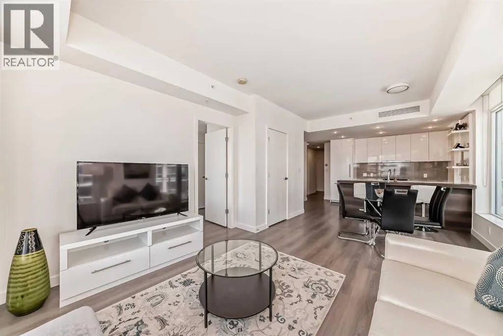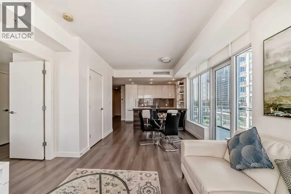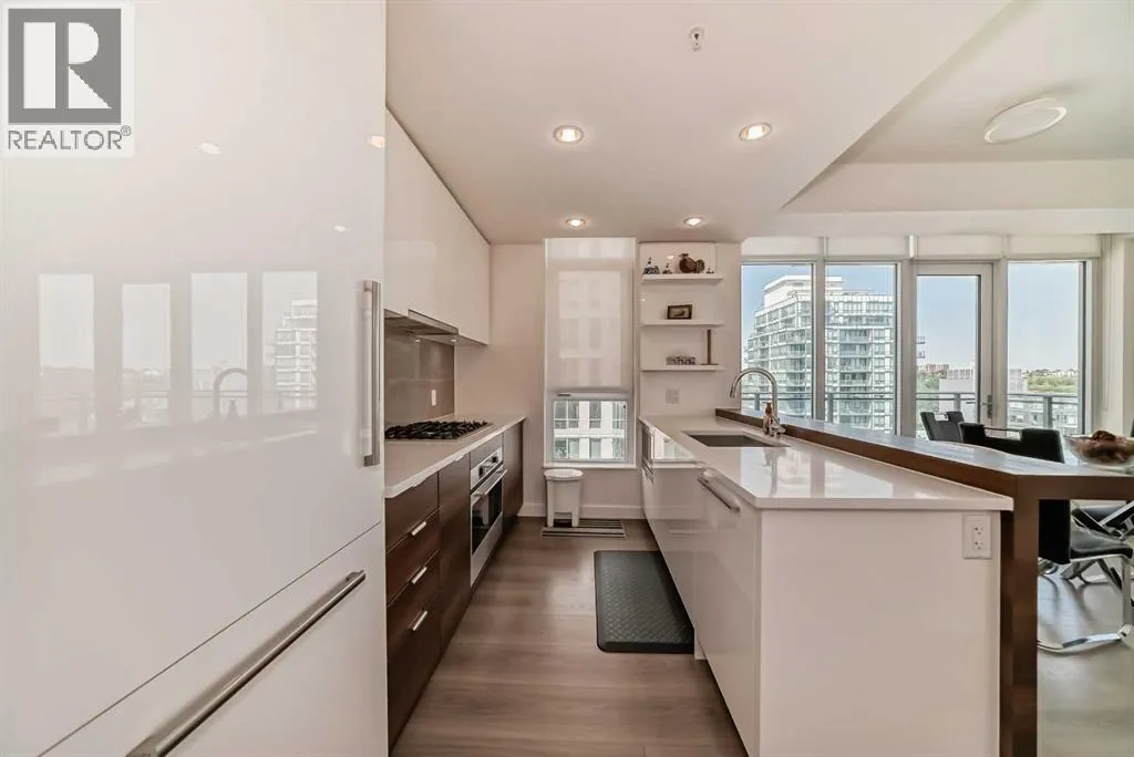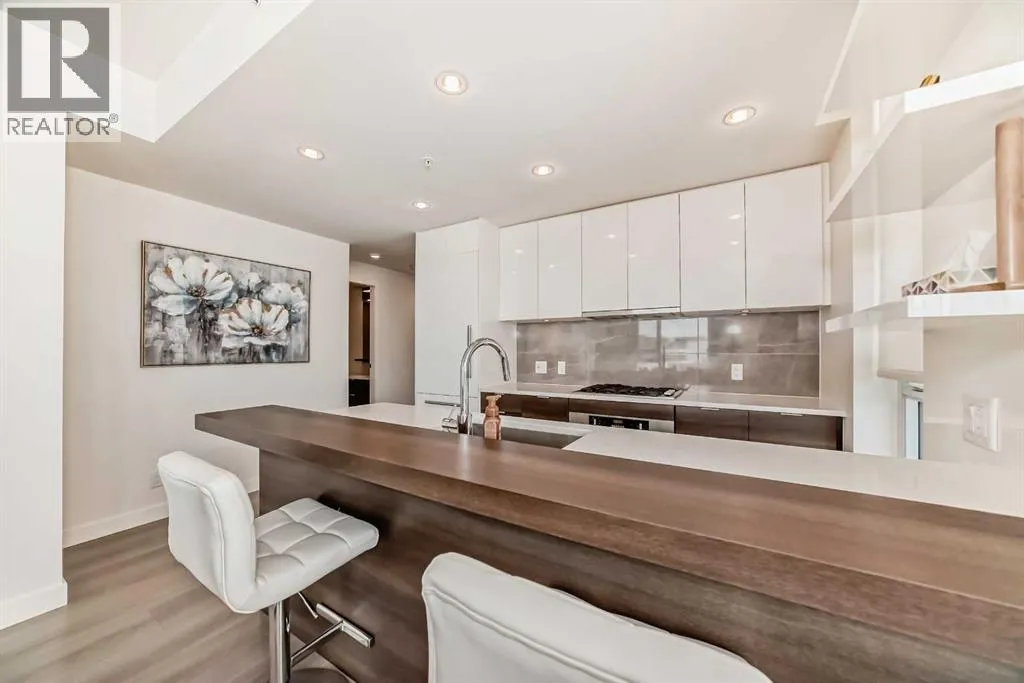 Welcome to Waterfront Parkside - your concrete oasis right beside the Bow River. This stunning 2-bedroom, 2-bathroom corner unit offers 865 sqft of thoughtfully designed living space with northwest exposure. The floor-to-ceiling windows flood the space with natural light without being blinded by direct sun rays. Enjoy sweeping city and park views from this elevated home that perfectly balances urban sophistication & natural serenity. The spacious open-concept layout is ideal for both relaxing and entertaining, while the modern kitchen boasts sleek cabinetry, aesthetic built-in appliances, and a gas cooktop that will delight any home chef. What a wonderful home for young professionals that enjoy a fast-paced downtown life as well as peaceful walks by the river! This may also be a turnkey investment opportunity for any novice investor. The development is conveniently located close to main arteries in & out of downtown, such as Memorial Drive (5th Ave), 4th Ave, Centre Street, and many options to reroute. Waterfront Parkside provides unmatched comfort & convenience with a well-equipped fitness room, hot tub, versatile residents' lounge, and 24-hour concierge/security personnel. The original owners have been blessed with back-to-back rockstar tenants over the years. They have not had any vacancies since the building was completed. The unit has been beautifully maintained and refreshed with a top to bottom professional clean. Don't take my word for it - come check out this urban oasis yourself! (id:27476)